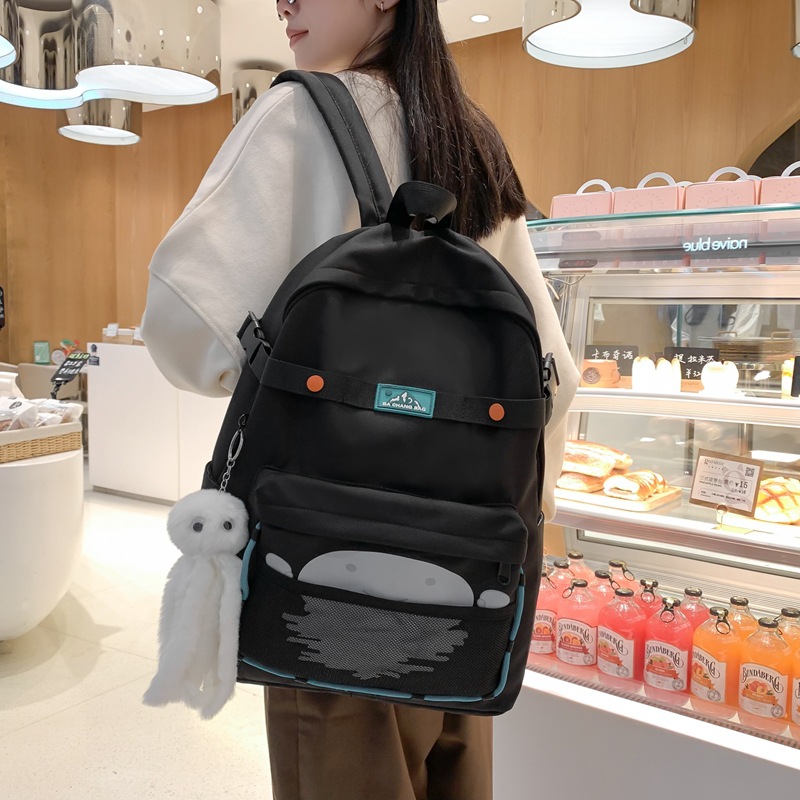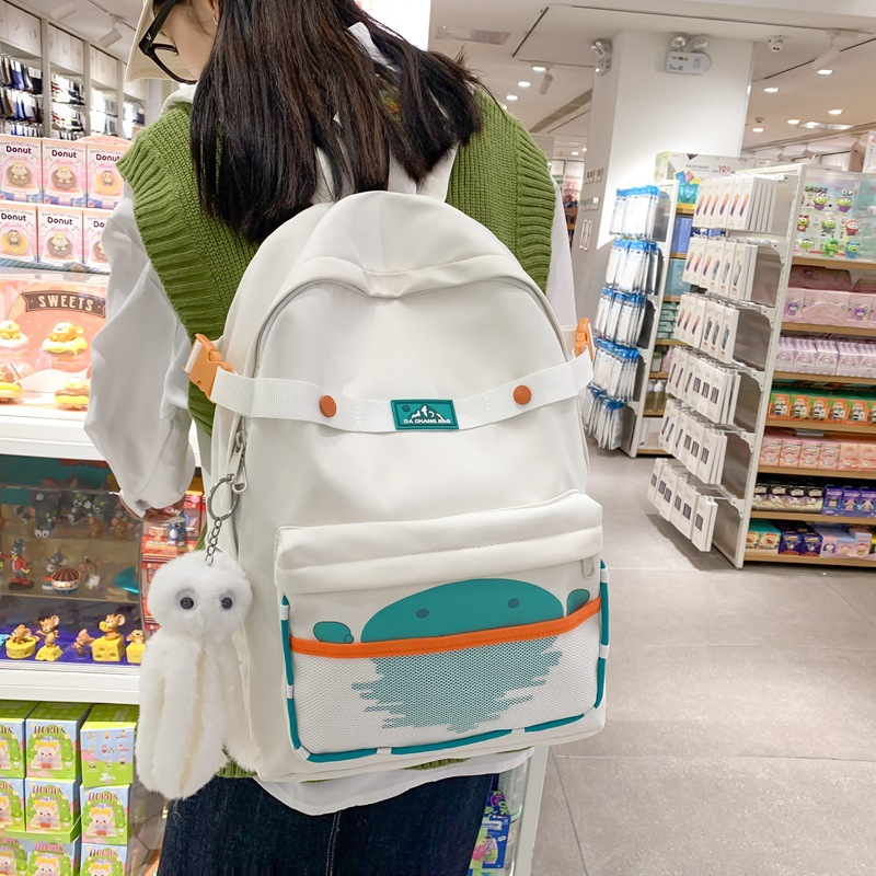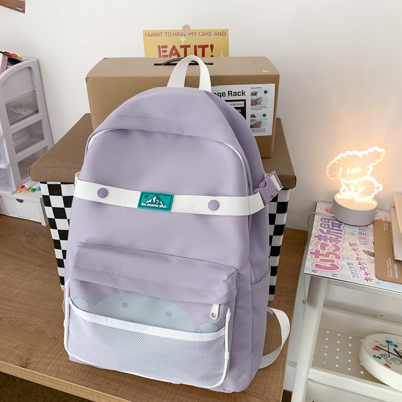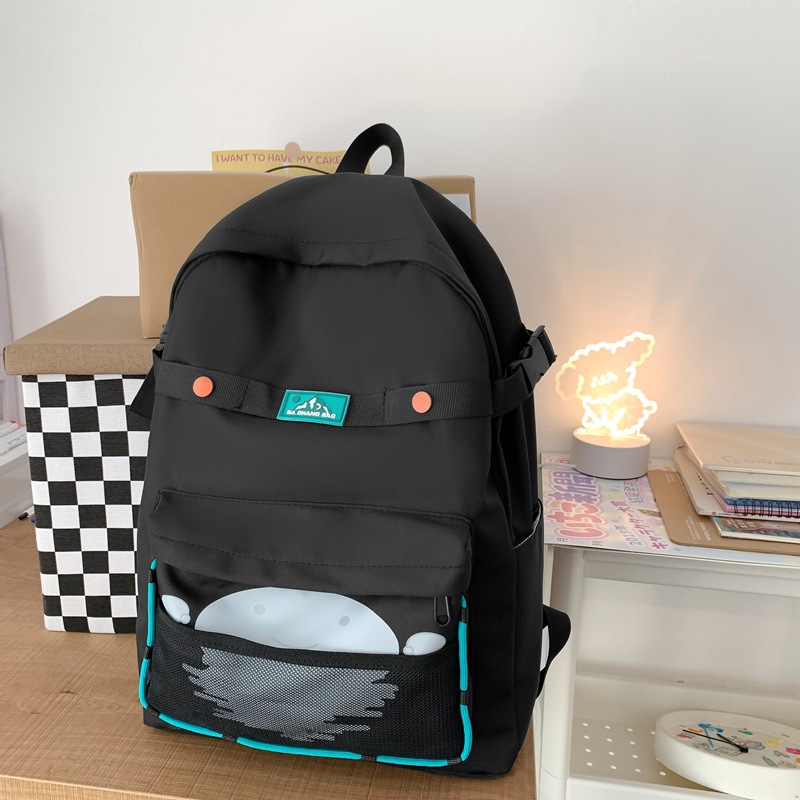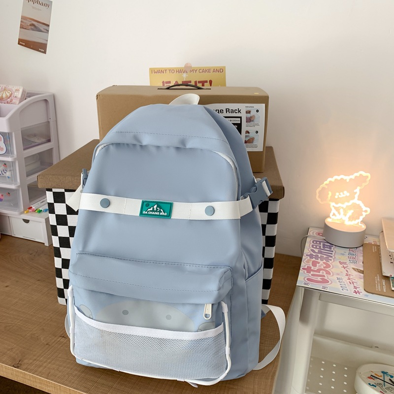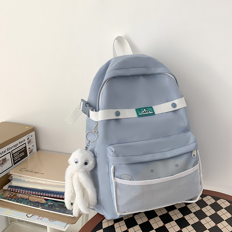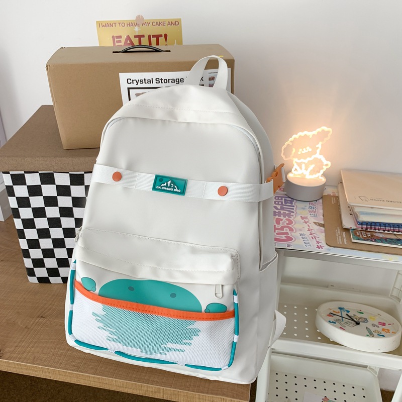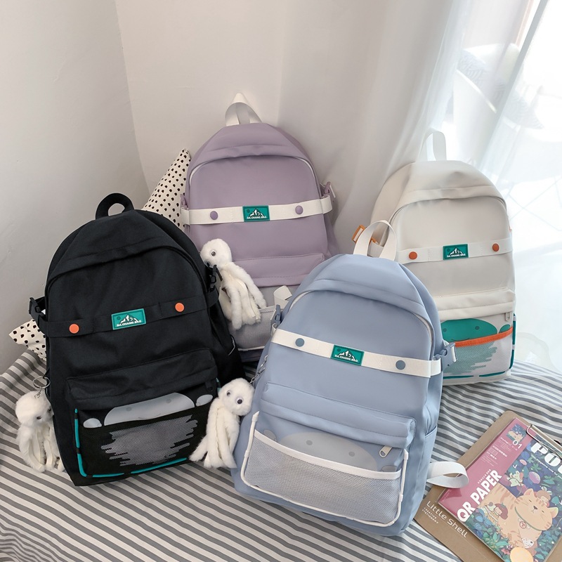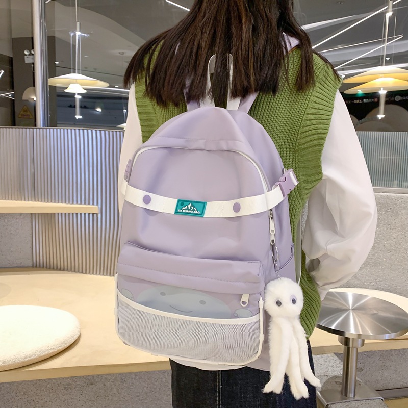 ins书包女日系小清新网兜印花学生双肩包休闲背包