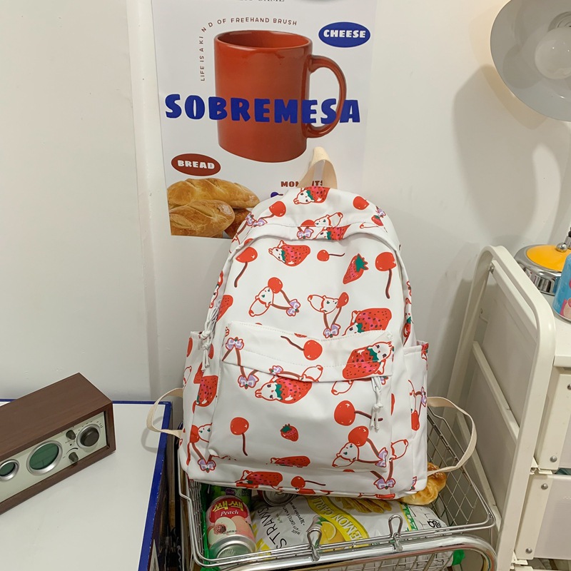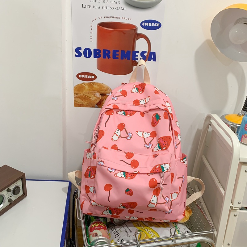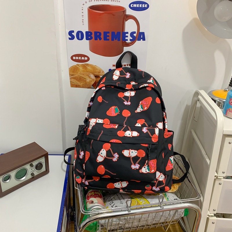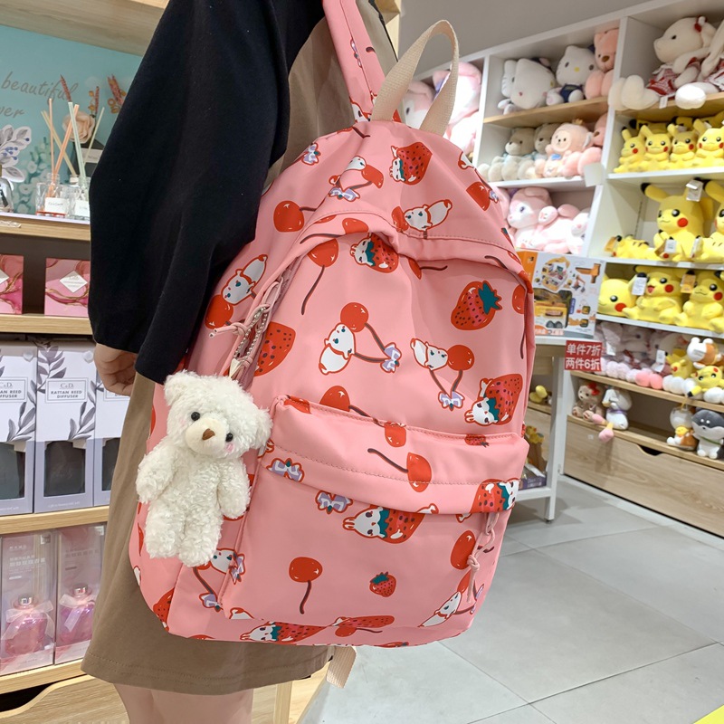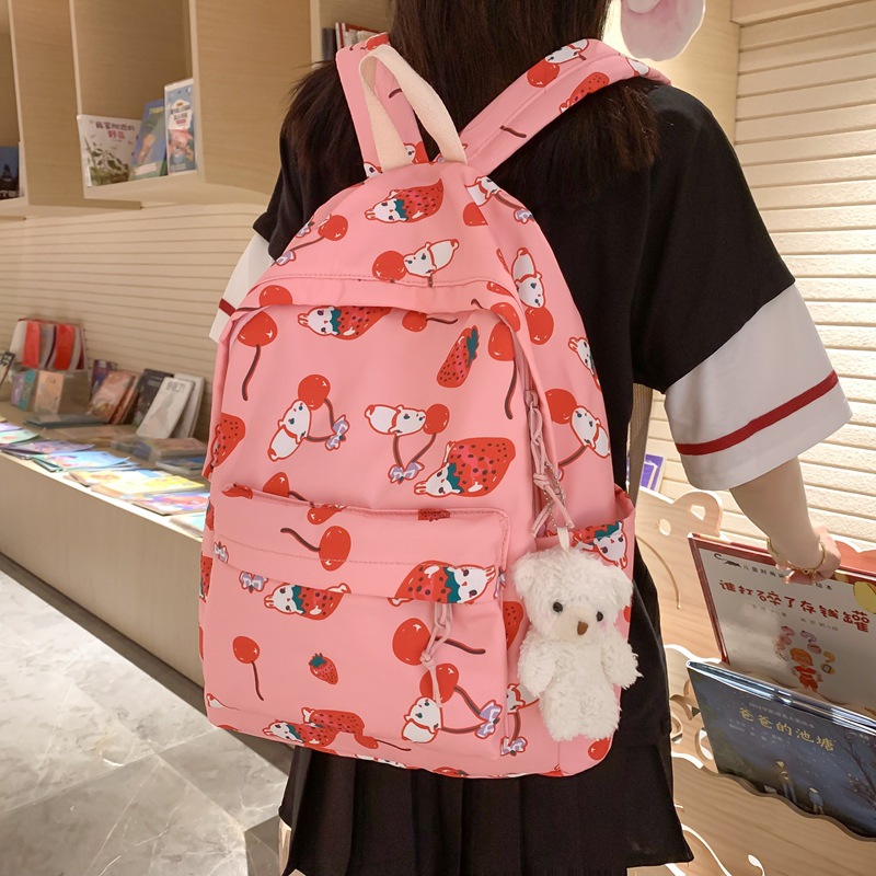 ins草莓熊卡通印花双肩包原宿ulzzang书包少女背包
