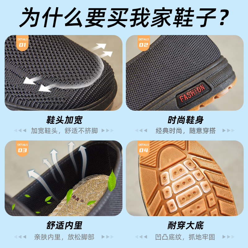 鞋子男春季新款老北京布鞋外贸批发舒适透气爸爸鞋休闲鞋飞织鞋