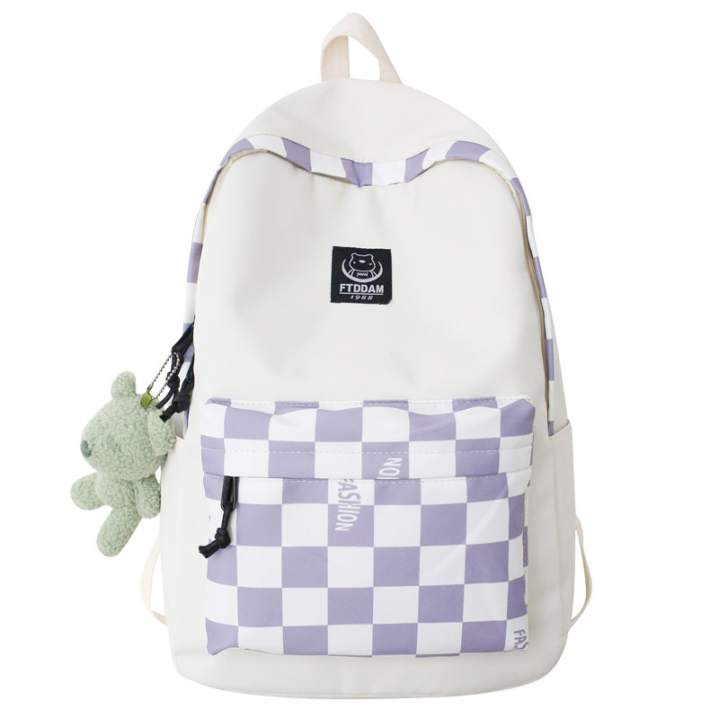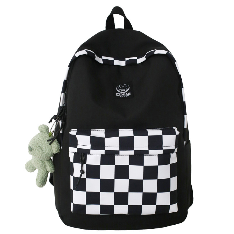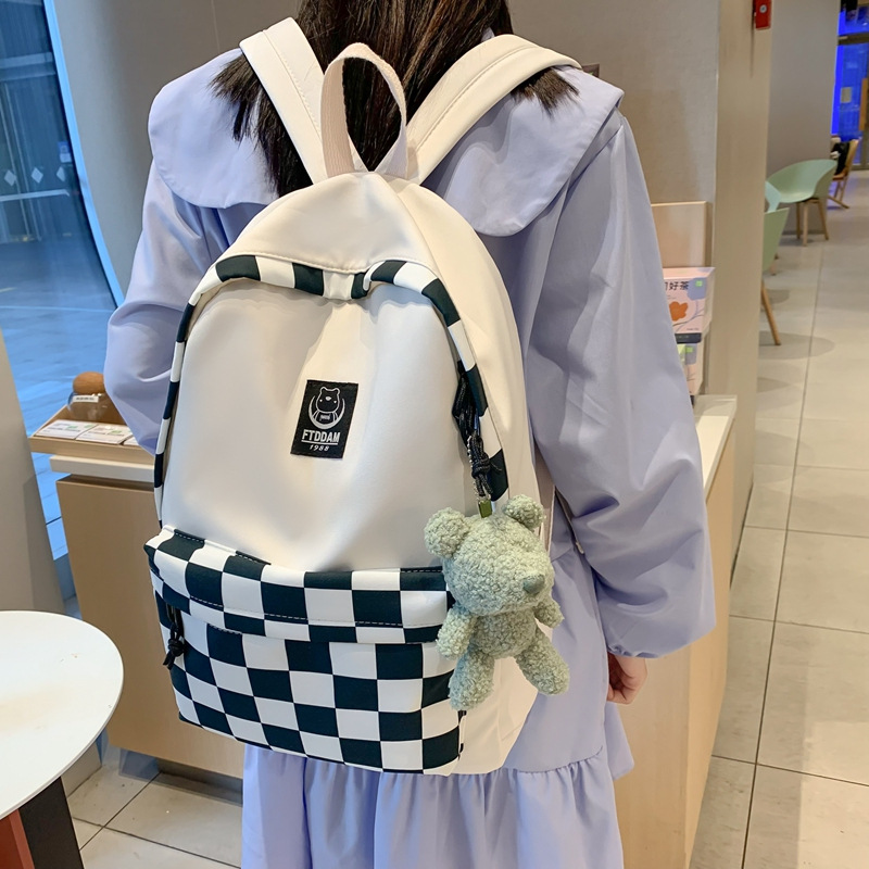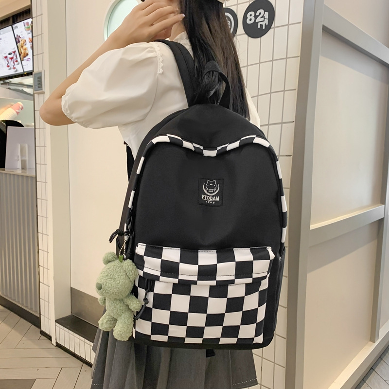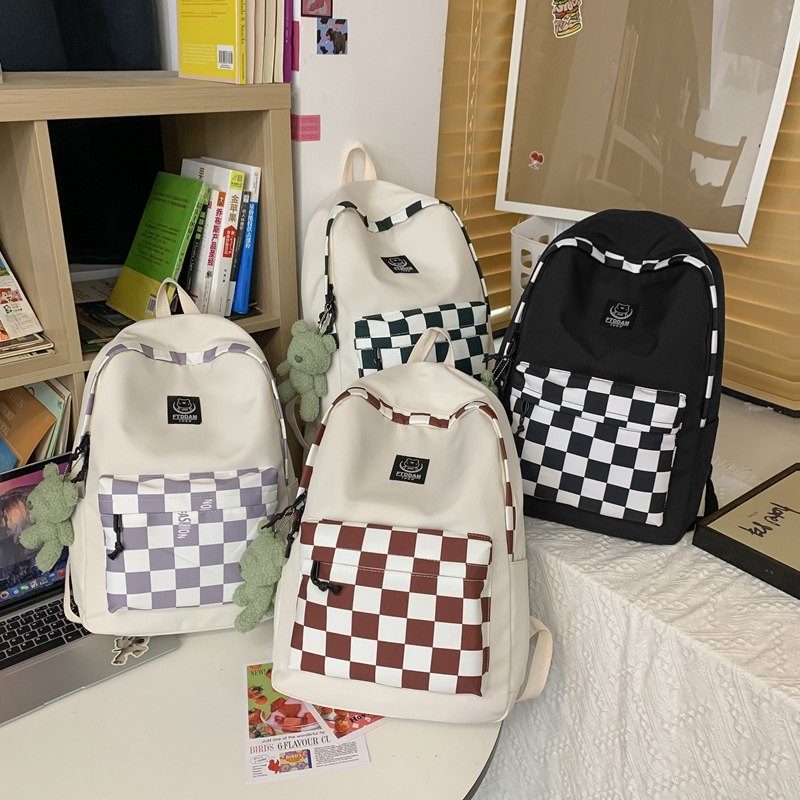 书包女ins文艺情侣棋盘格子双肩包森系初中生高中大学生背包