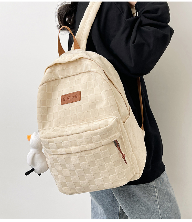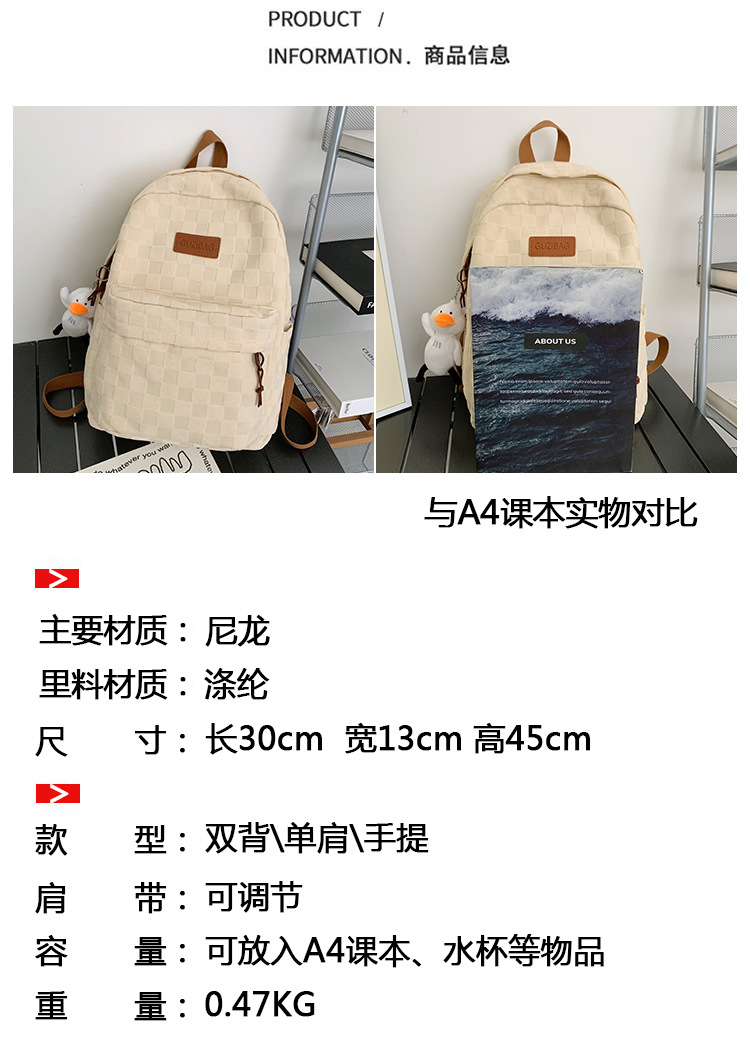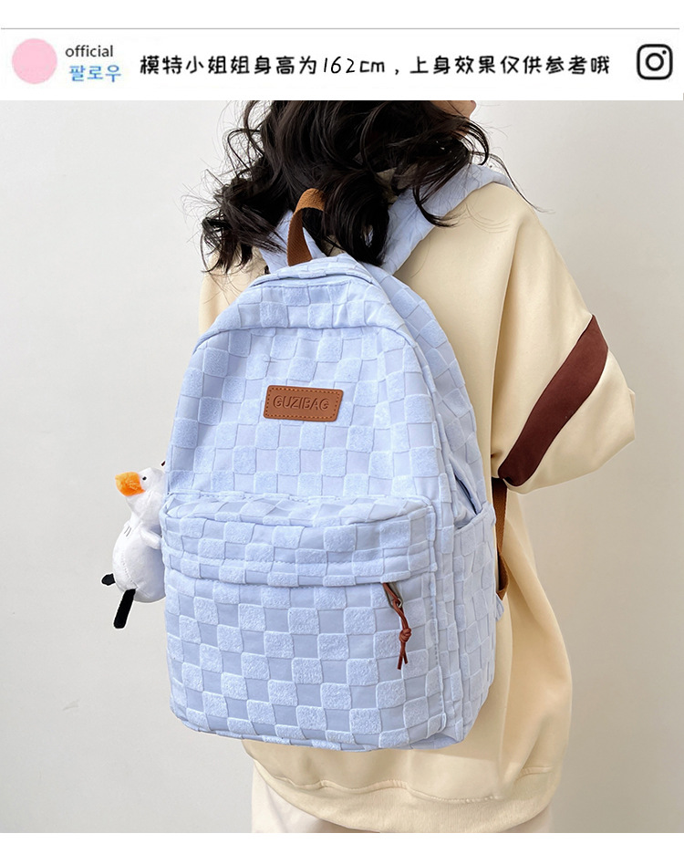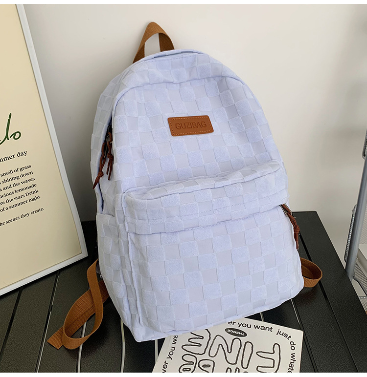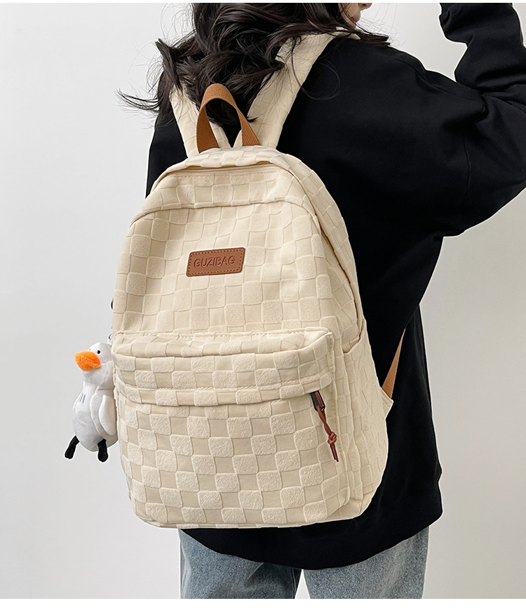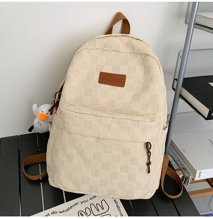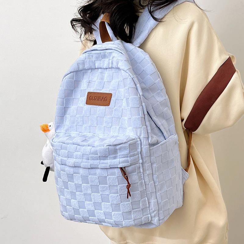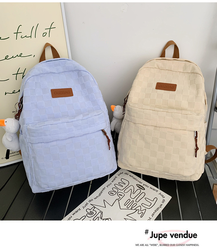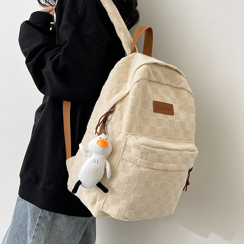 书包女ins新款休闲百搭潮流格子双肩包