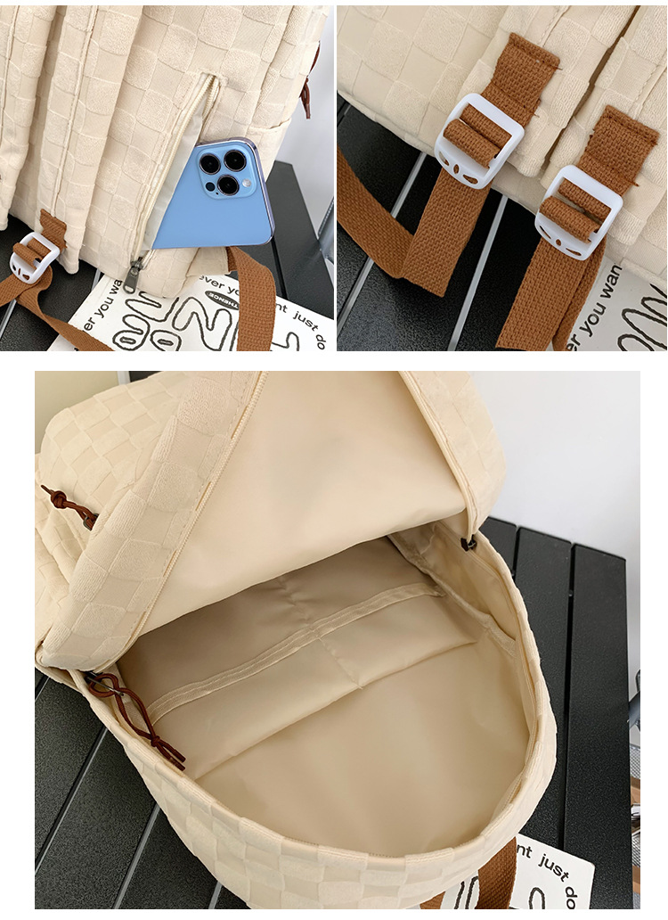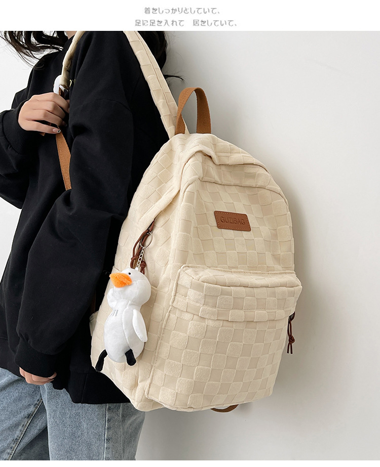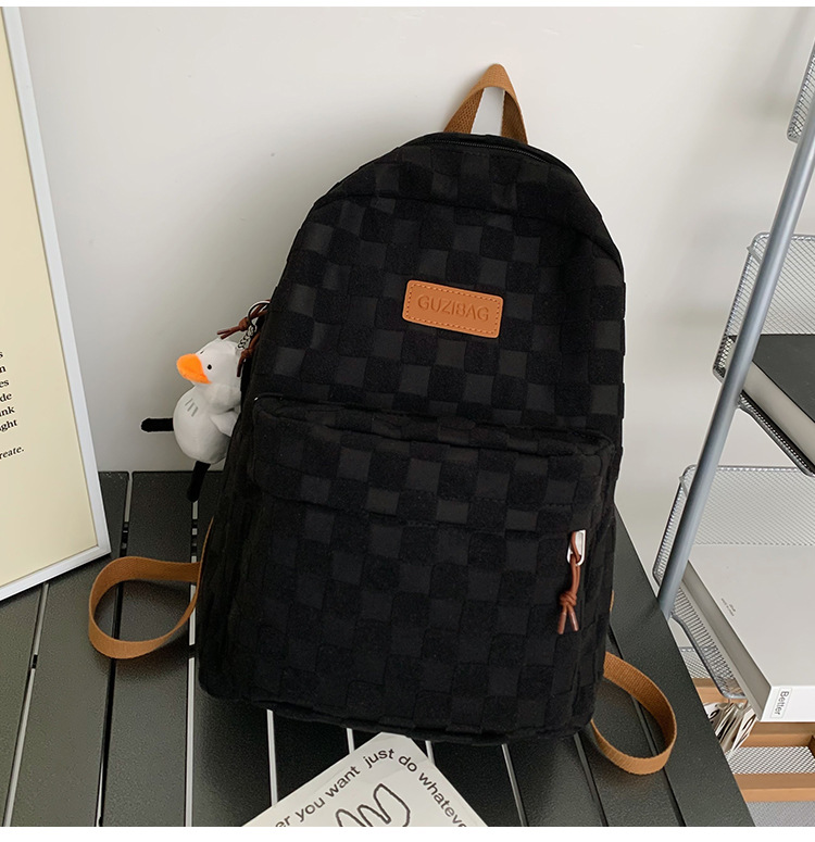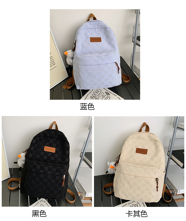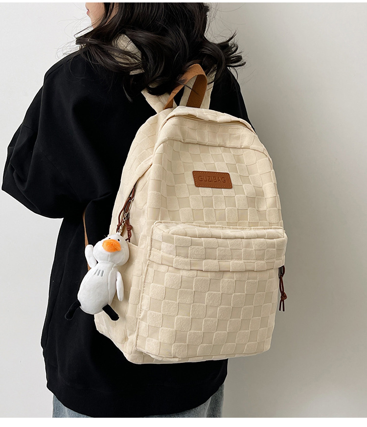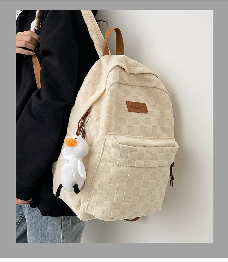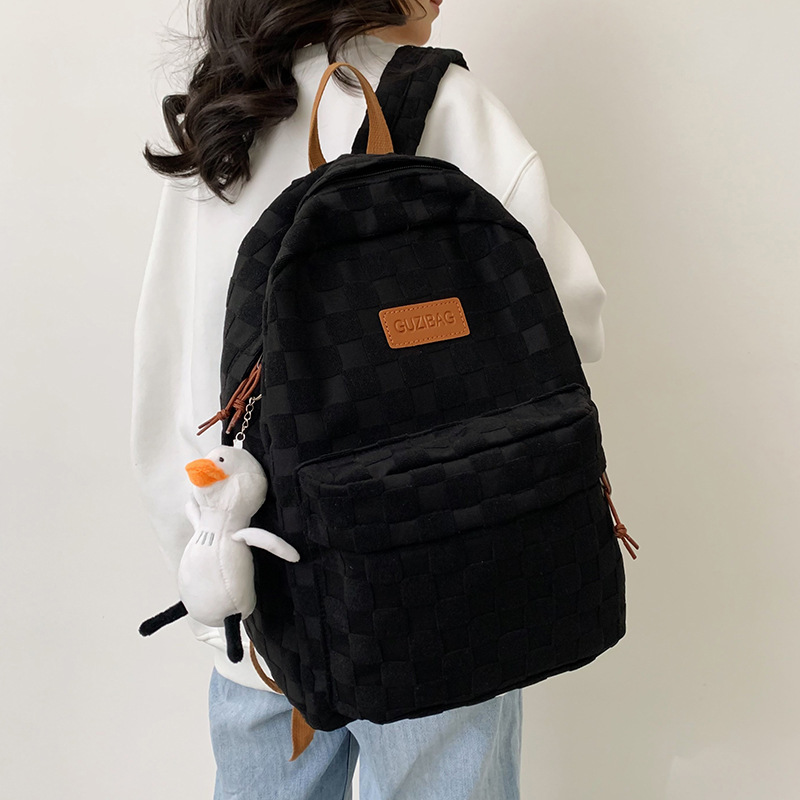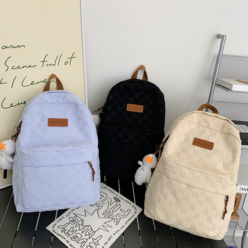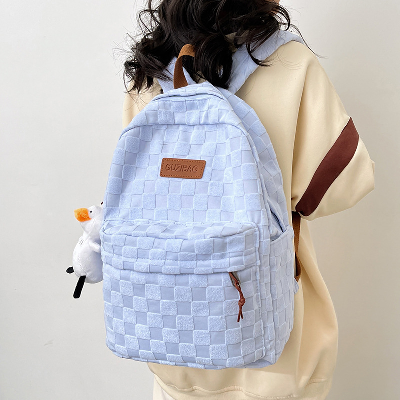 书包女ins新款休闲百搭潮流格子双肩包