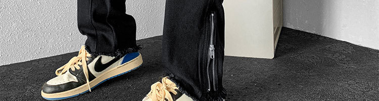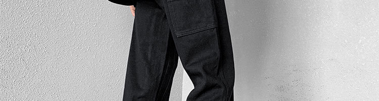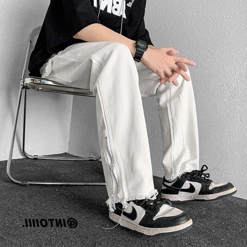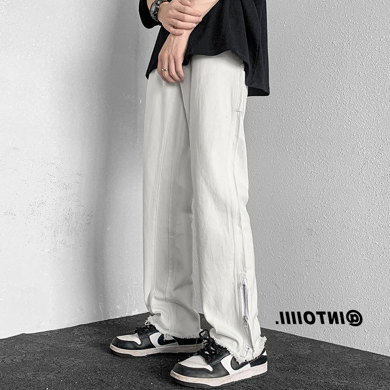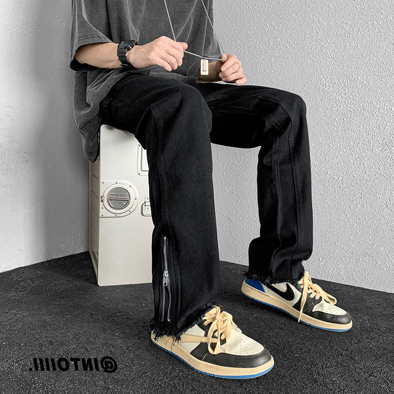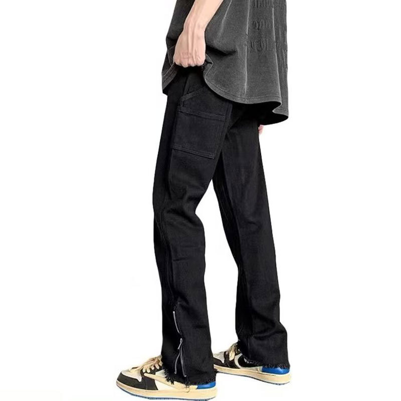 黑色牛仔裤男秋季美式复古高街ins潮牌修身直筒长裤工装拉链裤子