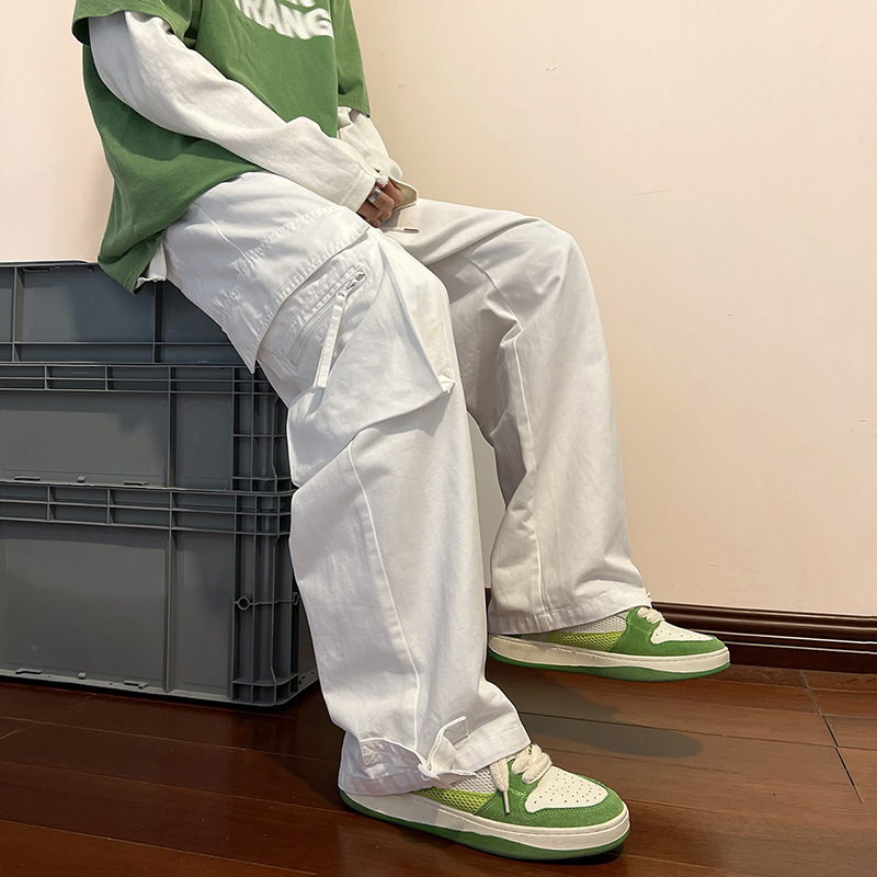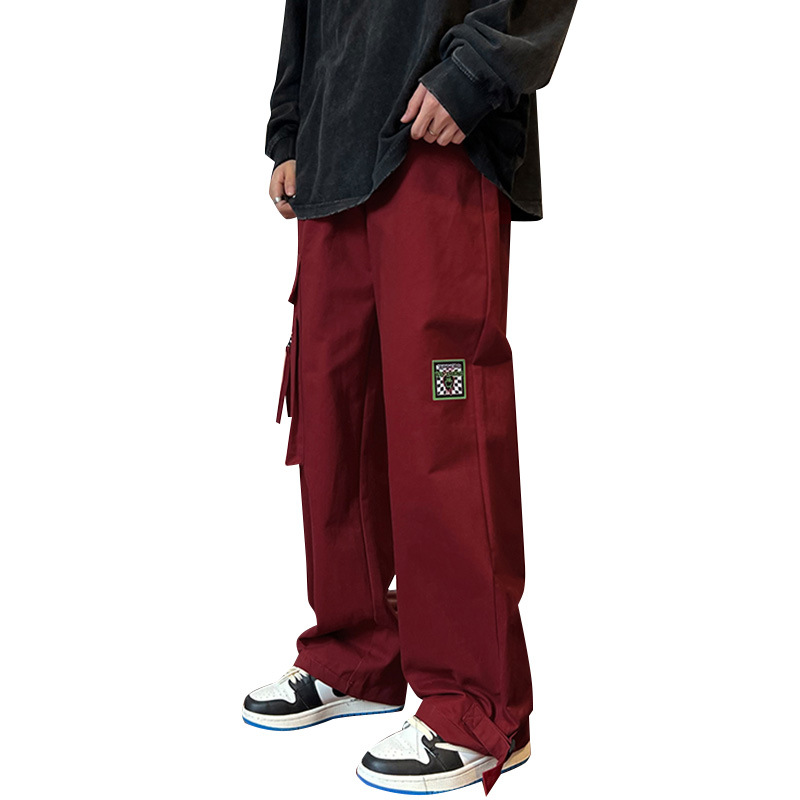 酒红色工装裤男秋季嘻哈美式潮牌休闲裤ins潮流宽松直筒阔腿裤子