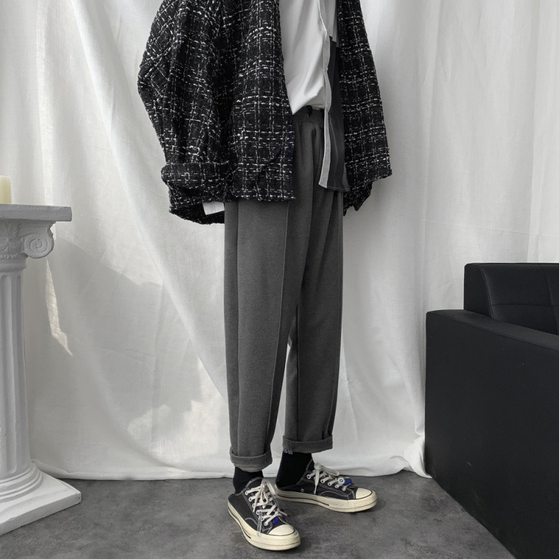 毛呢裤子男秋季韩版潮流修身直筒裤坠感宽松百搭休闲长裤小西装裤