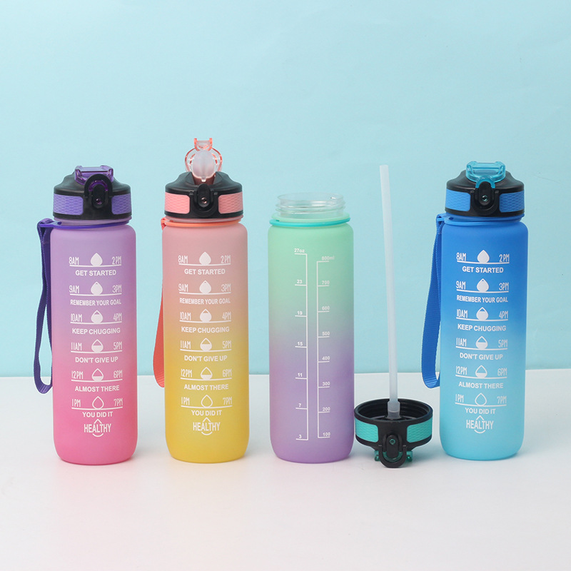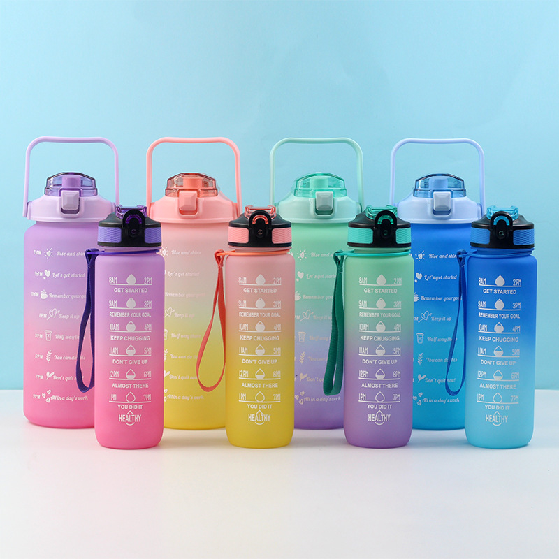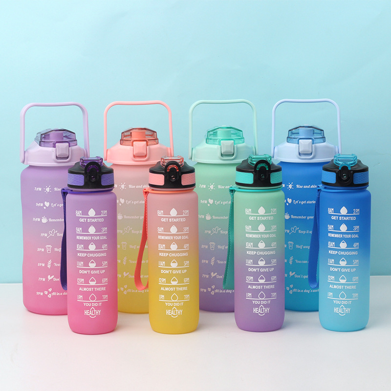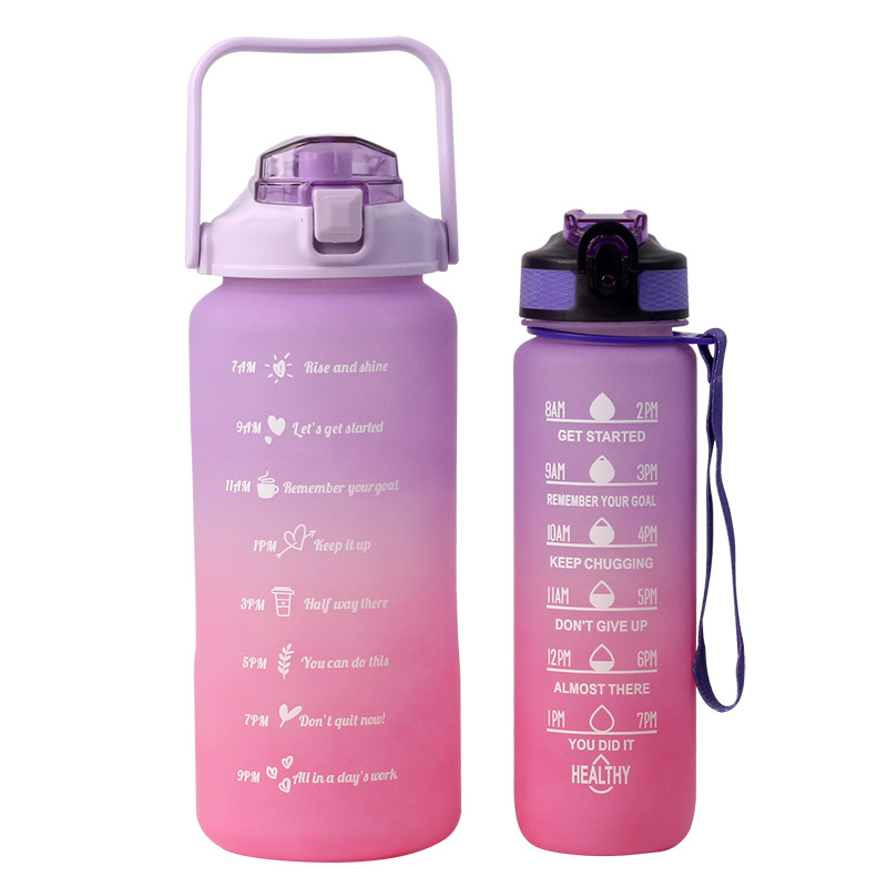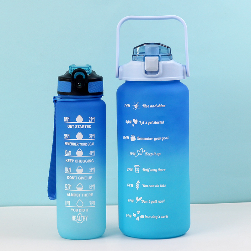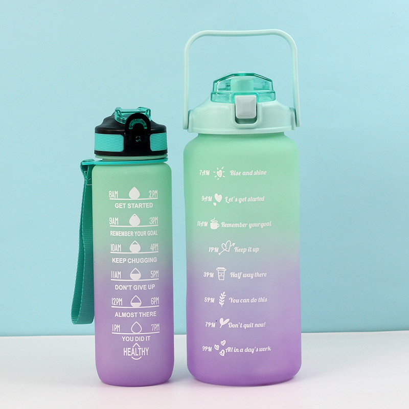 跨境专供大小套杯渐变杯套装大容量塑料太空杯磨砂渐变套杯