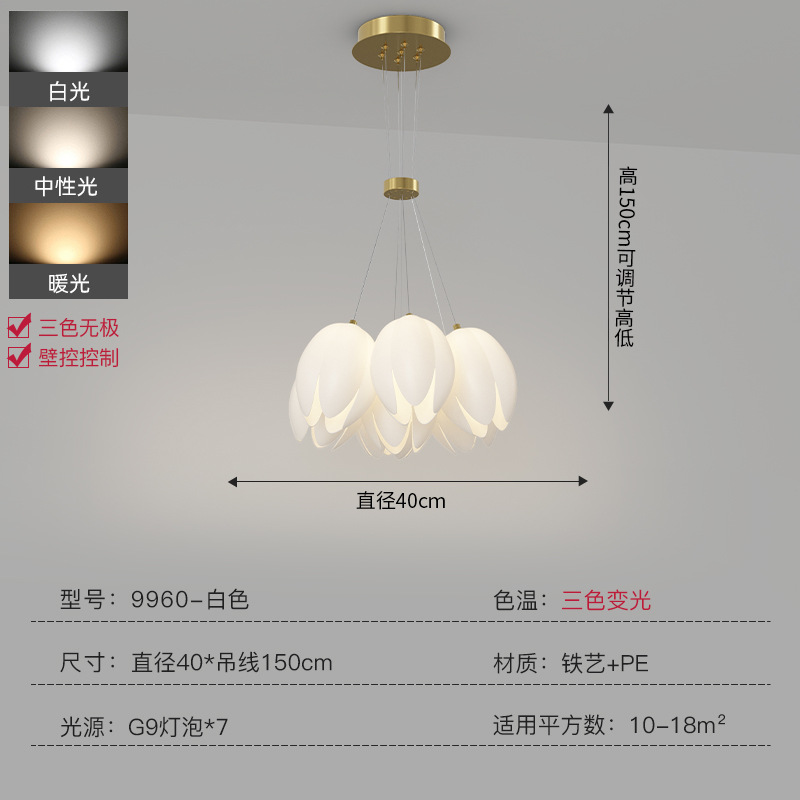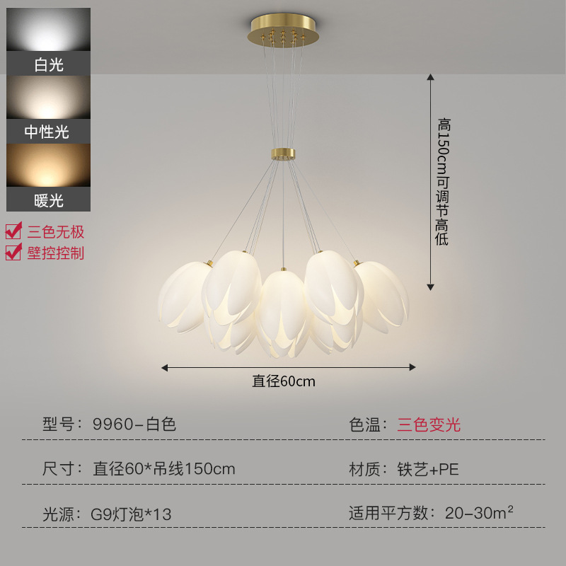 外贸专供铃兰吊灯法式奶油风客厅灯简约轻奢灯奶油风郁金香灯