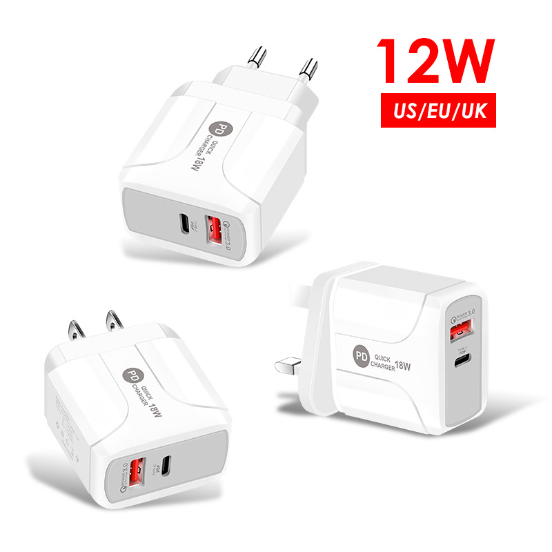 新款PD12W充电器 5V2A欧美英规充电头type-c适配器 PD+USB 充电头