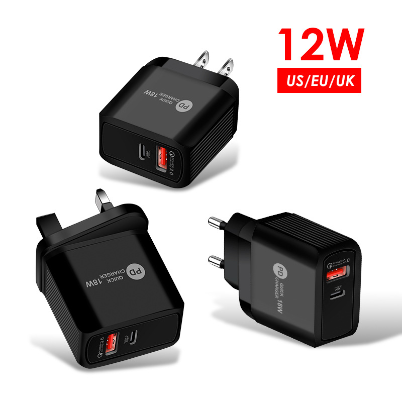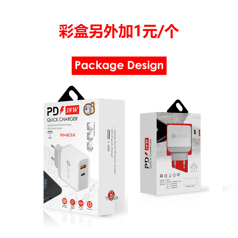 新款PD12W充电器 5V2A欧美英规充电头type-c适配器 PD+USB 充电头