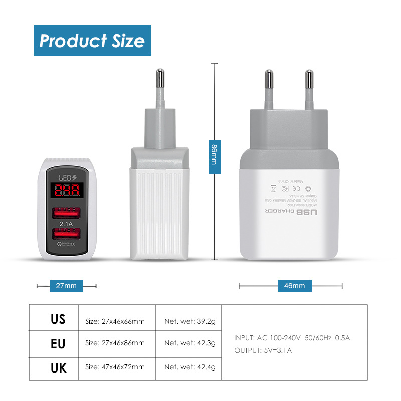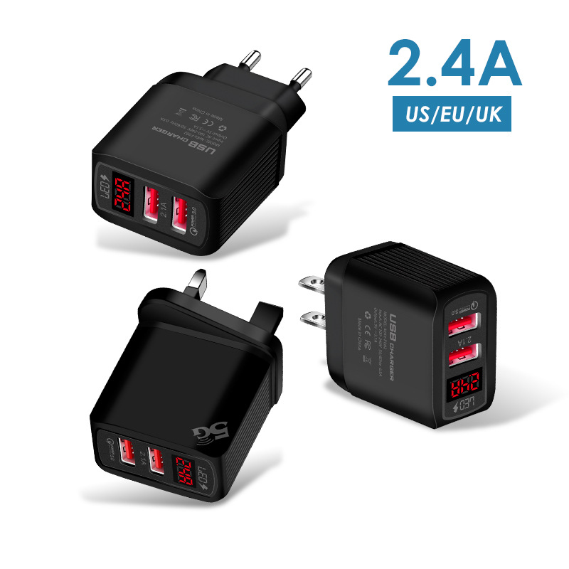 5V2.4A多口USB充电器智能数显电流电压手机充电头适用于苹果安卓
