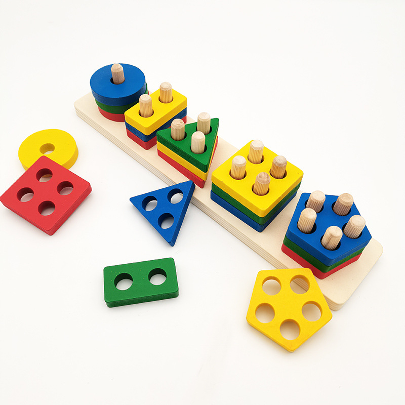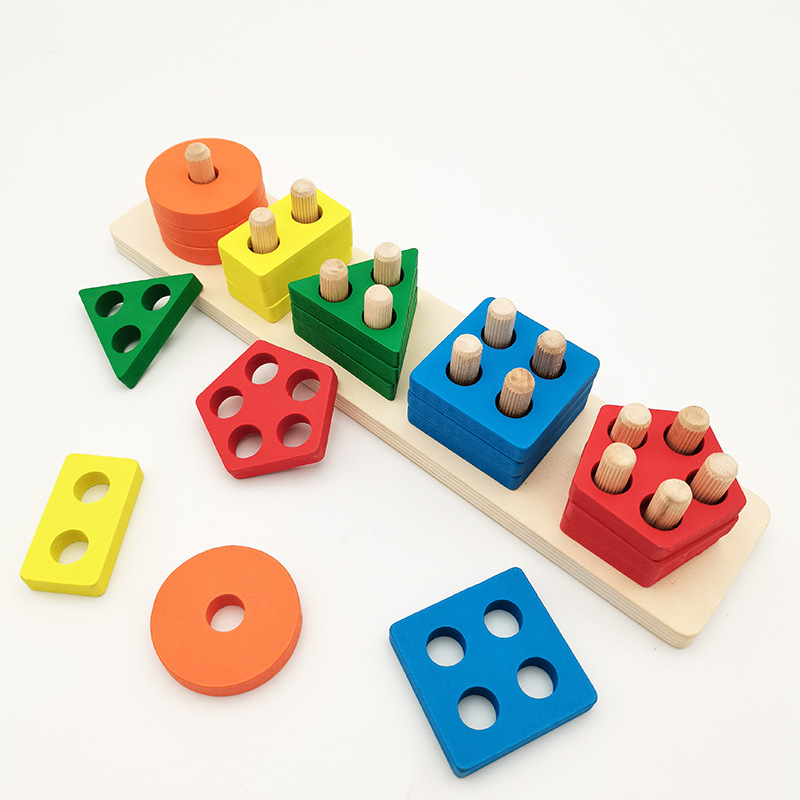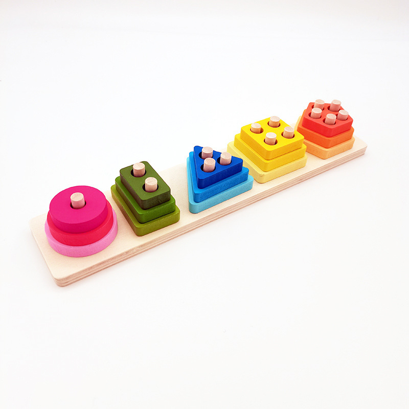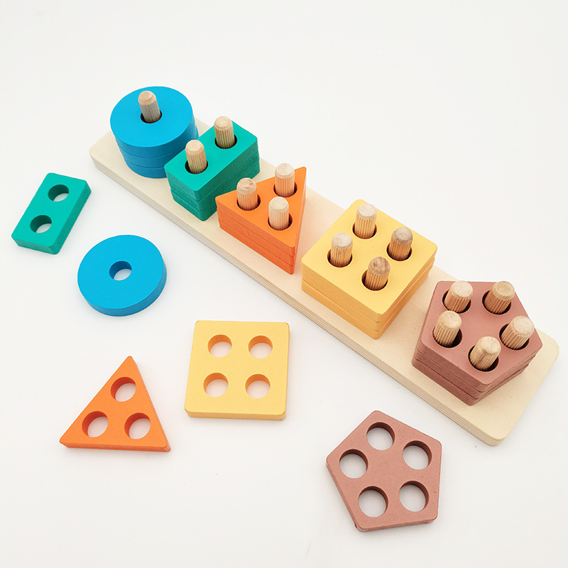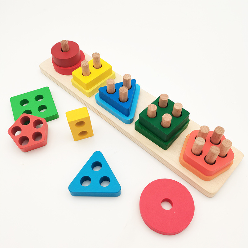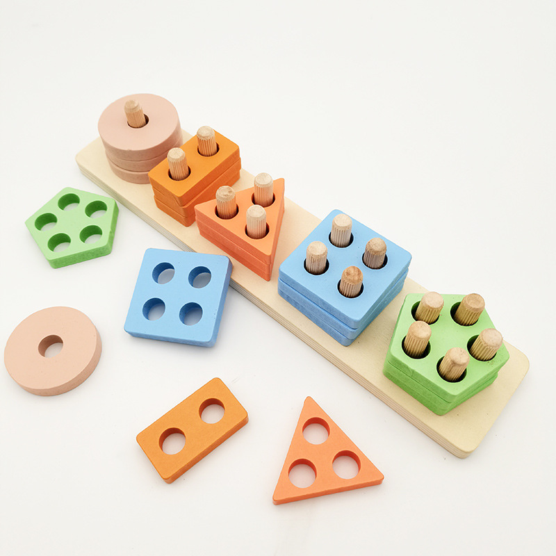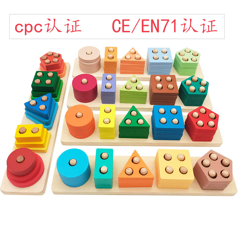 木质几何形状套柱幼儿童专注力早教积木分类颜色配对认知益智玩具