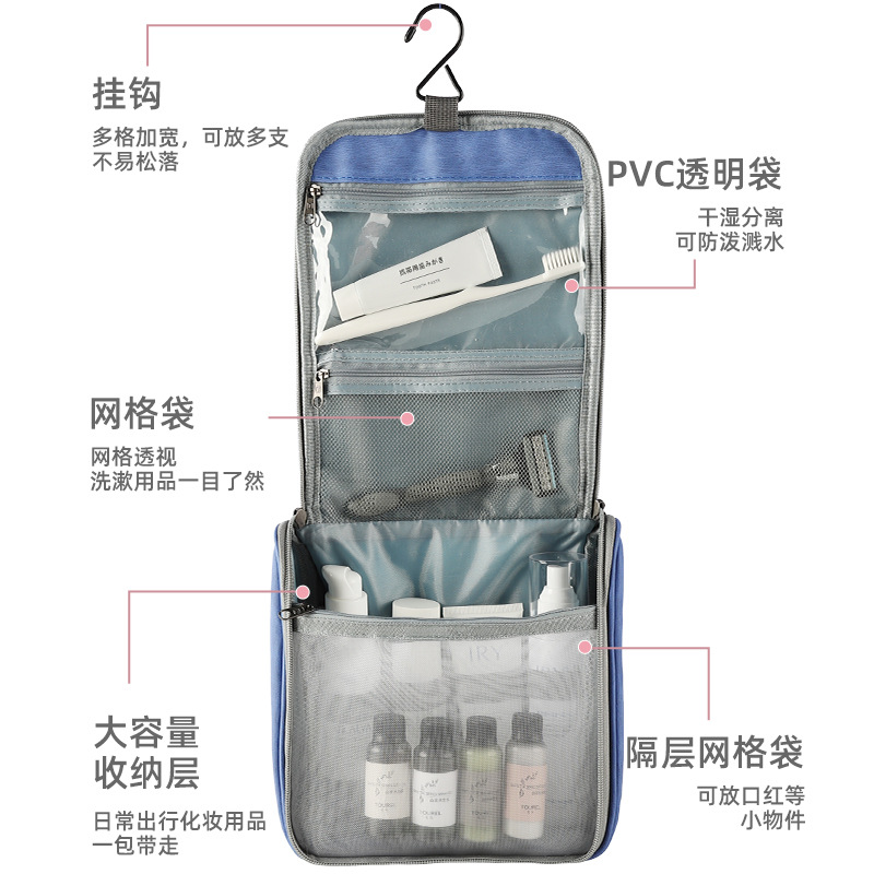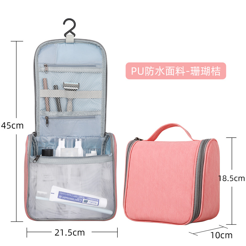 旅行翻盖挂钩pu化妆洗漱包logo ins风便携手提化妆品收纳包