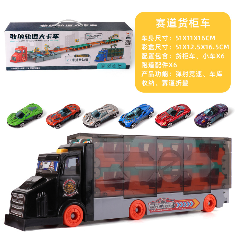 变形弹射轨道车 折叠收纳大卡车停车场 儿童恐龙轨道赛车玩具跨境