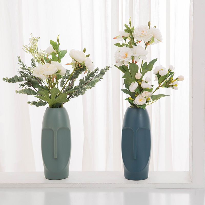 创意北欧塑料仿釉花瓶客厅插花摆件现代简约抽象电视柜干花装饰品