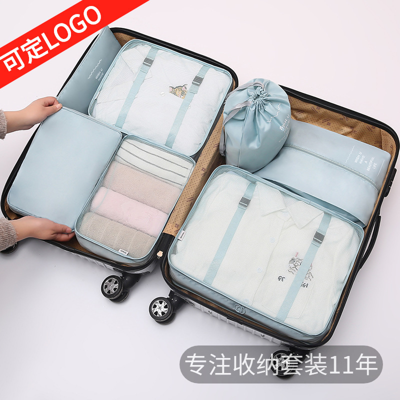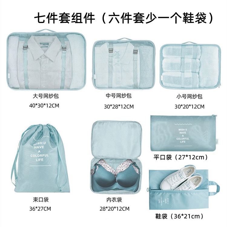 斜纹旅行七件套收纳袋旅行出差行李箱衣物分类整理袋套装厂家批发