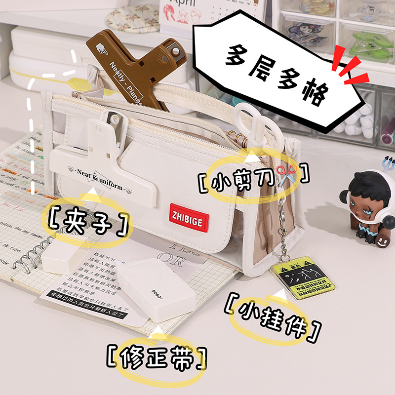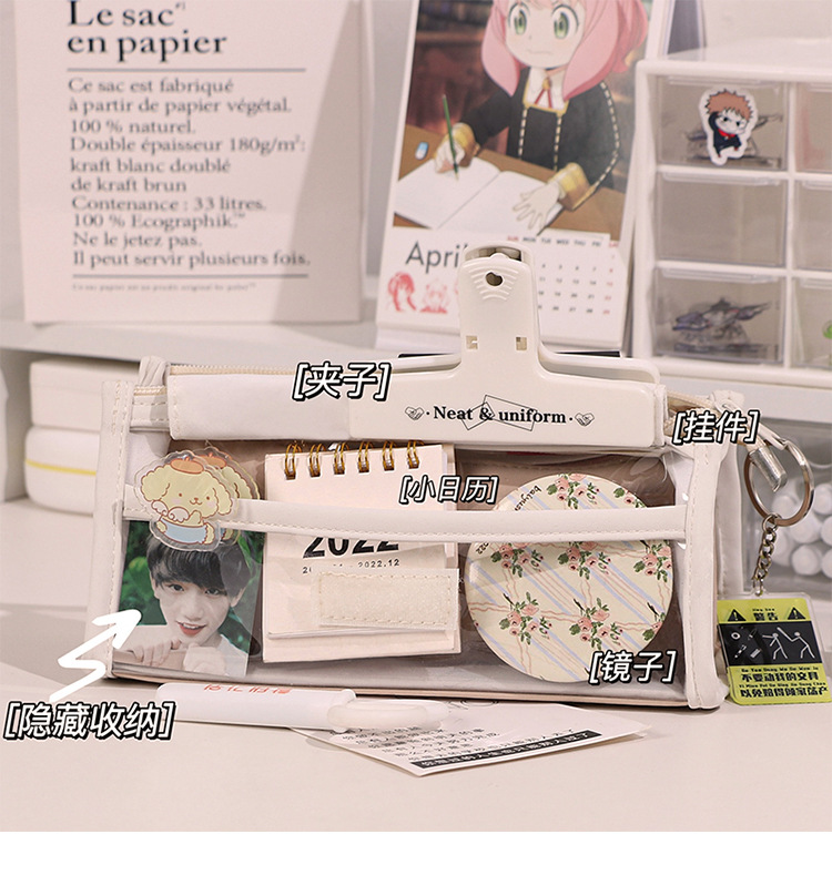 大容量笔袋透明文具袋收纳2022新款流行中学生文具男女孩盒铅笔盒