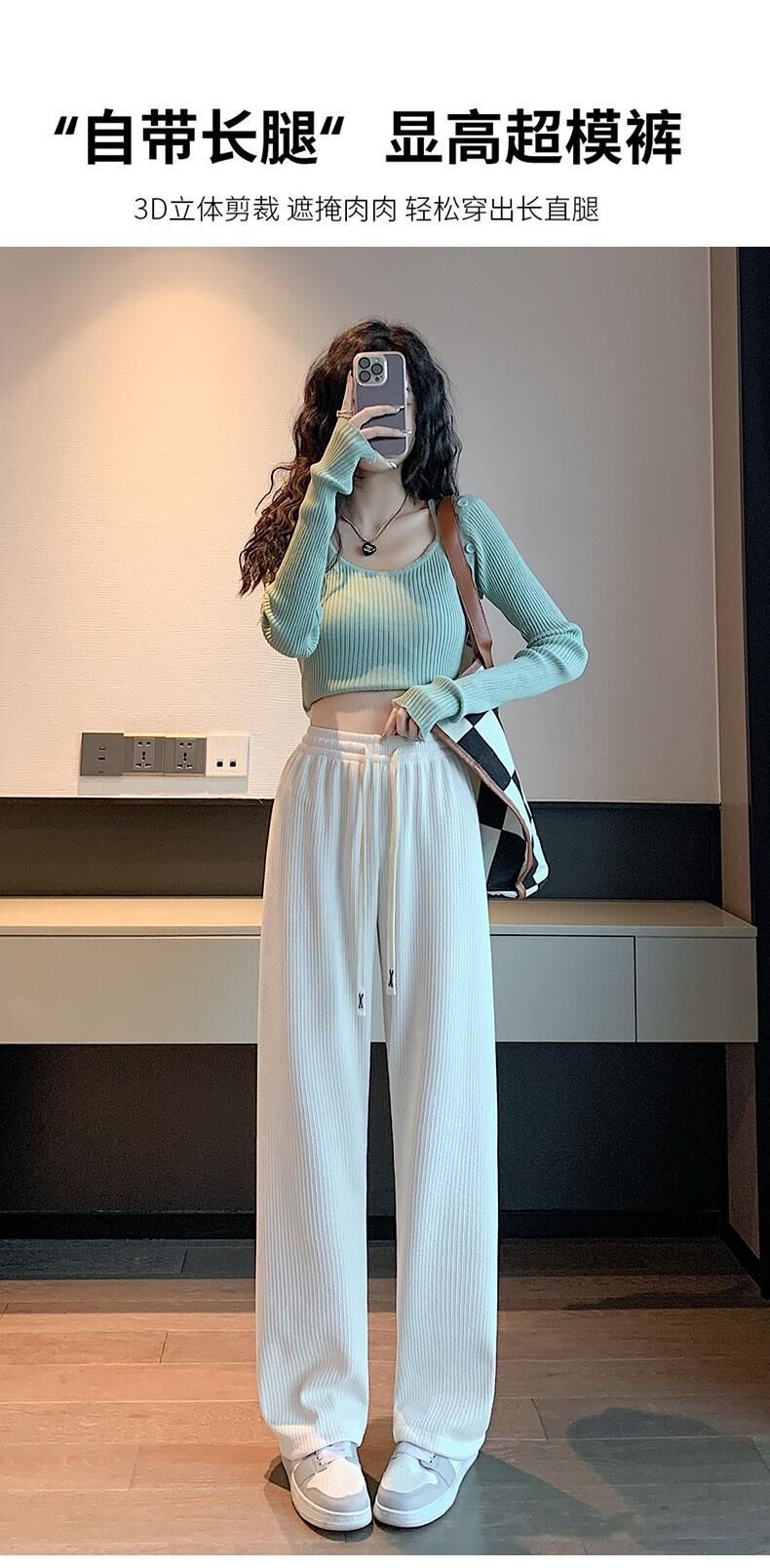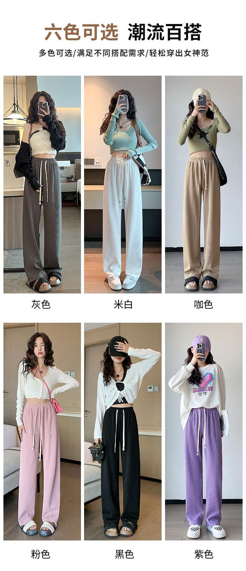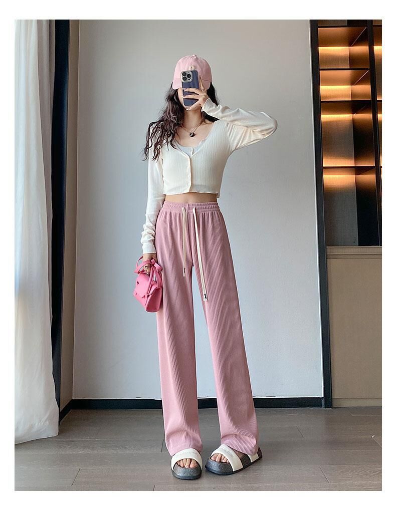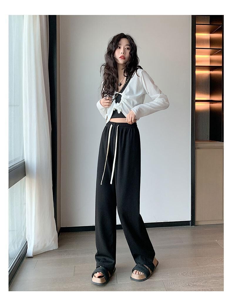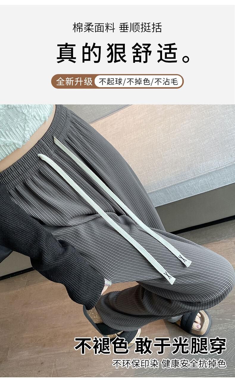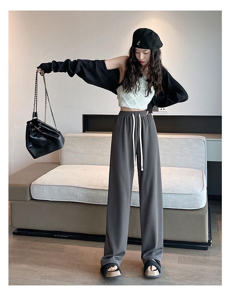 灰色针织阔腿裤女春夏秋2023新款小个子休闲高腰垂感直筒拖地加长