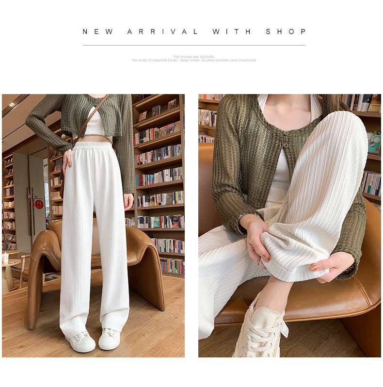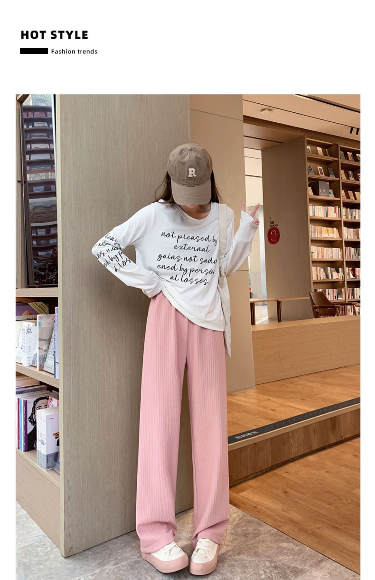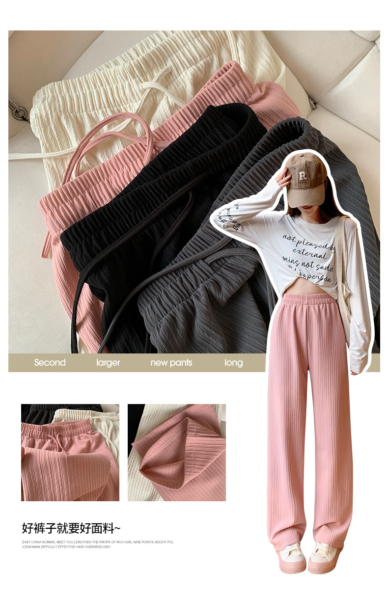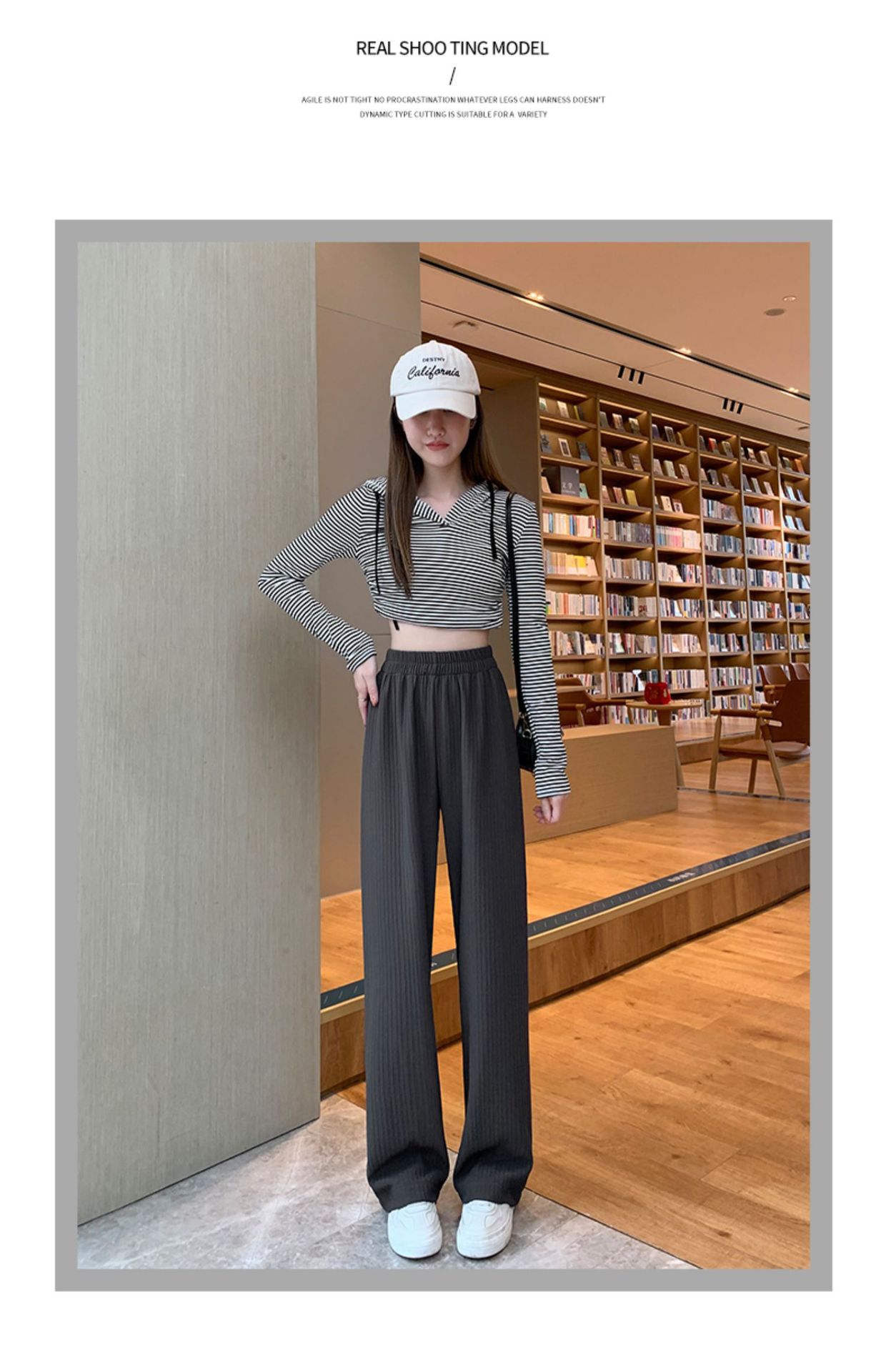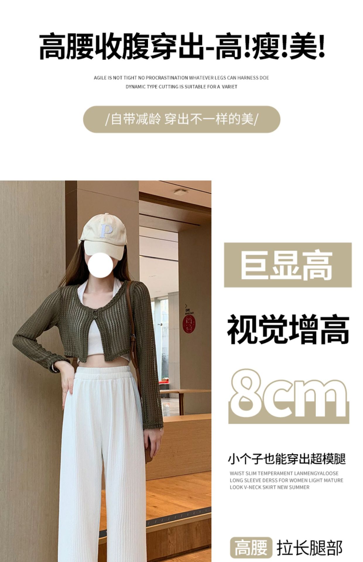 窄版阔腿裤女春夏秋针织拖地直筒裤2023新款高腰垂感休闲裤小个子
