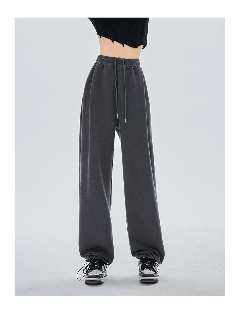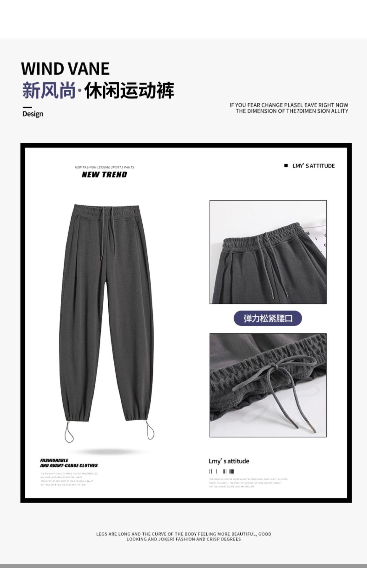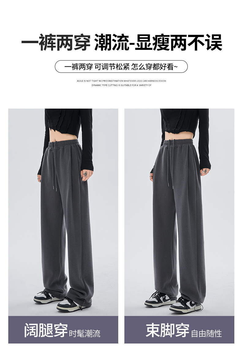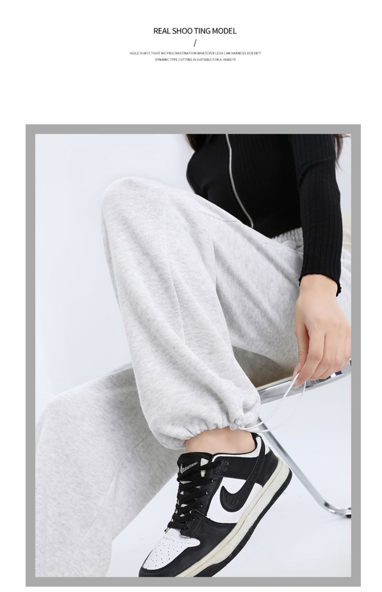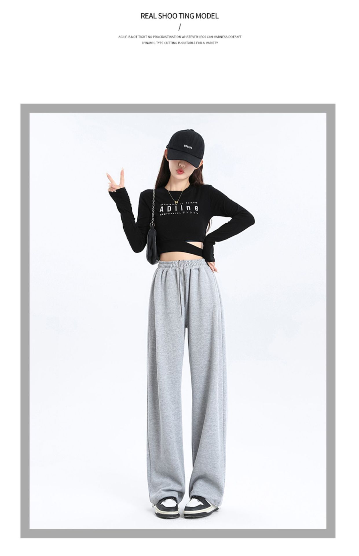 灰色运动裤女春秋季2023新款宽松显瘦阔腿裤美式束脚休闲卫裤裤子