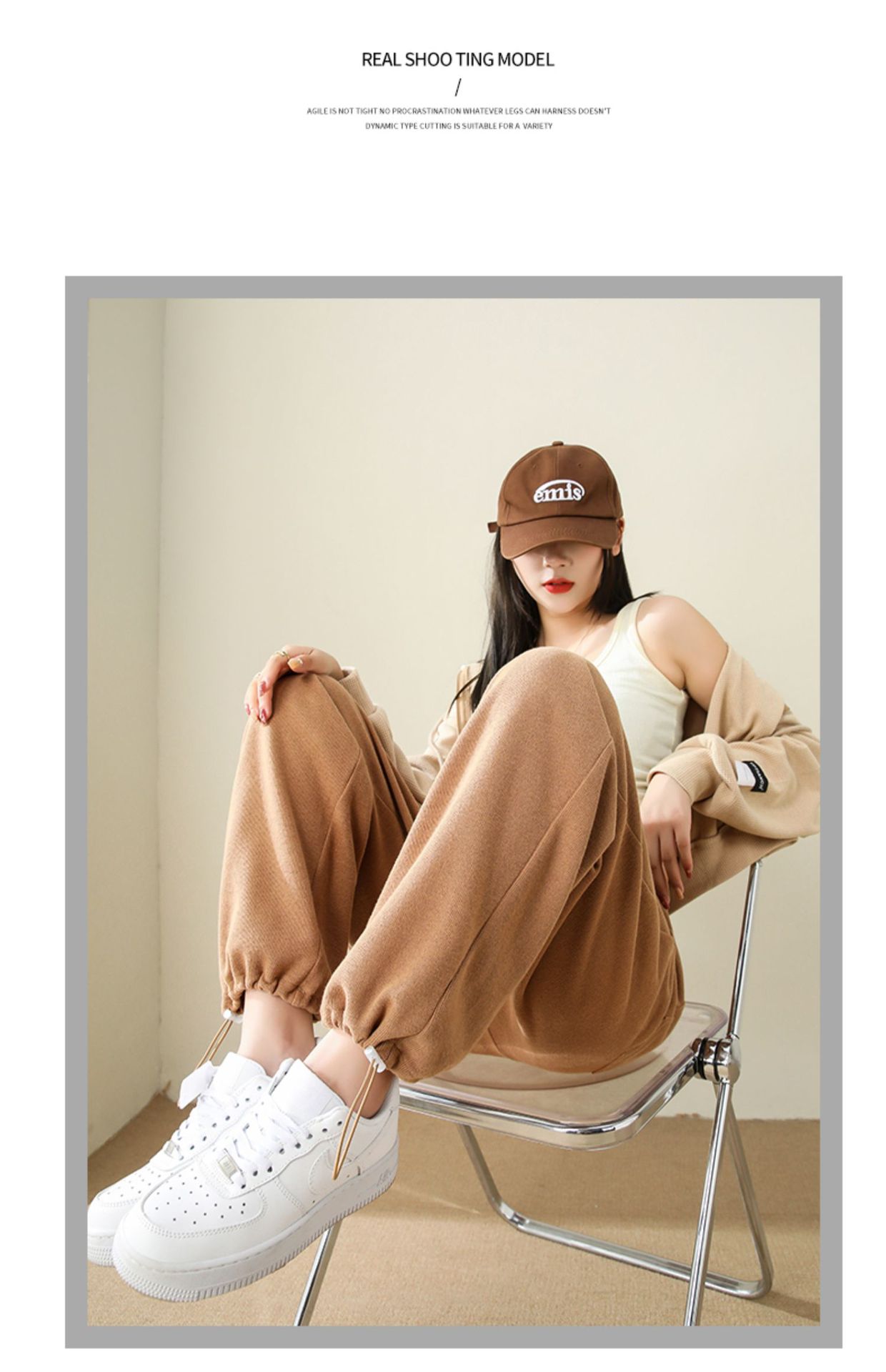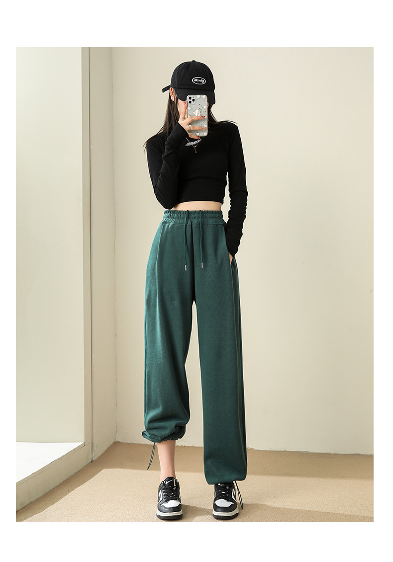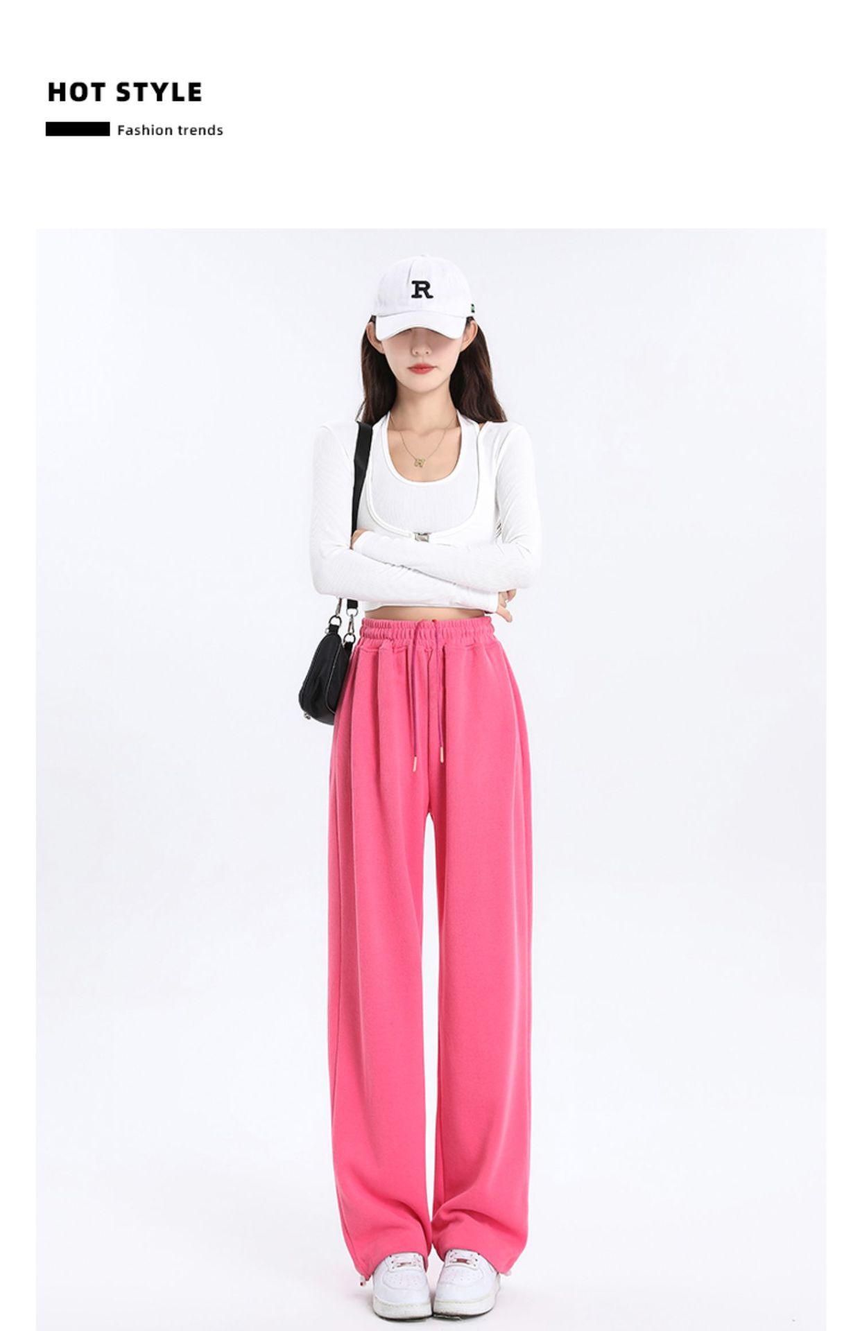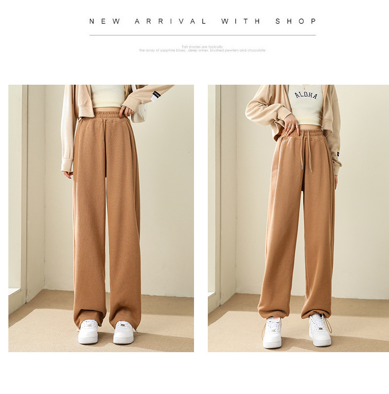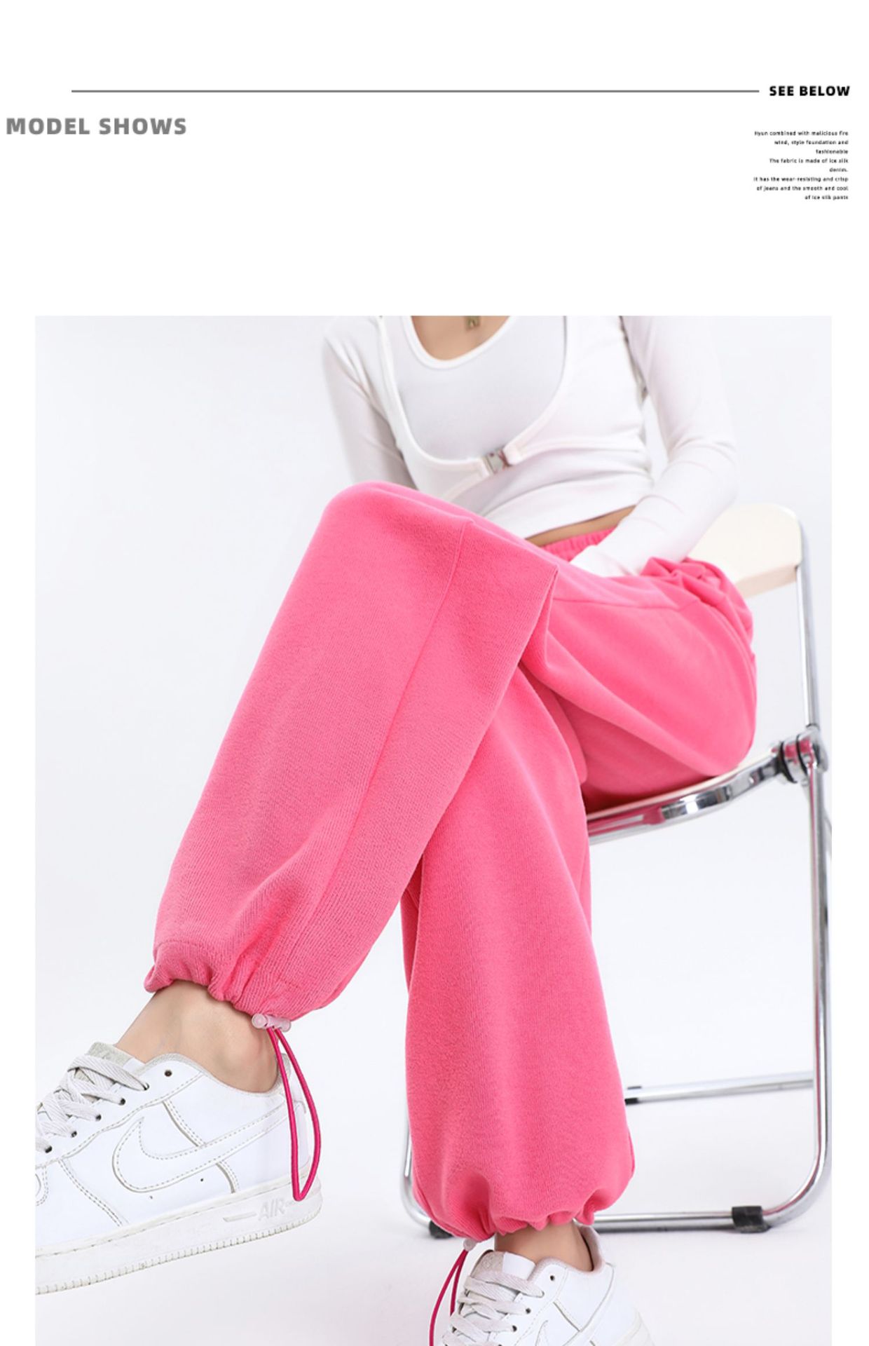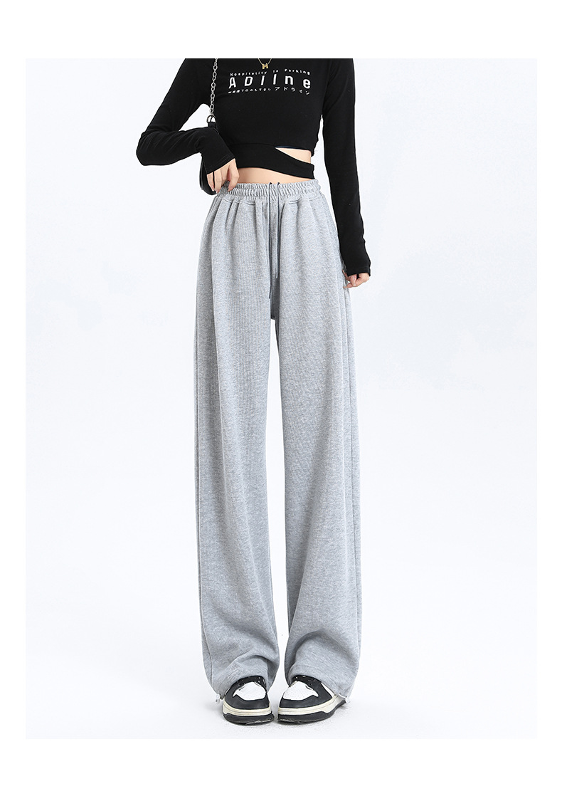 灰色运动裤女春秋季2023新款宽松显瘦阔腿裤美式束脚休闲卫裤裤子