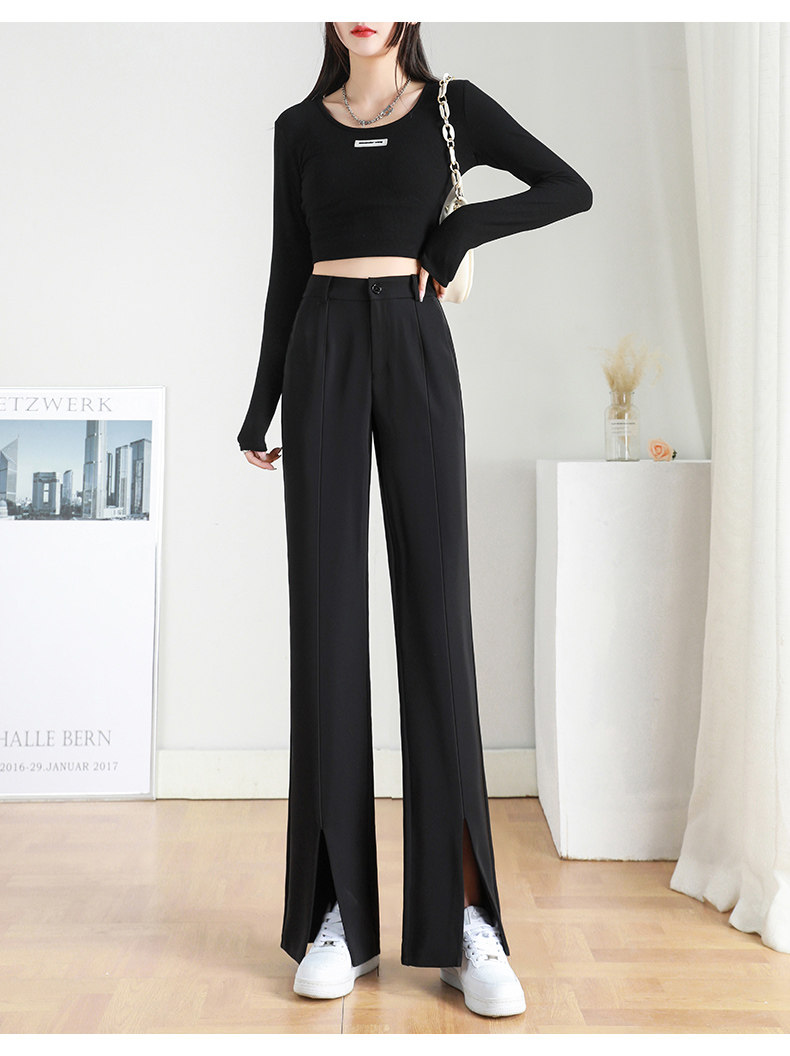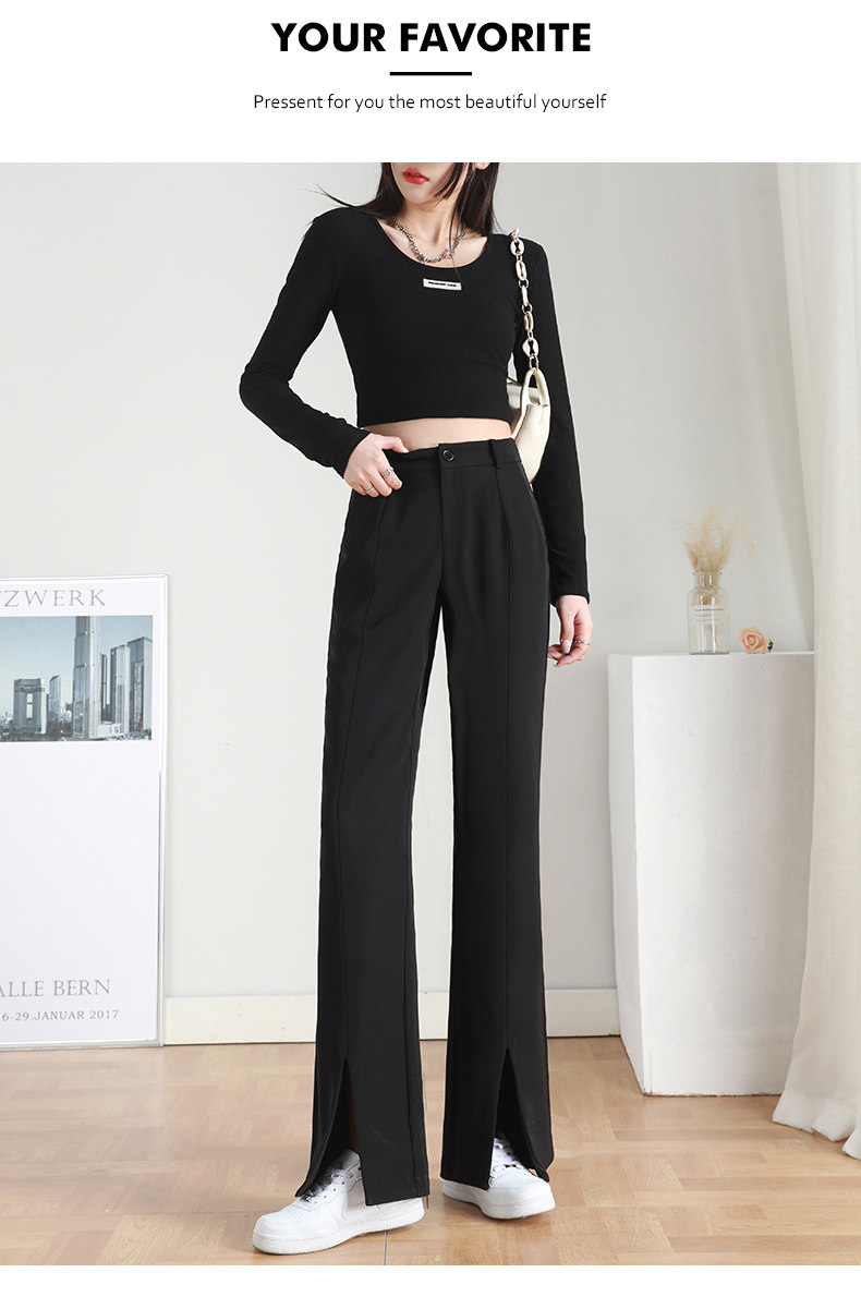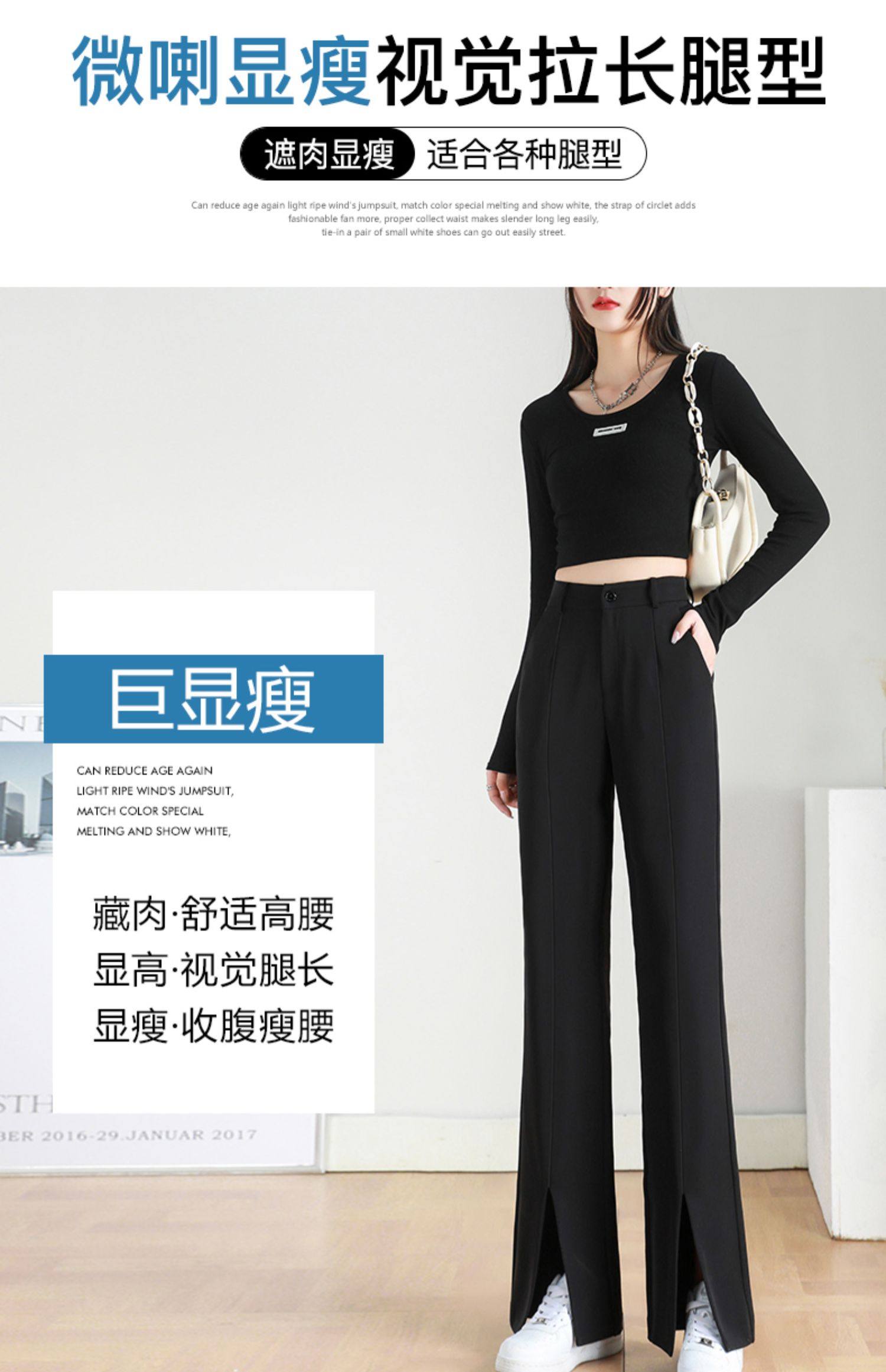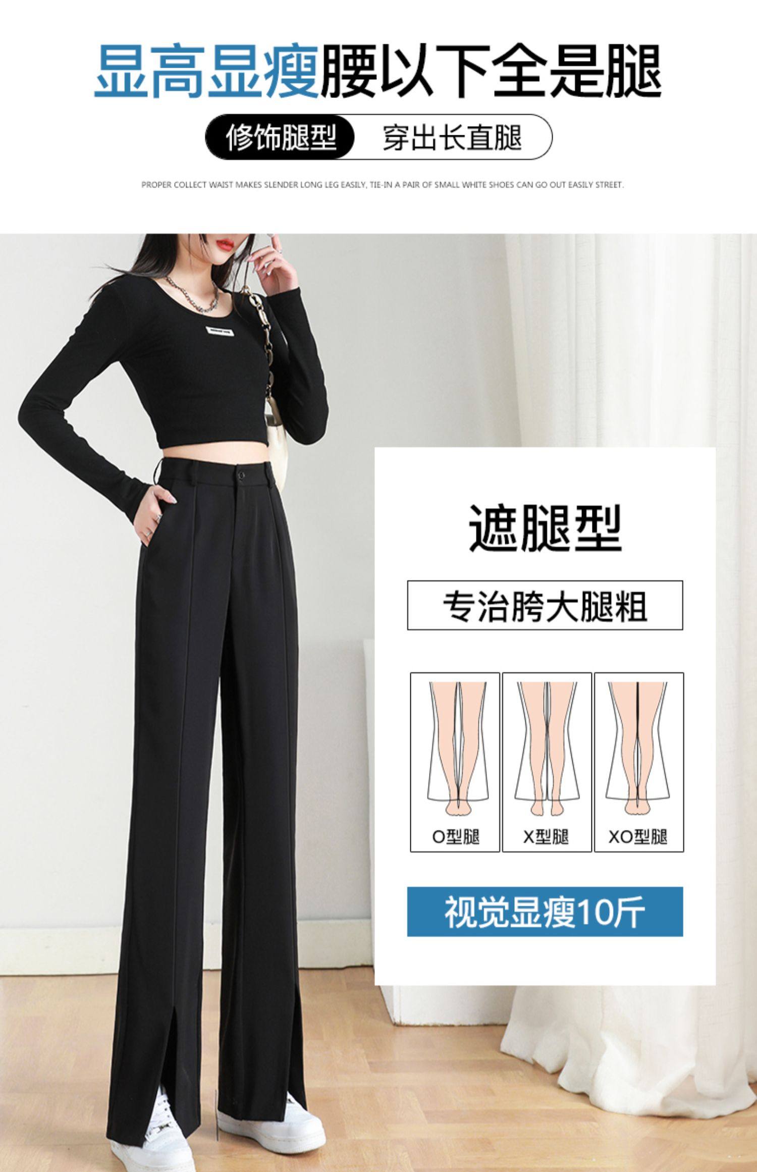 开叉西装裤女2023年新款春秋高腰垂感宽松显瘦直筒休闲窄版阔腿裤