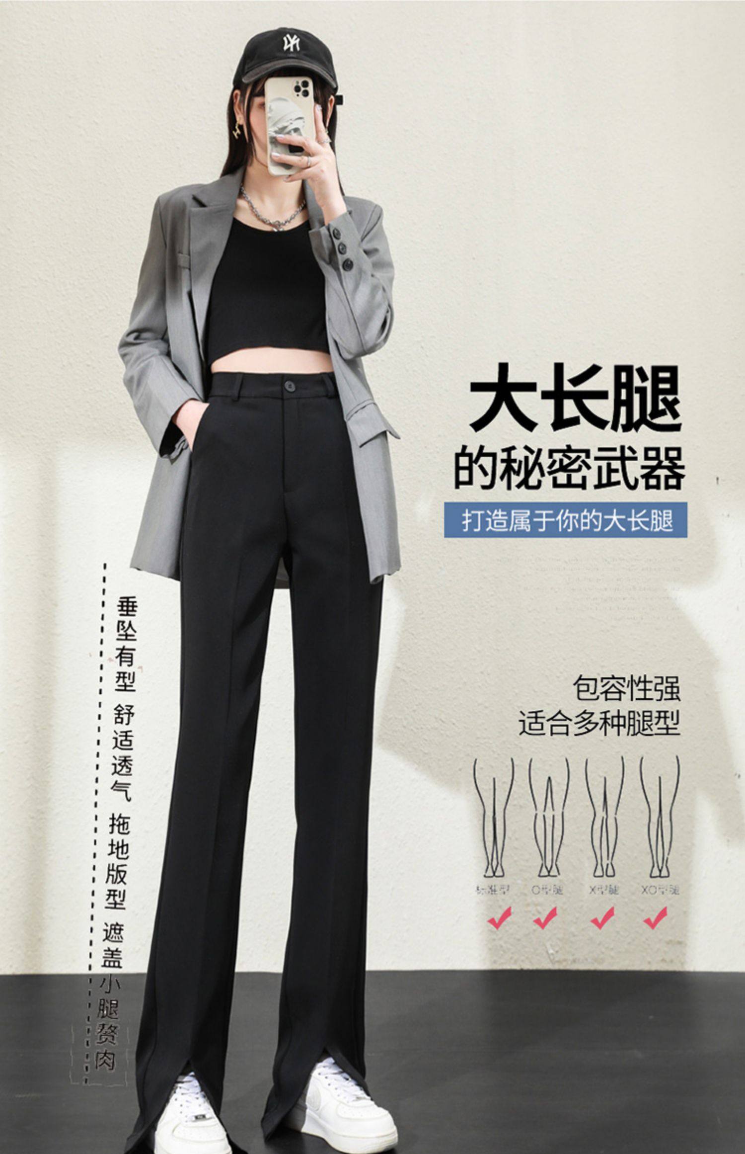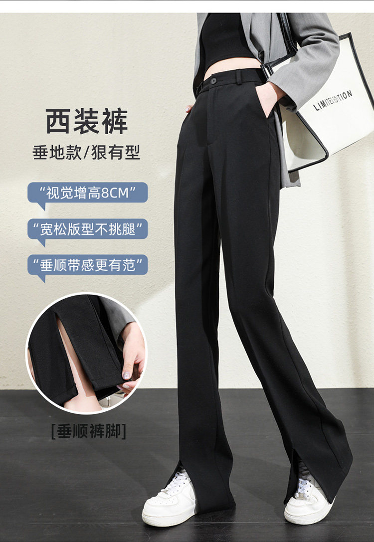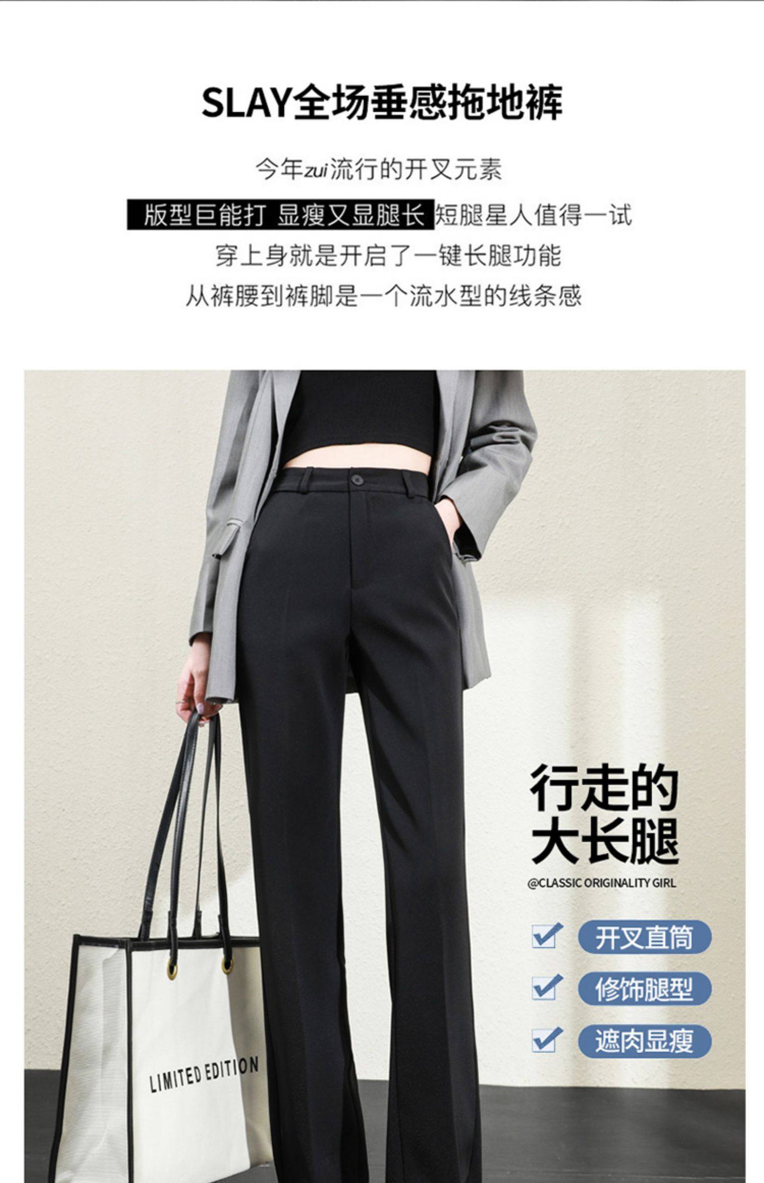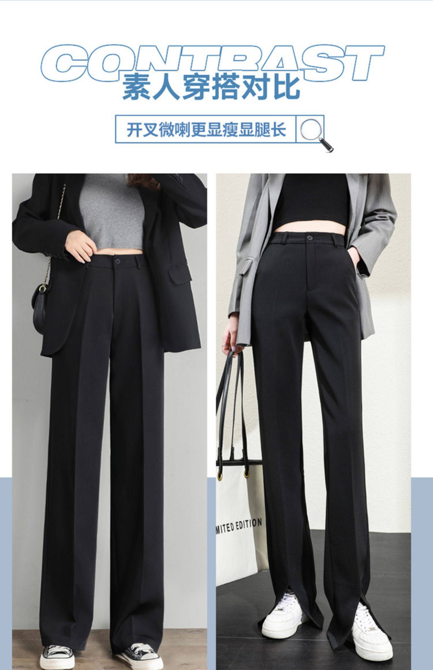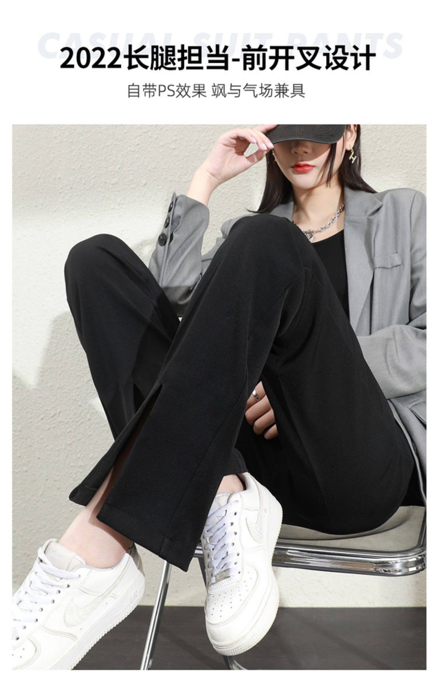 黑色开叉阔腿裤女春秋冬直筒高腰垂感小个子西装喇叭开衩拖地裤子