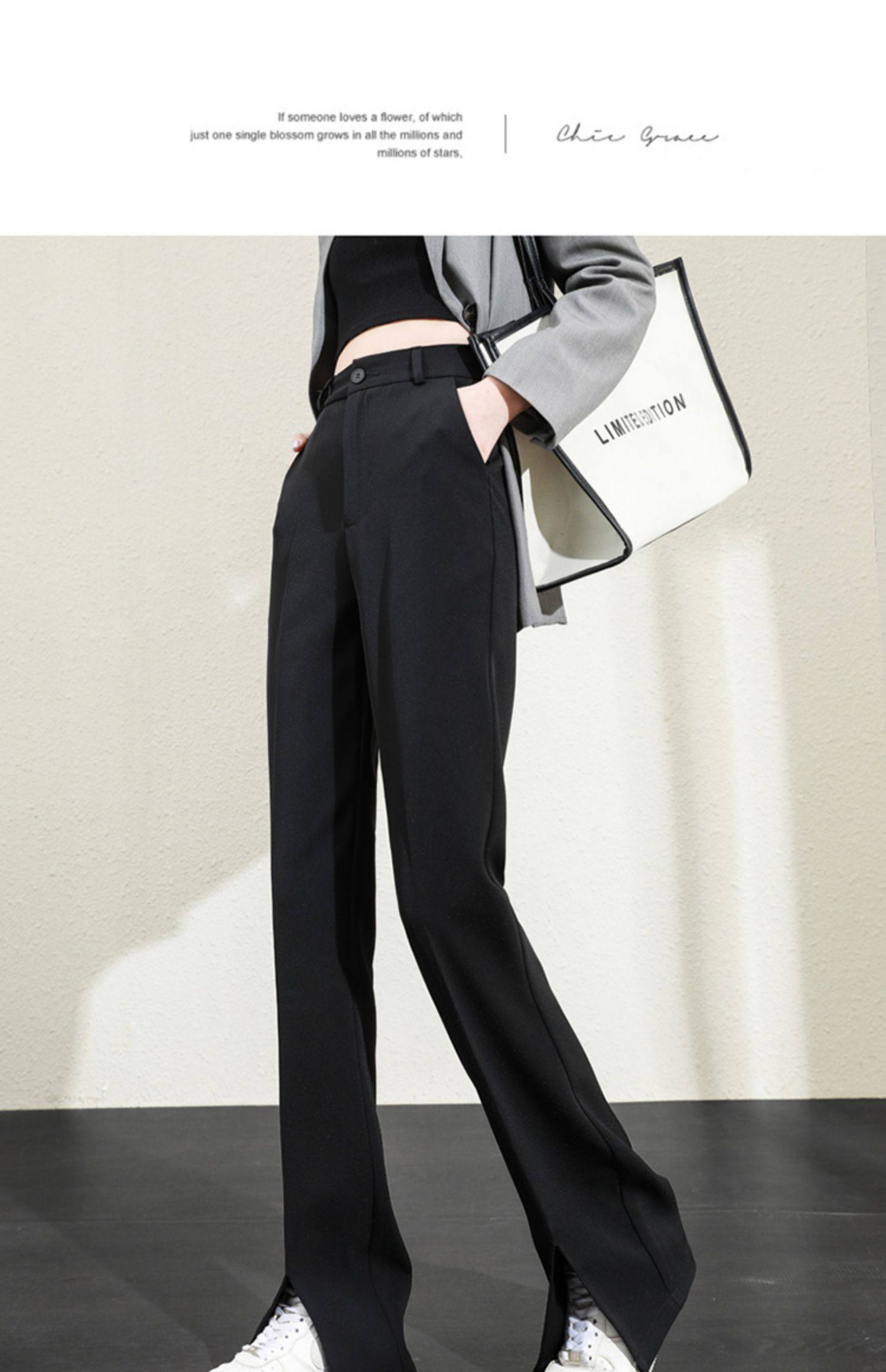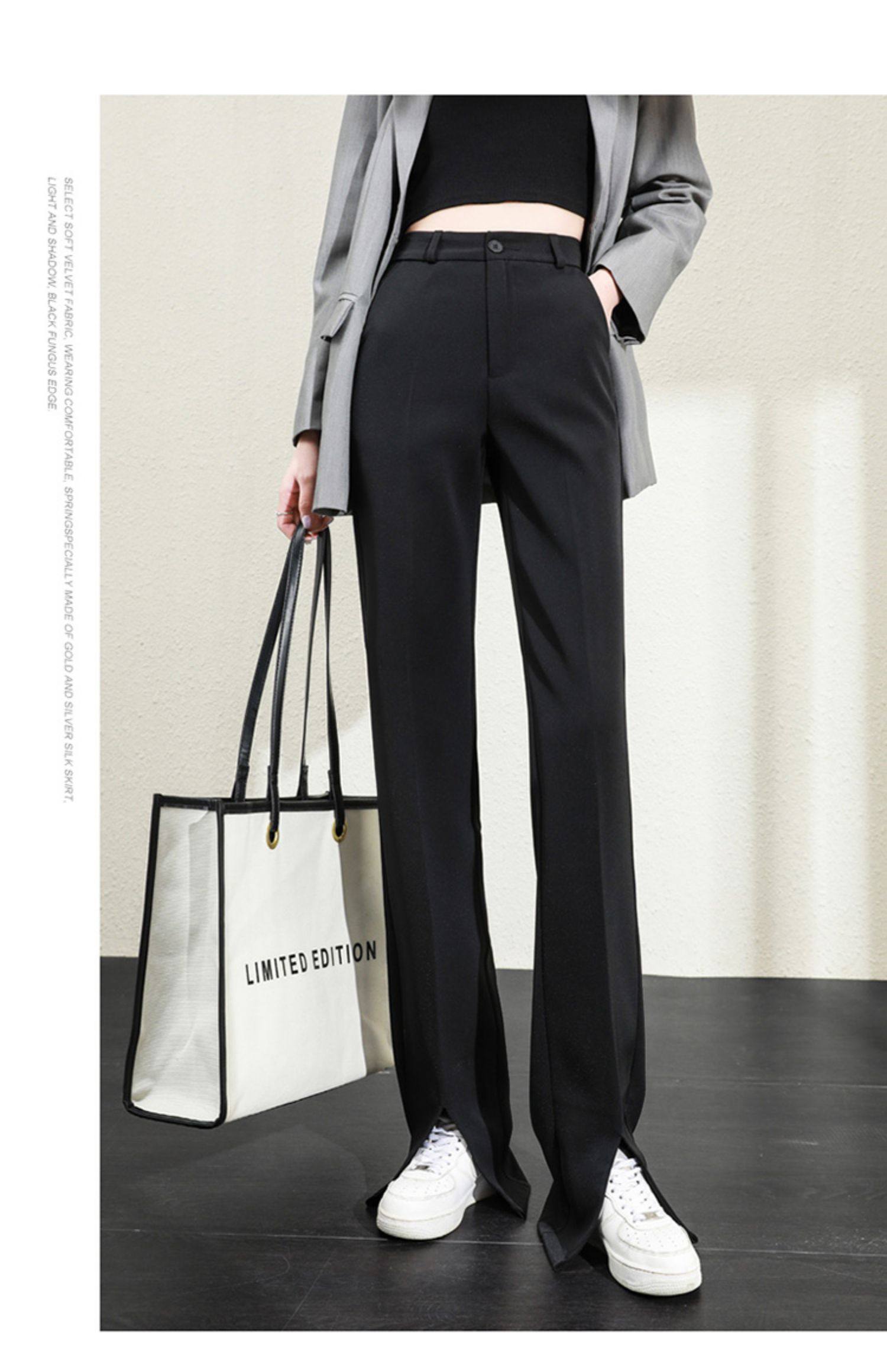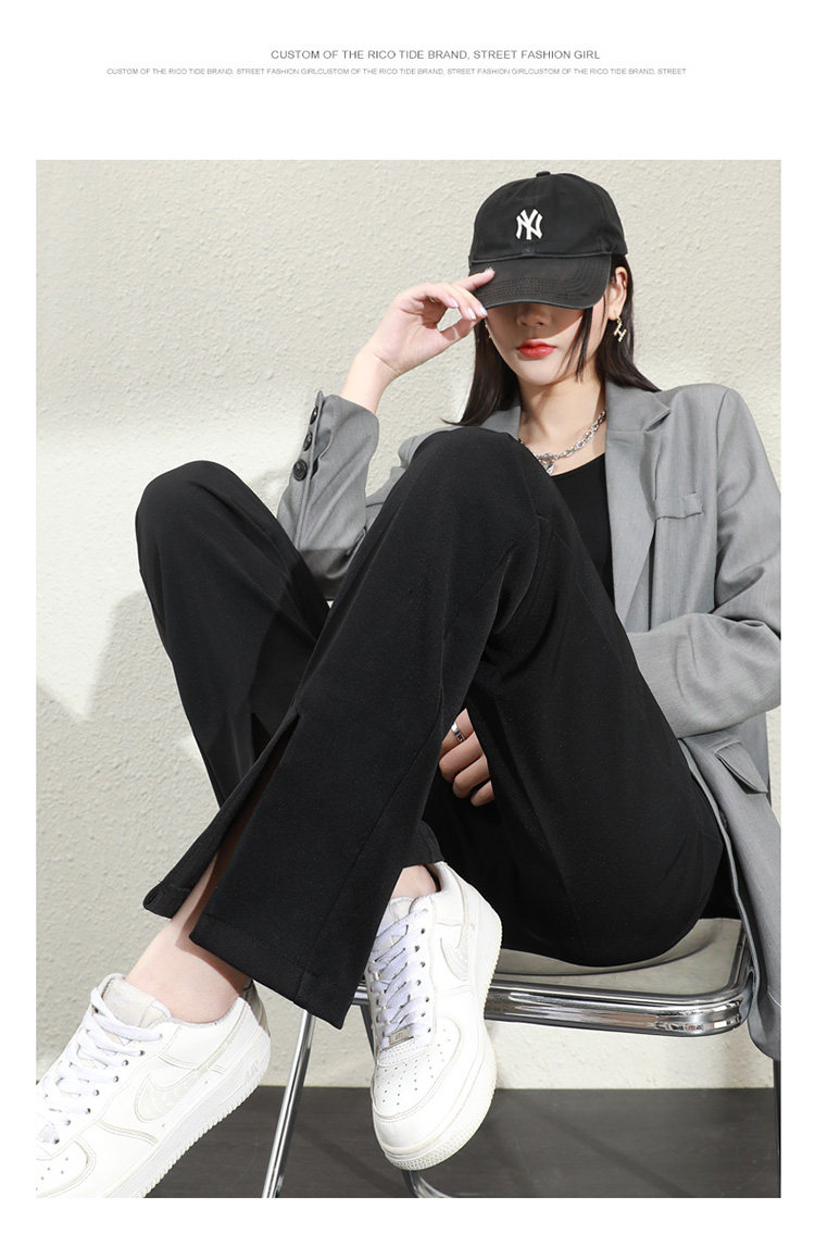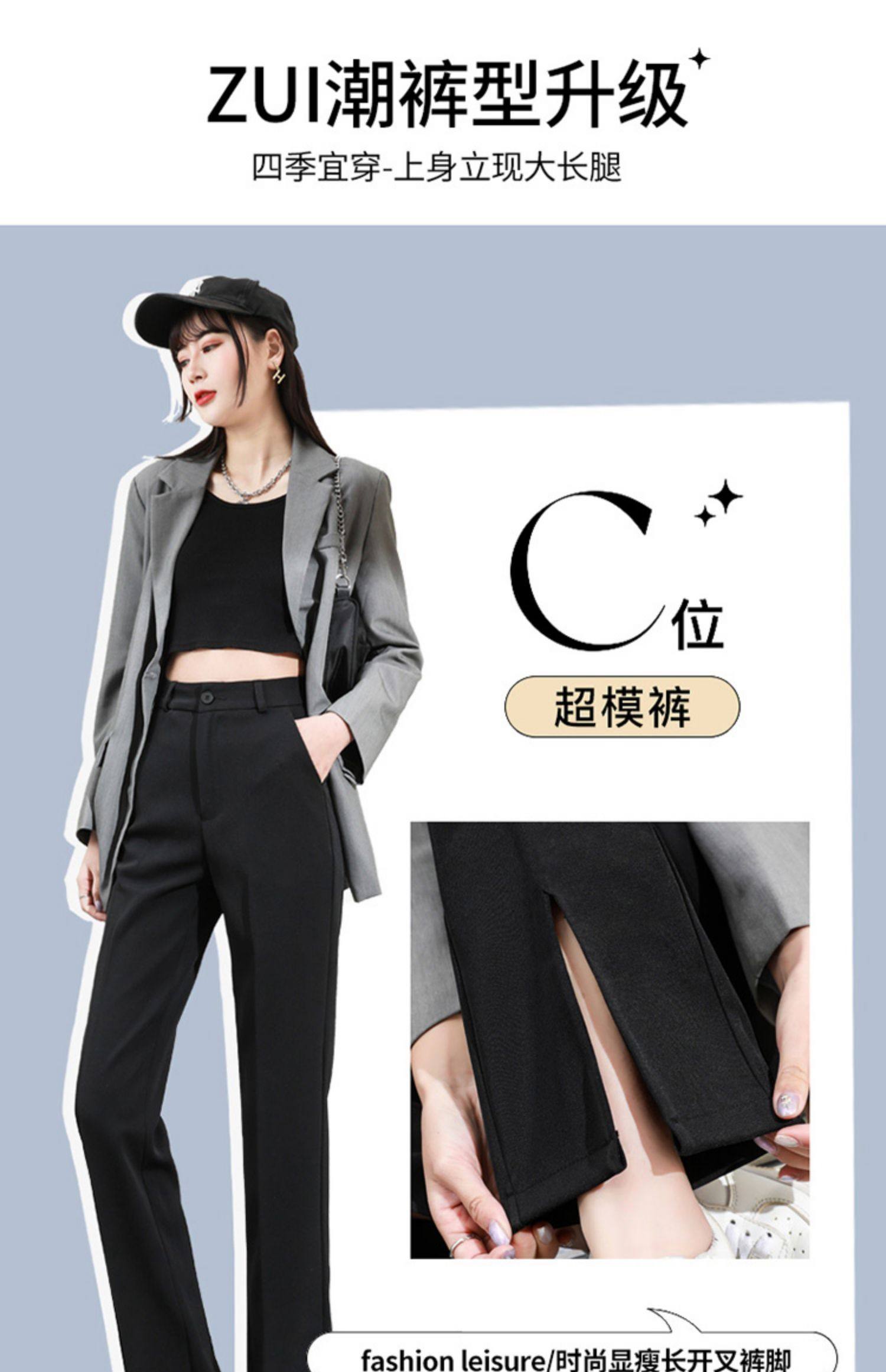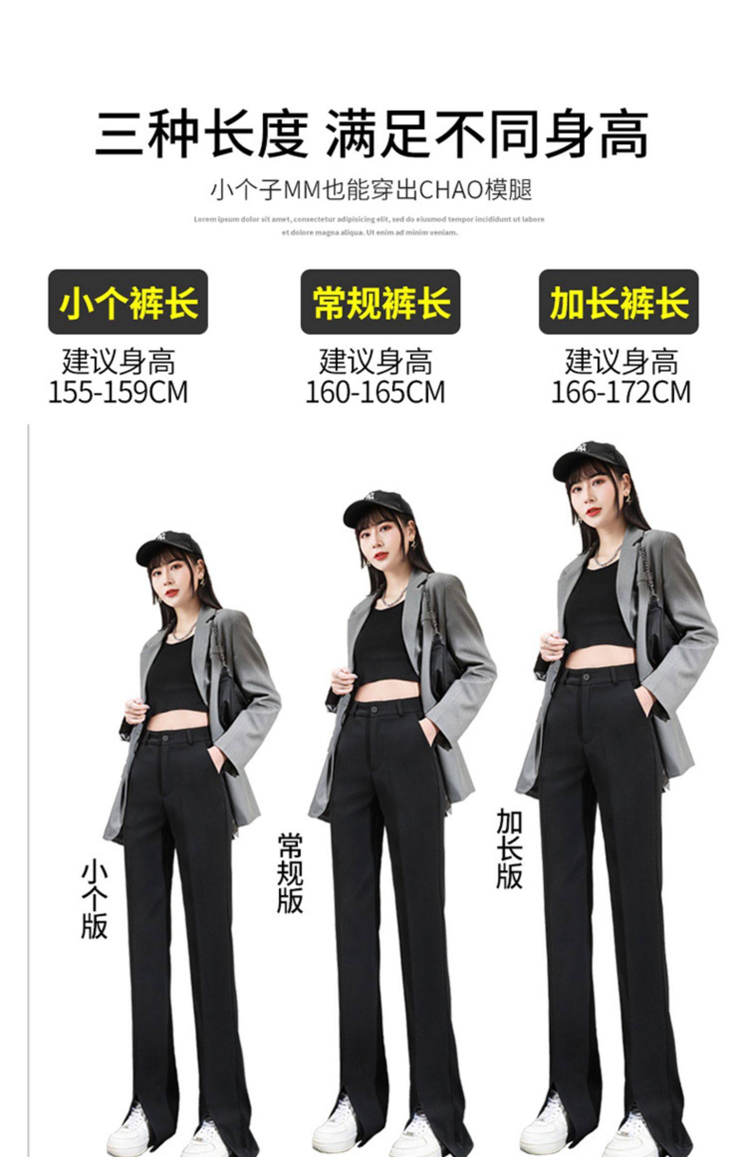 黑色开叉阔腿裤女春秋冬直筒高腰垂感小个子西装喇叭开衩拖地裤子
