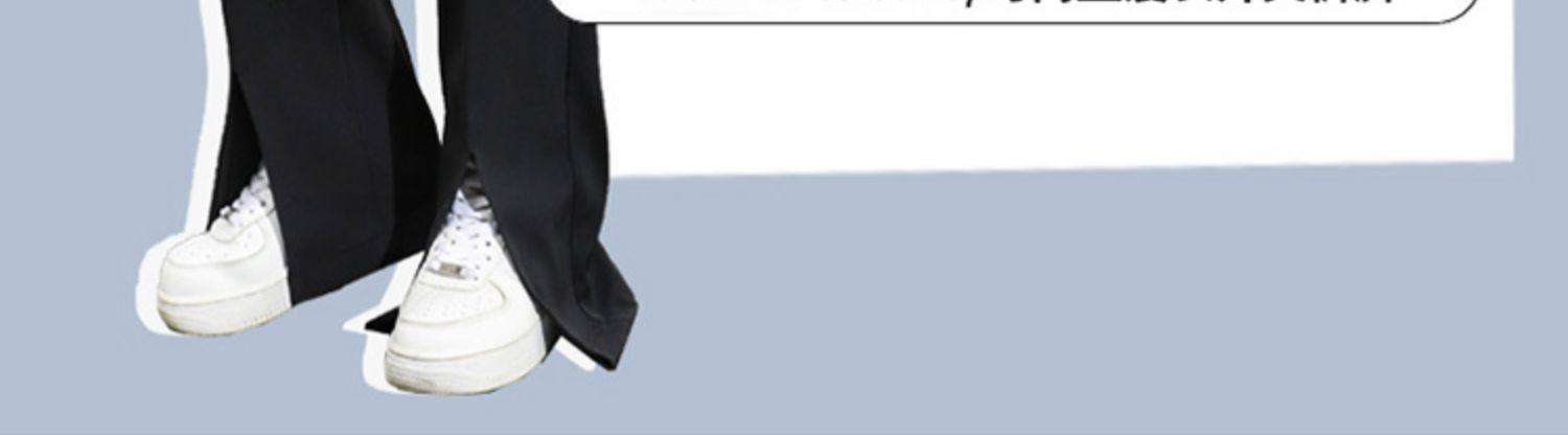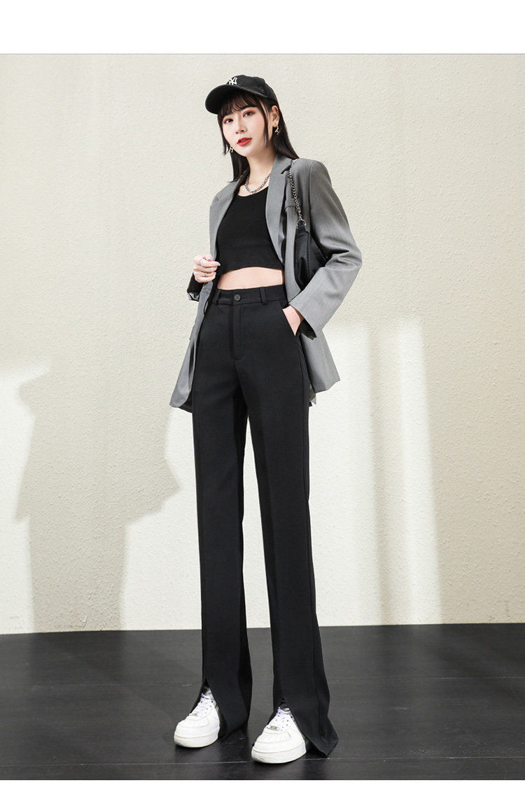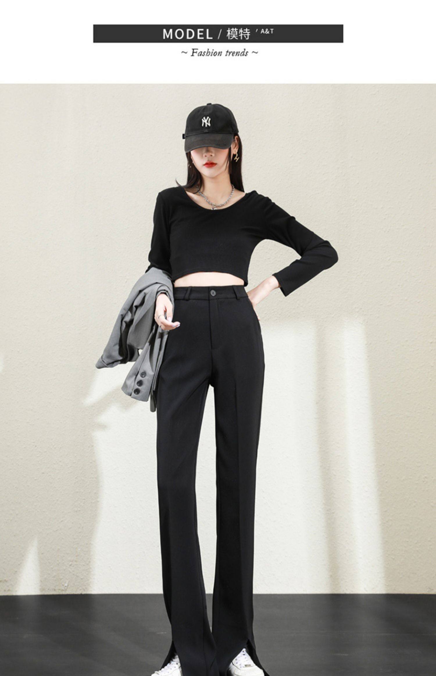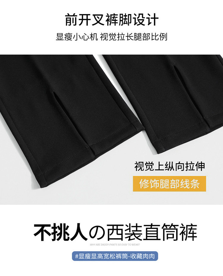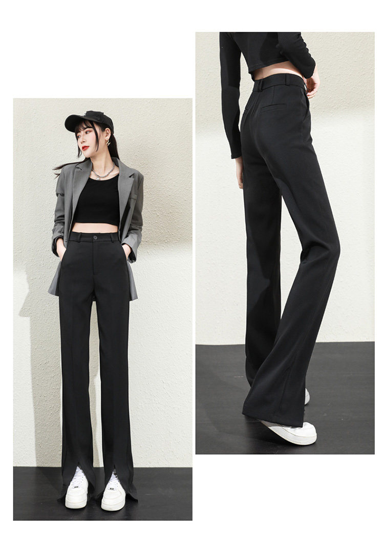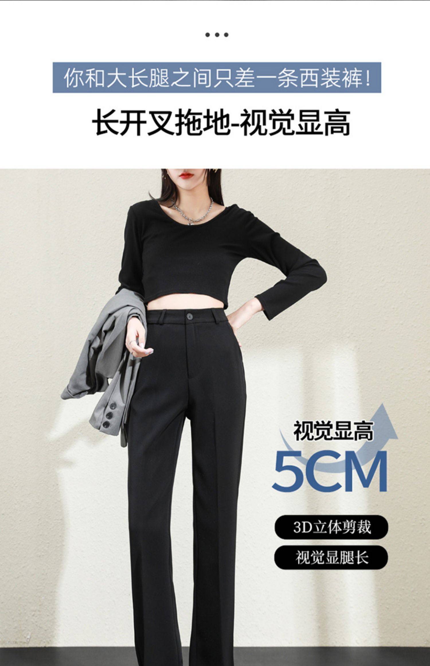 黑色开叉阔腿裤女春秋冬直筒高腰垂感小个子西装喇叭开衩拖地裤子