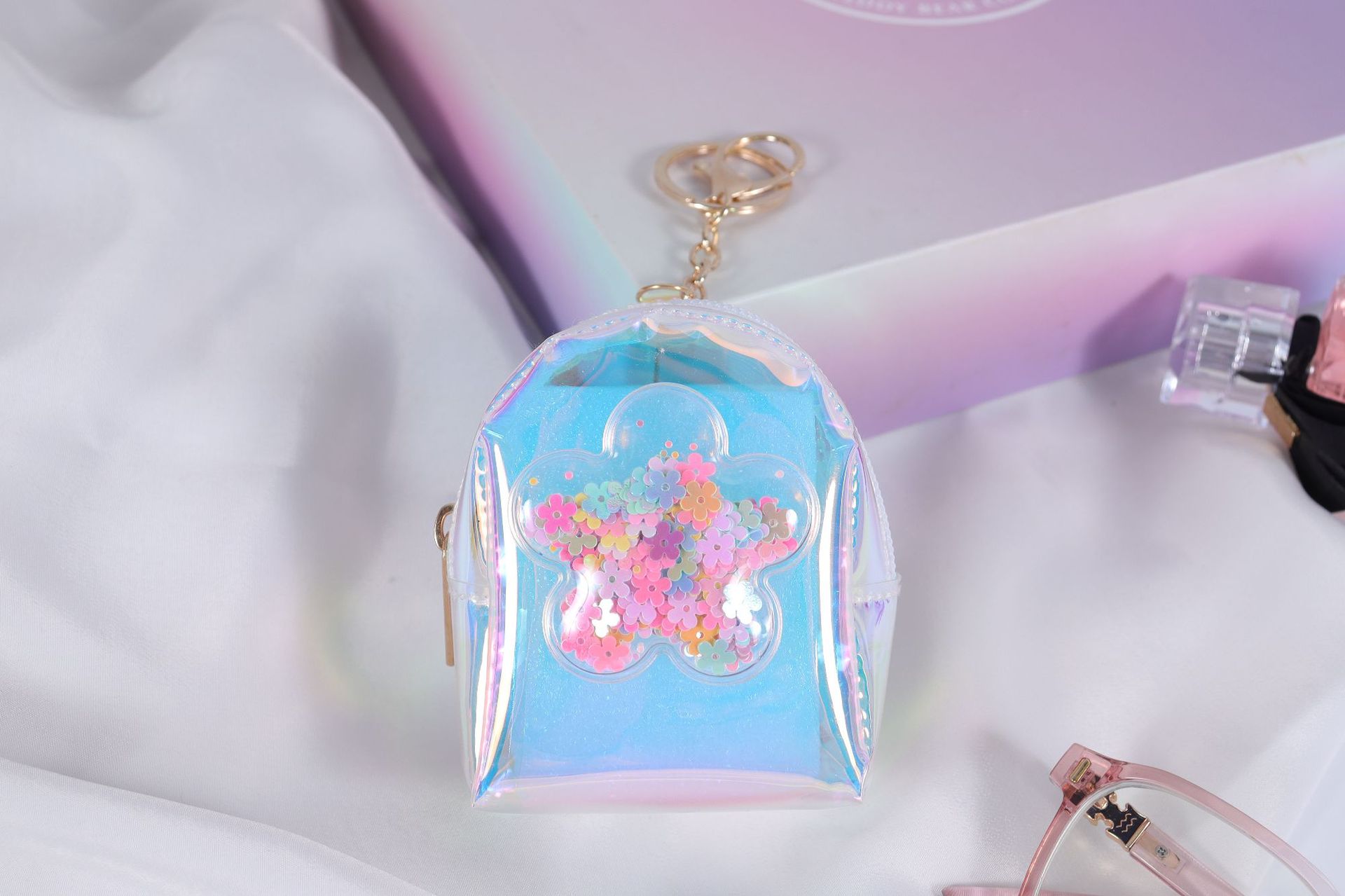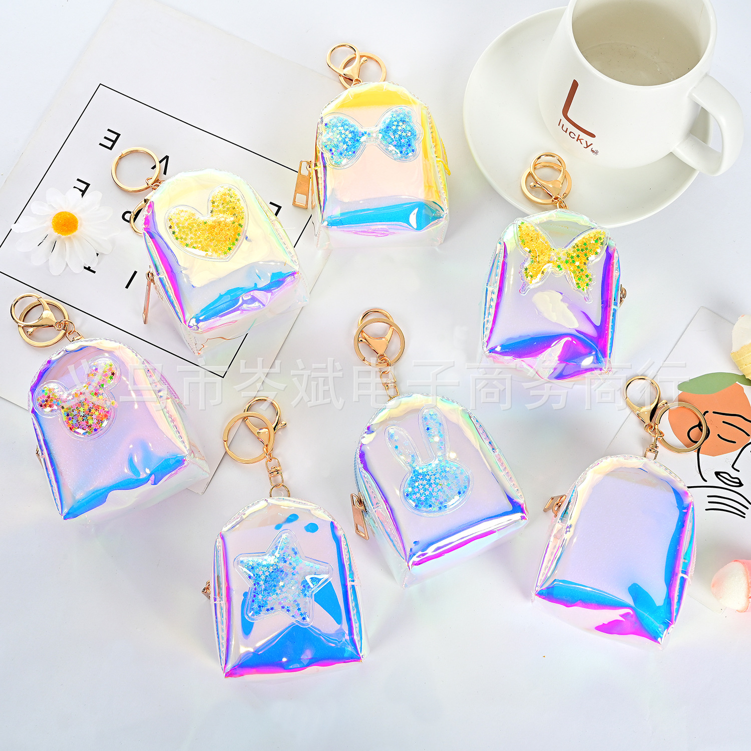 零钱包新款可爱流沙炫彩小背包便携手拿包镭射收纳小书包现货