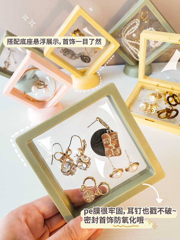 悬浮盒首饰盒包装袋收纳透明防氧化pe膜耳环耳钉项链手链饰品薄框