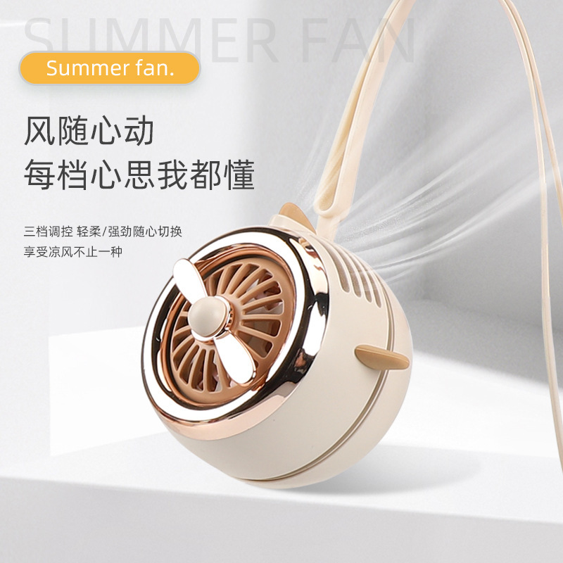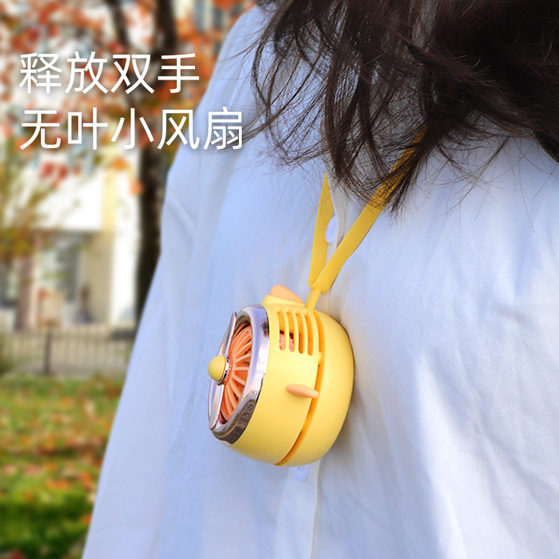 新款无叶挂脖迷你小风扇卡通萌宠公仔USB充电便携学生办公室旅游