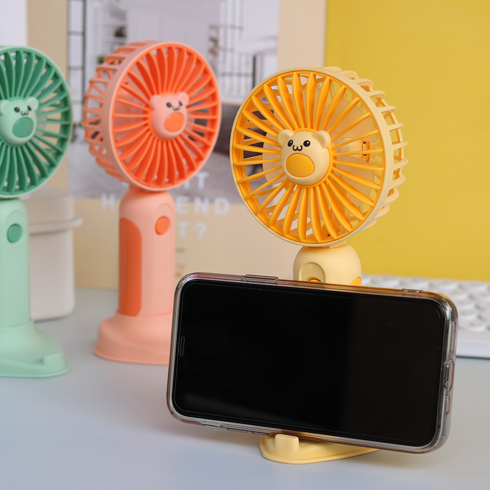 学生新品源头工厂萌熊迷你风扇USB充电桌面办公手持手机支架风扇