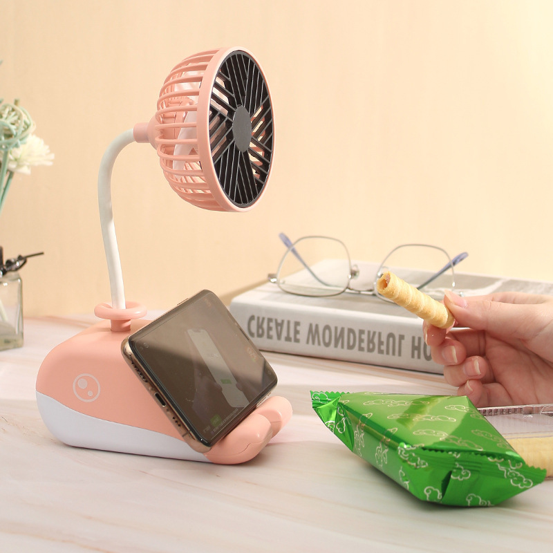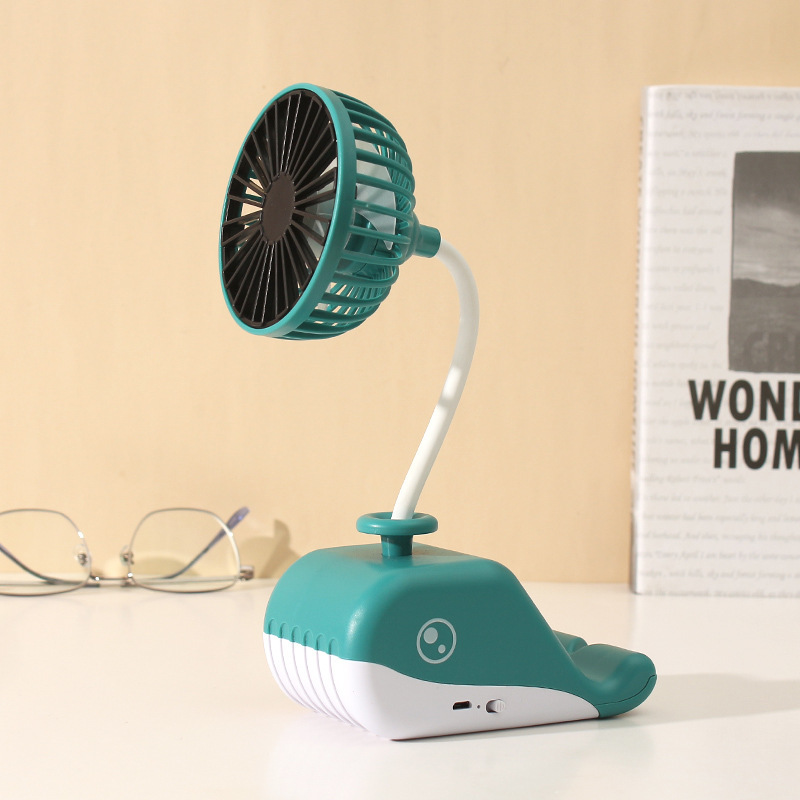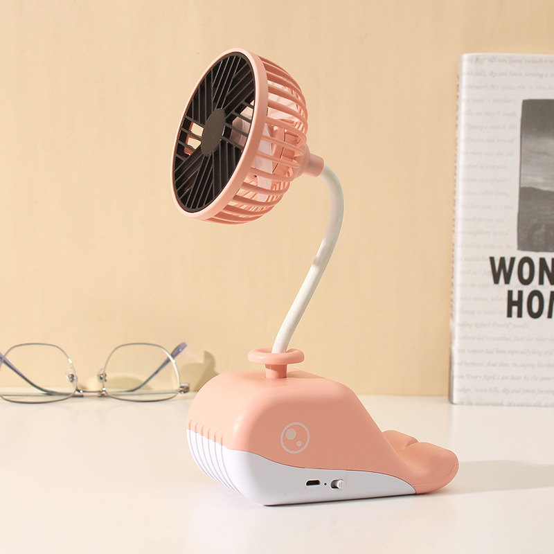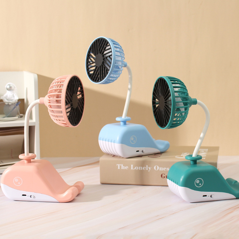 卡通鲸鱼风扇 USB充电台式风扇 便携式桌面手机支架懒人小风扇