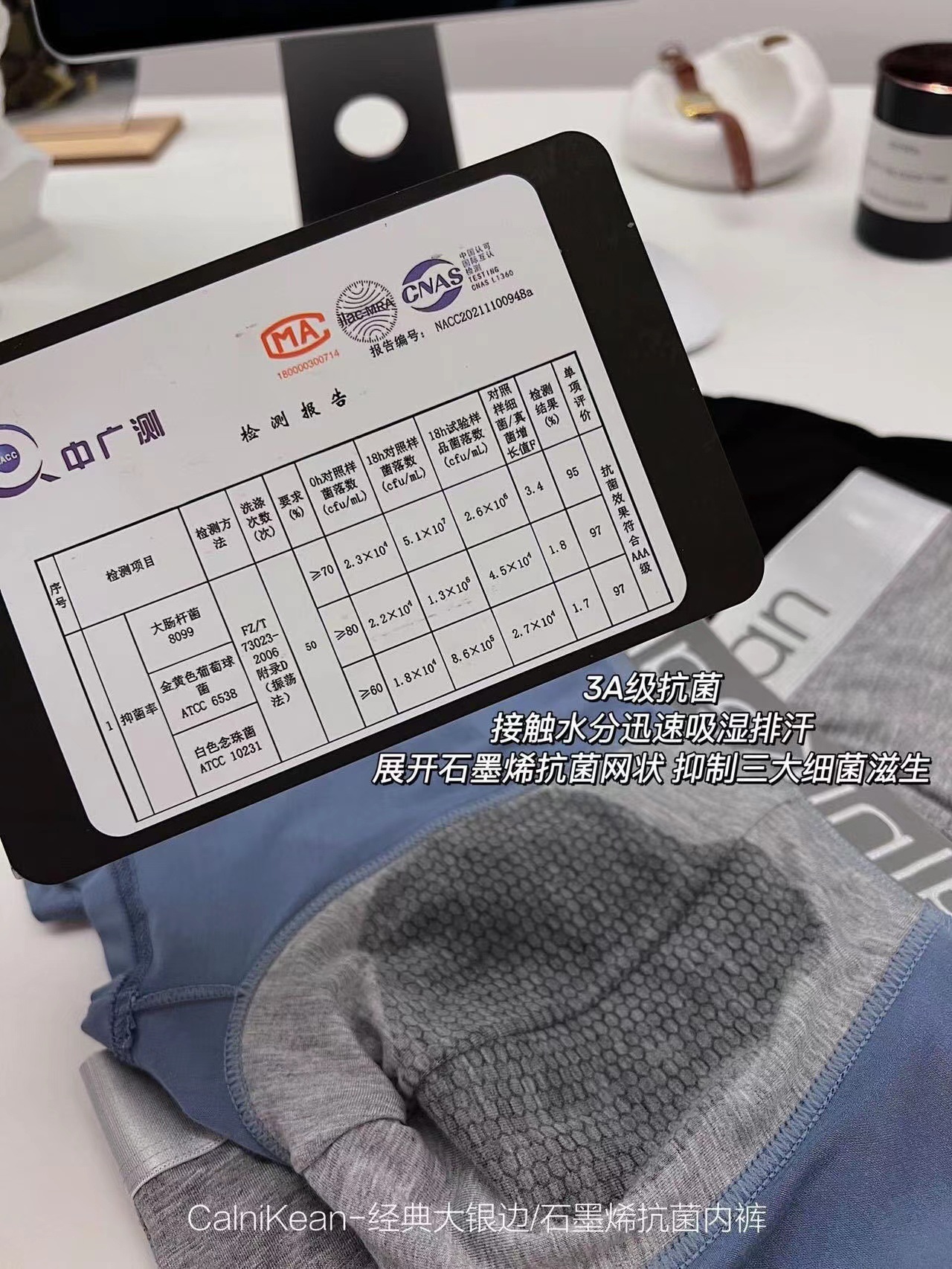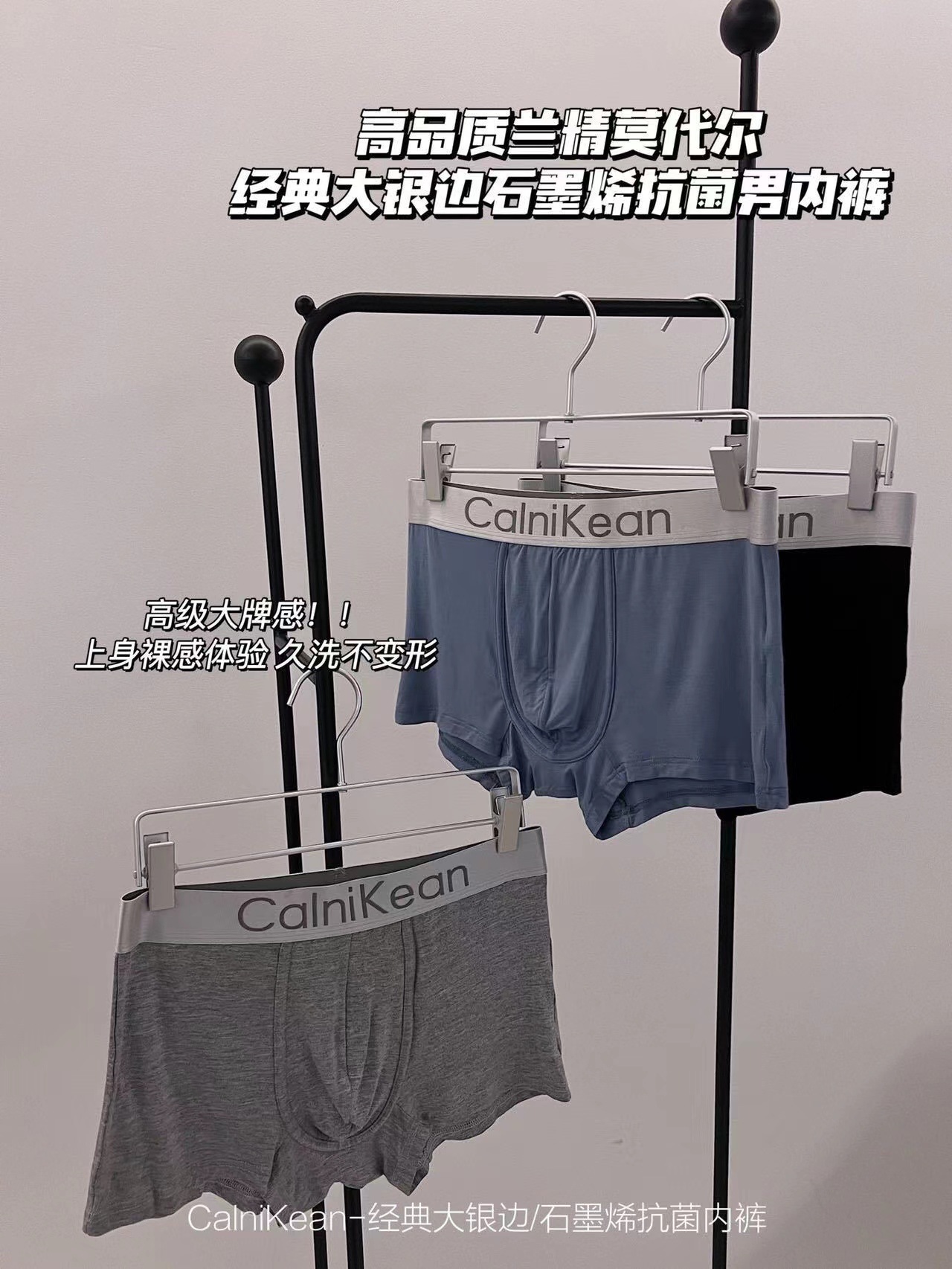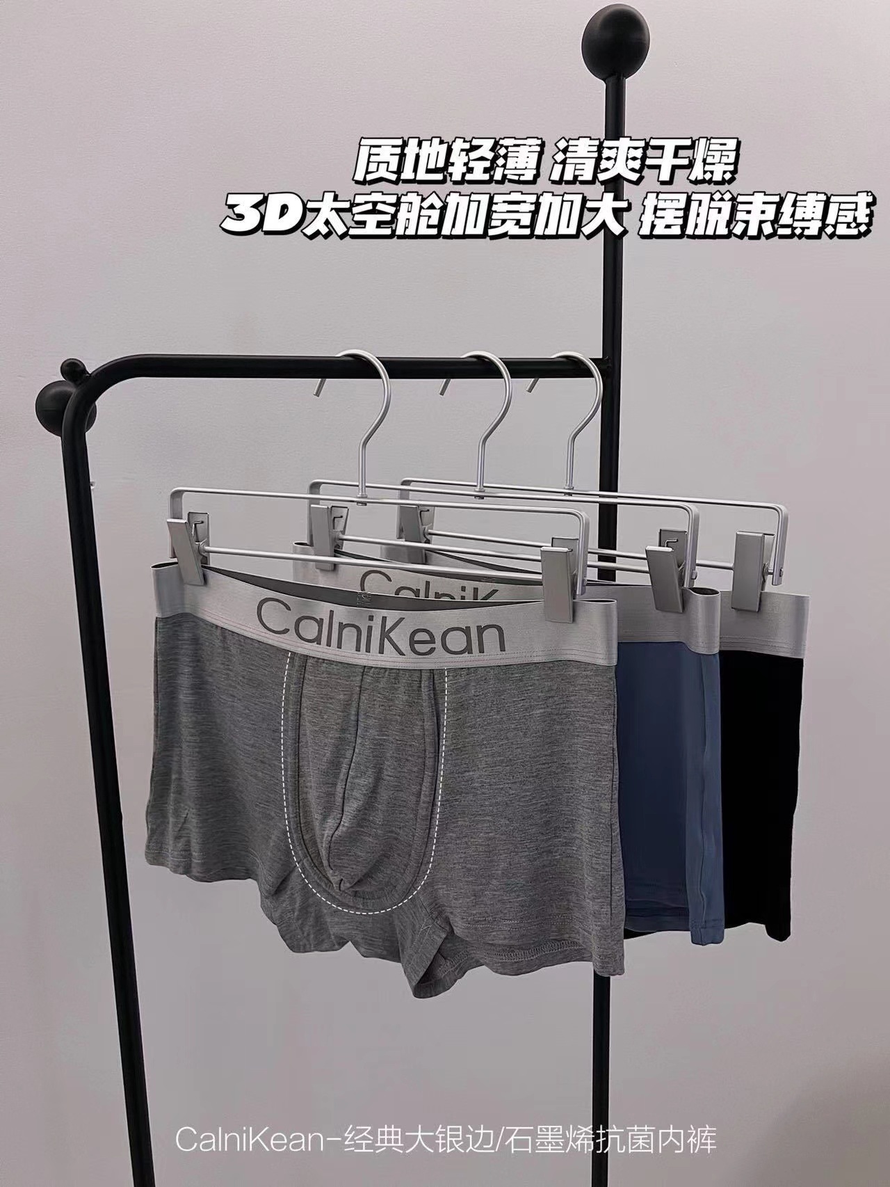C家经典大银边石墨烯菌男士内裤3条礼盒装透气中腰平角裤