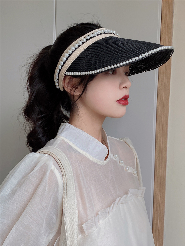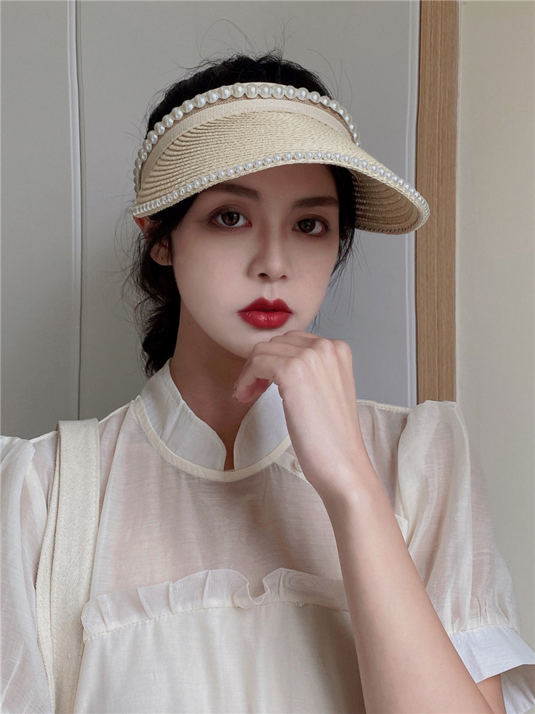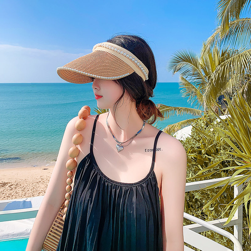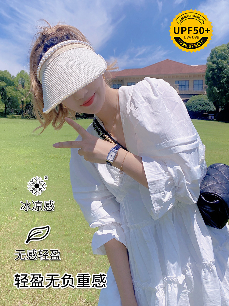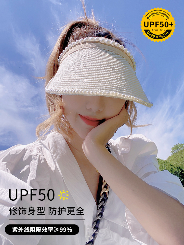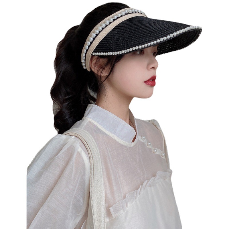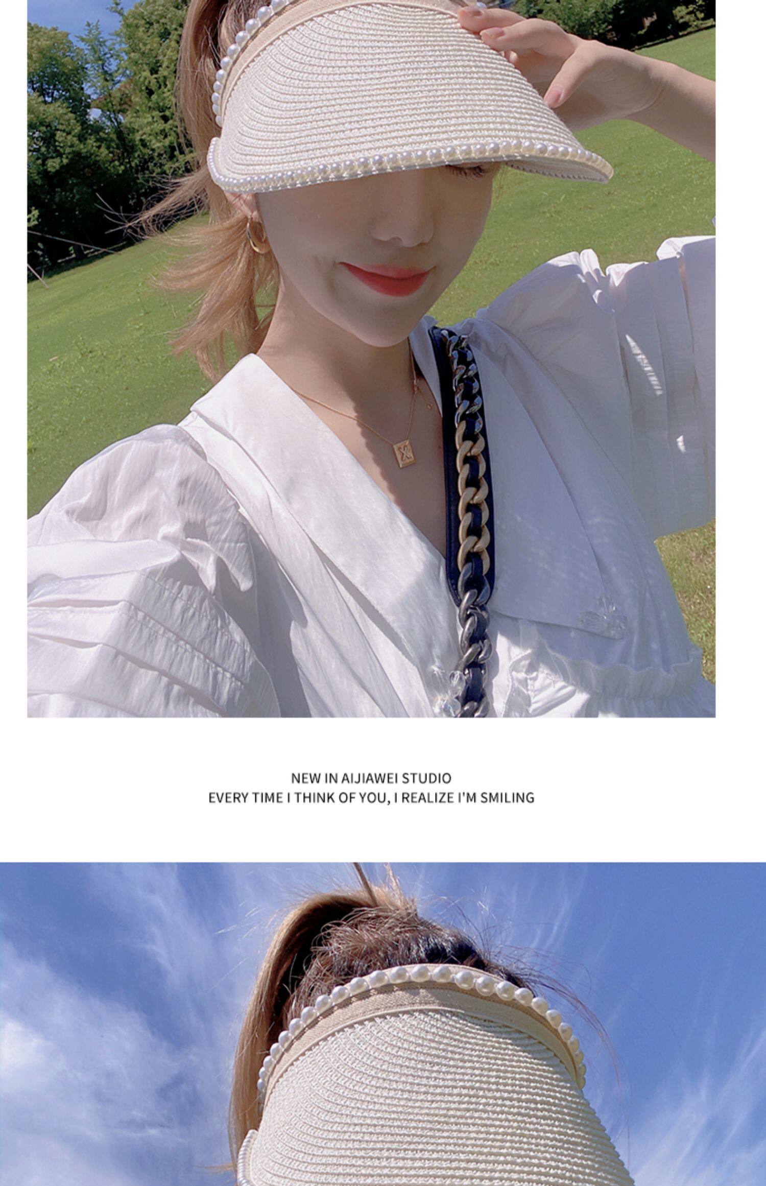 网红空顶帽子女遮阳帽夏季百搭防晒遮脸韩版潮无顶珍珠草帽太阳帽