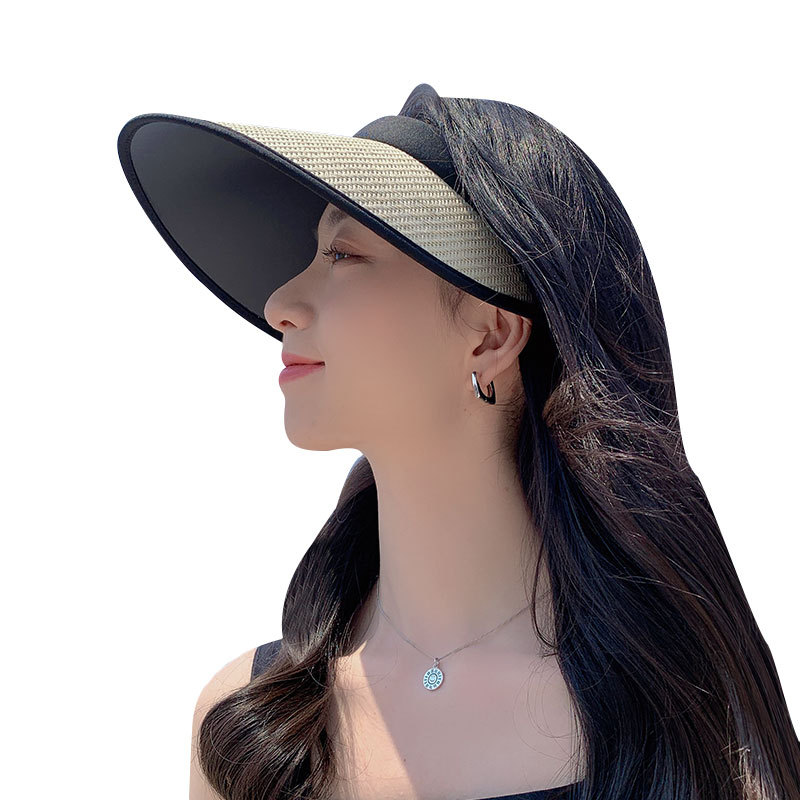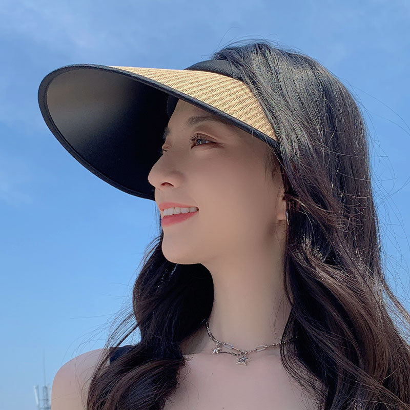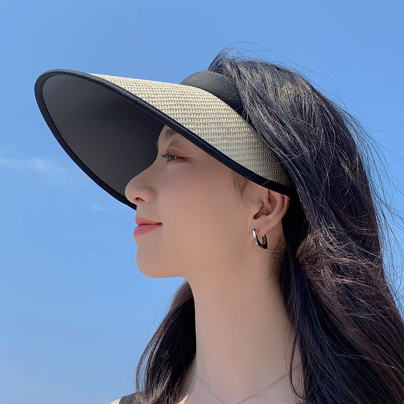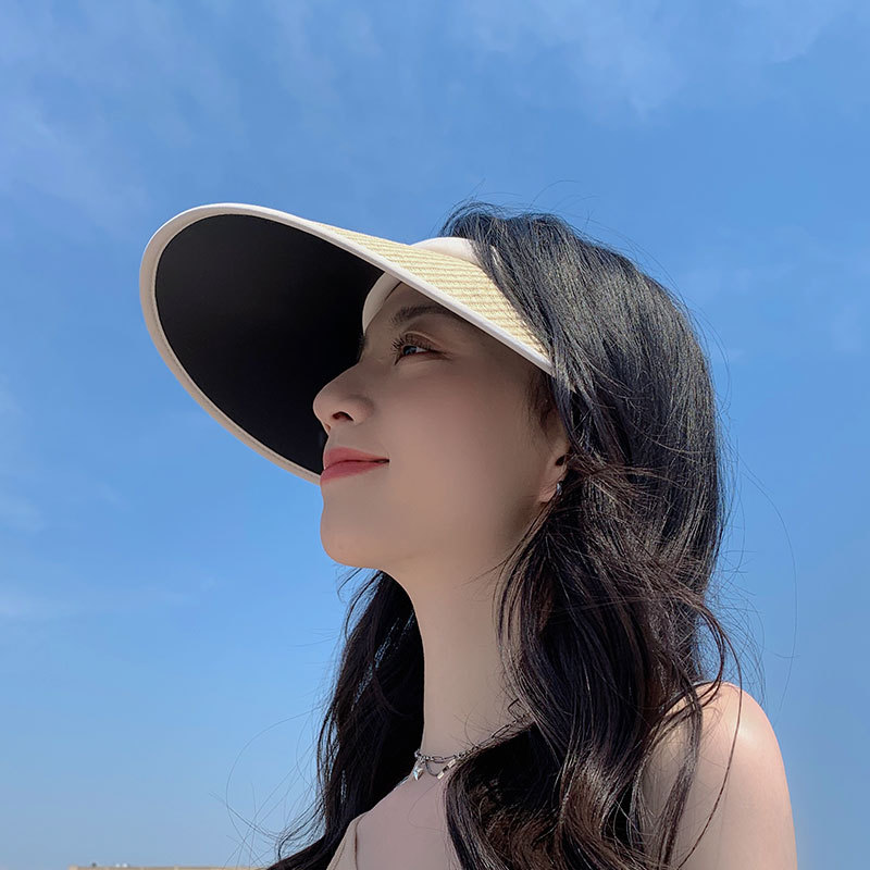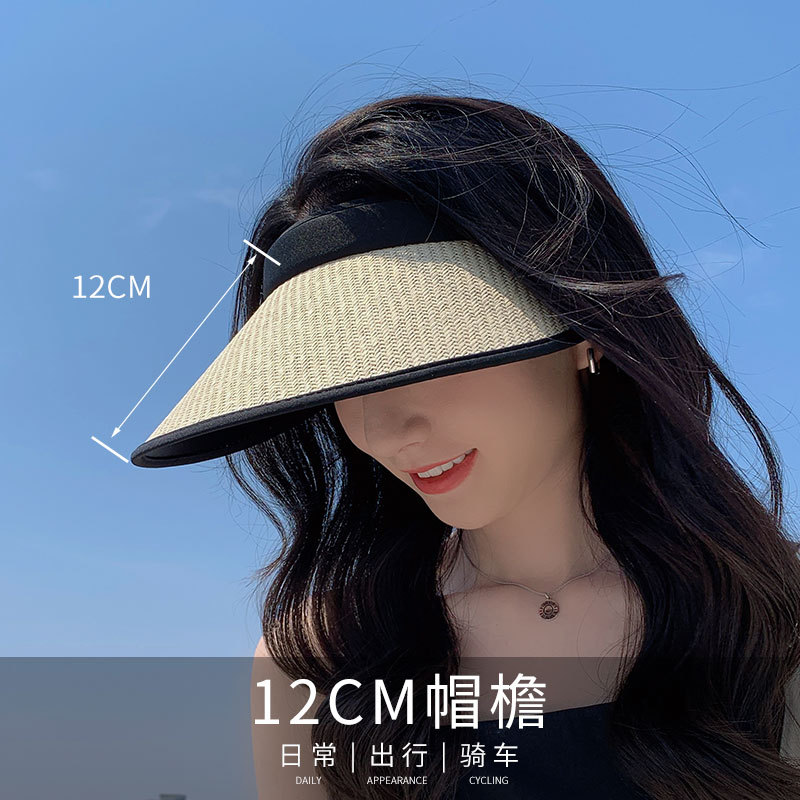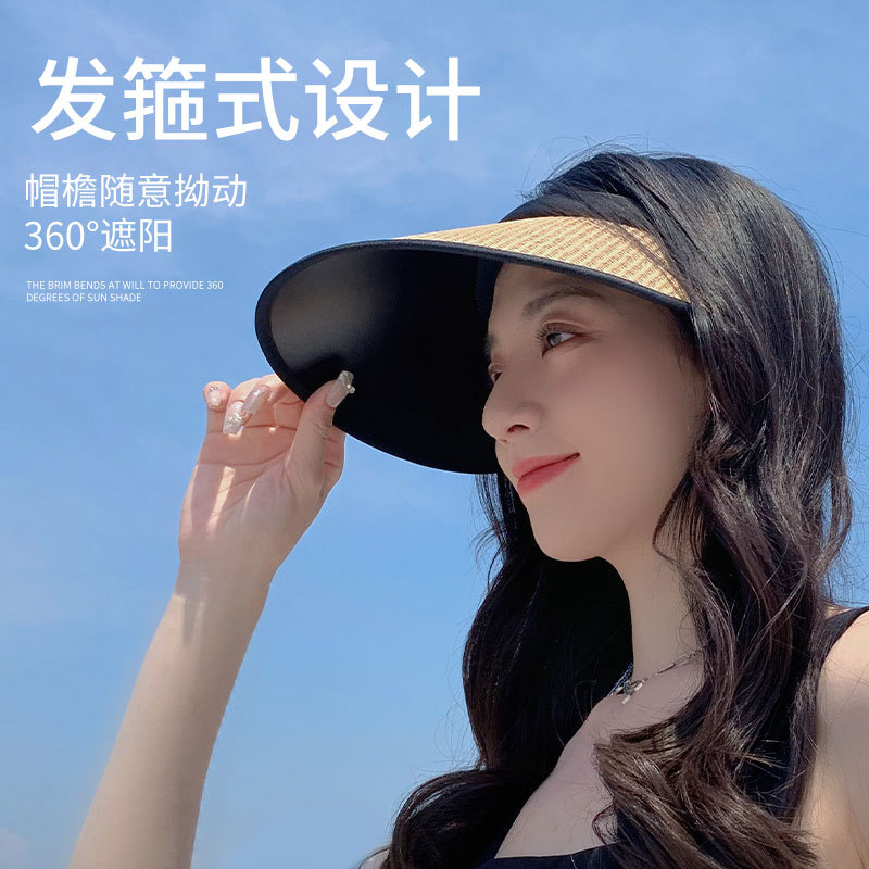 夏季发箍帽网红同款时尚空顶遮阳黑胶草帽女大檐小标防晒帽女潮