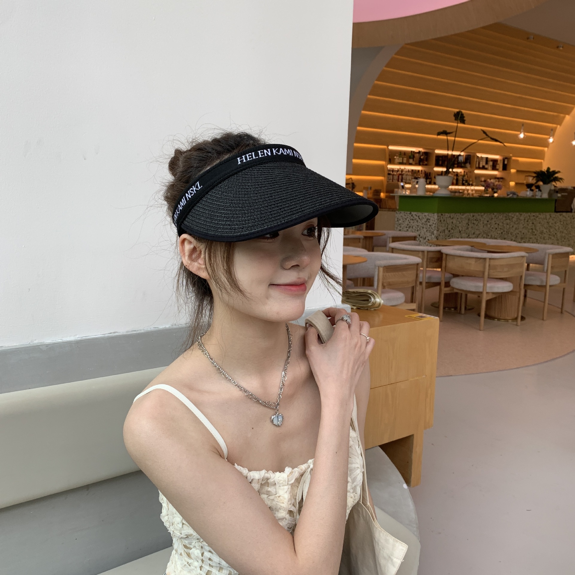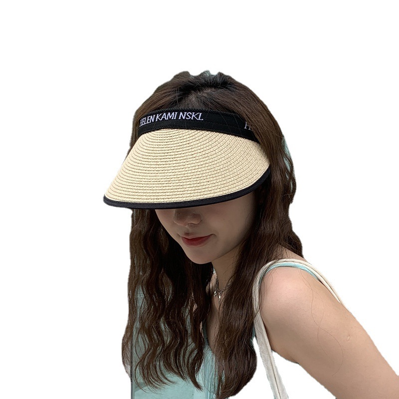 空顶uv防晒帽女夏防紫外线大帽檐沙滩遮阳草帽骑车遮脸太阳帽子