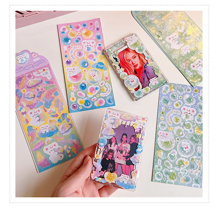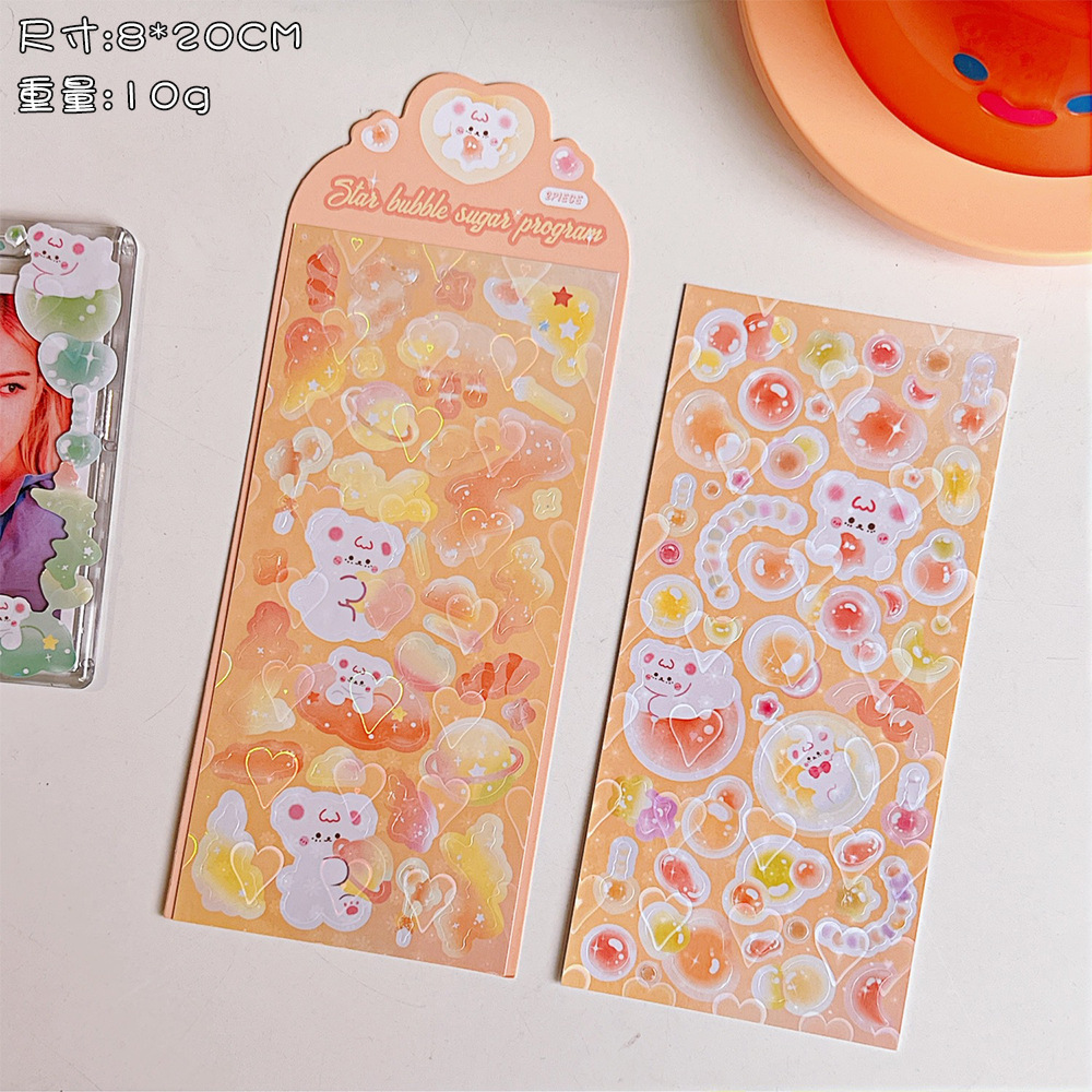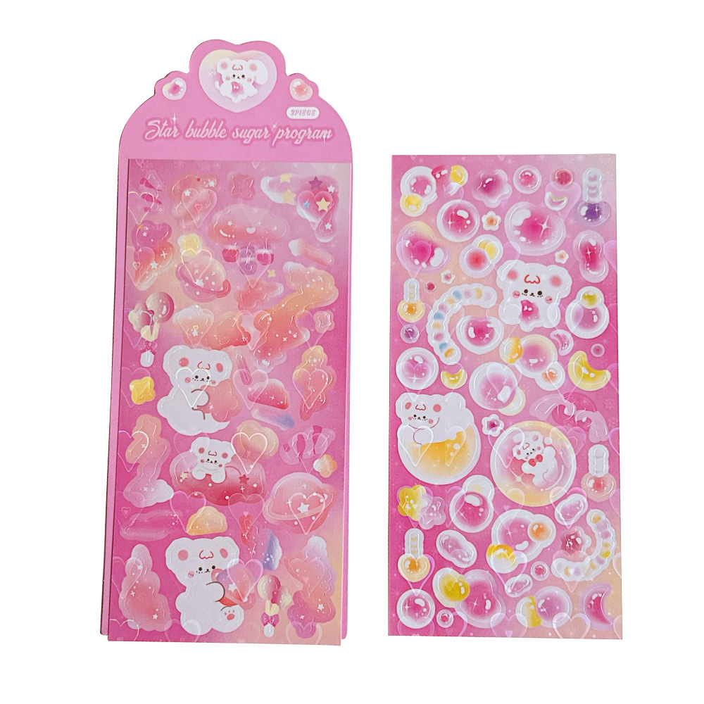 可爱泡泡熊咕卡圆盘小贴纸学生日记卡通动物咕盘贴贴纸手帐网红风