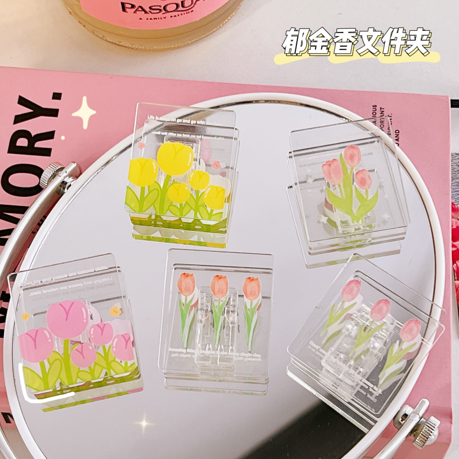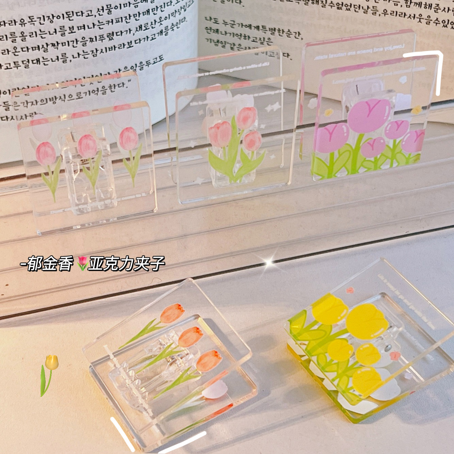 透明整理夹小夹子文件方糖亚克力夹子长尾夹彩色郁金香手帐文件夹