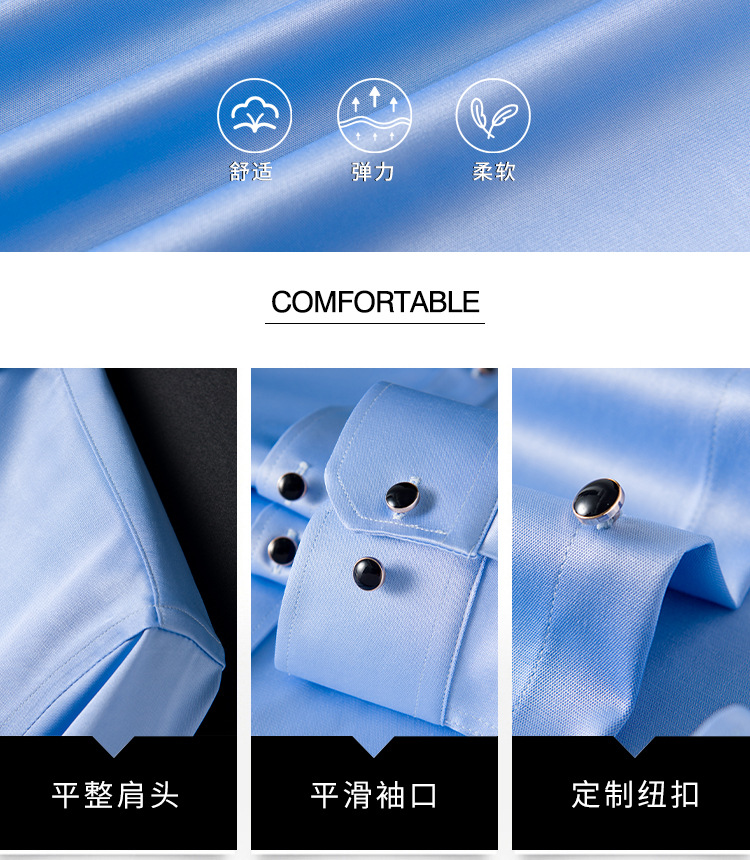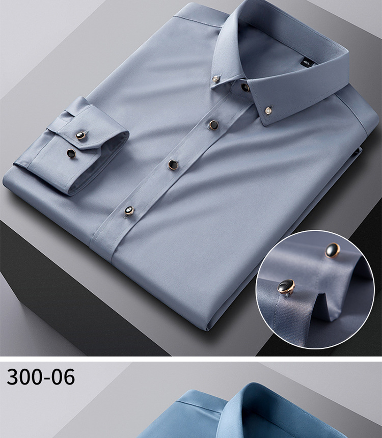 纯色弹力丝滑男士衬衫钻扣领衬衣英伦时尚休闲男士长袖寸衫春秋款