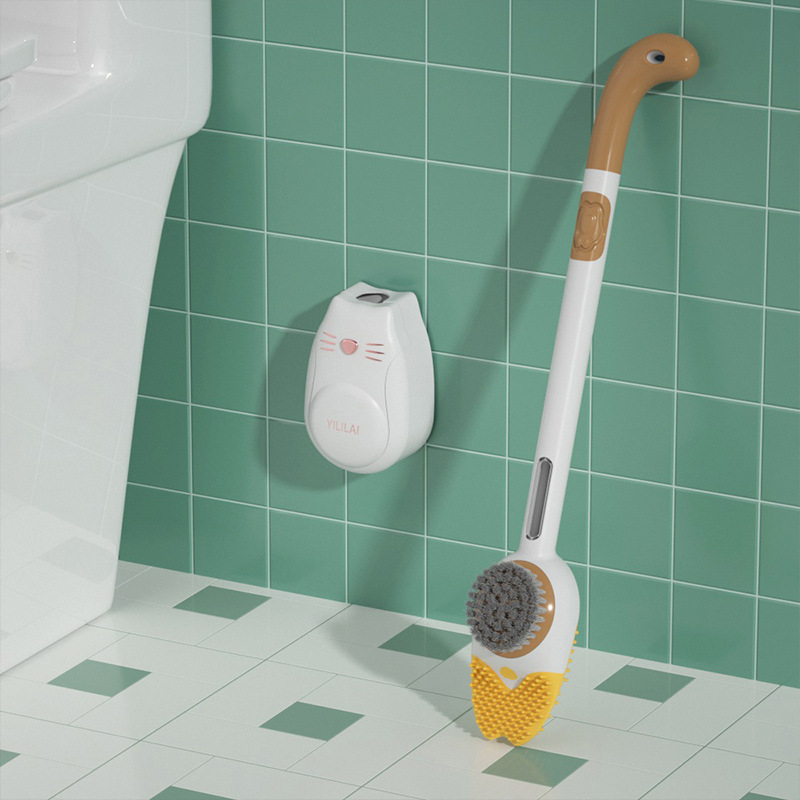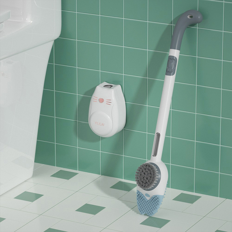 免打孔家用小猫硅胶加液马桶刷长柄卫生巾无死角壁挂软毛马桶刷子
