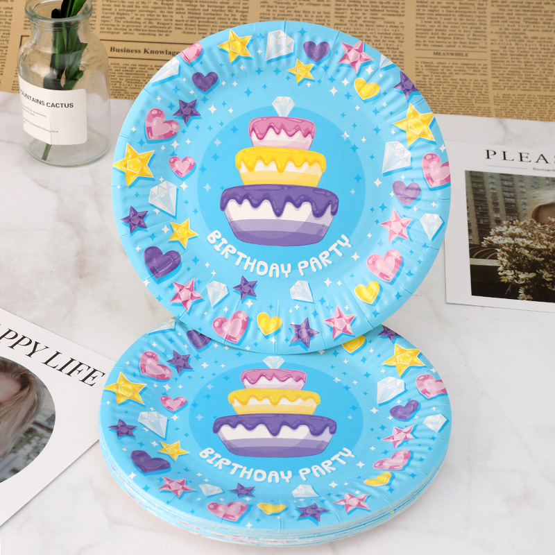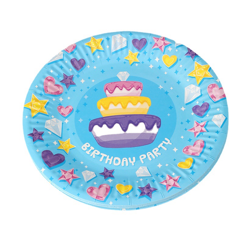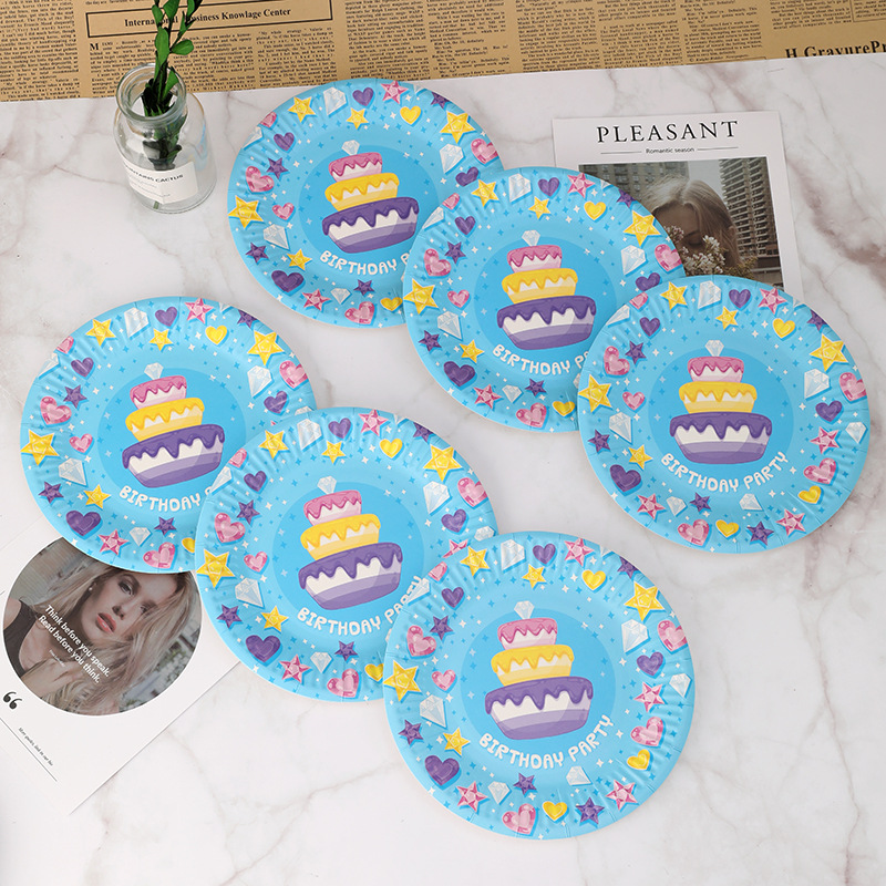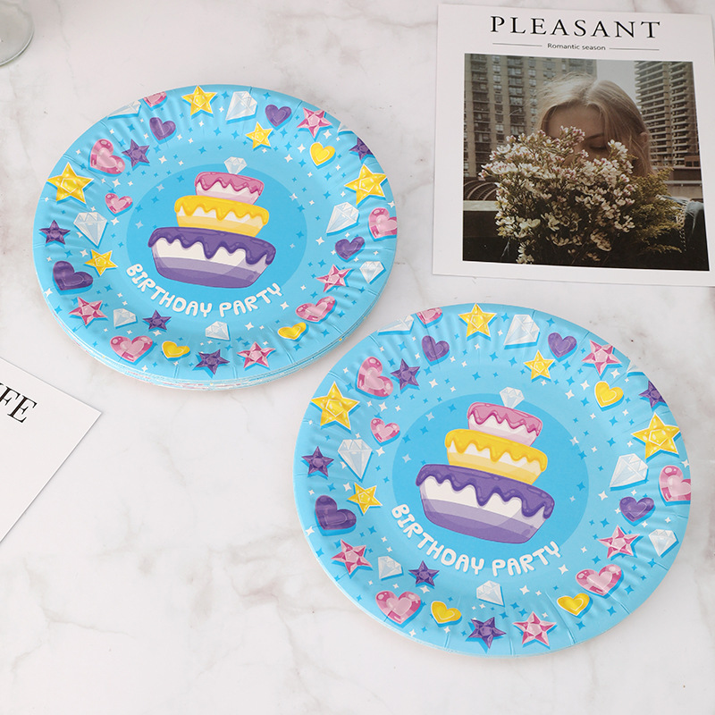 一次性纸盘7寸细纹白卡纸盘蛋糕印刷厂家批发圆形盘子一次性餐具