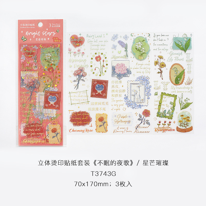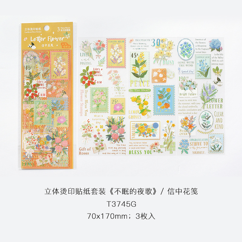 信的恋人 pet贴纸套装 不眠的夜歌系列 文艺浪漫花卉手帐DIY装饰