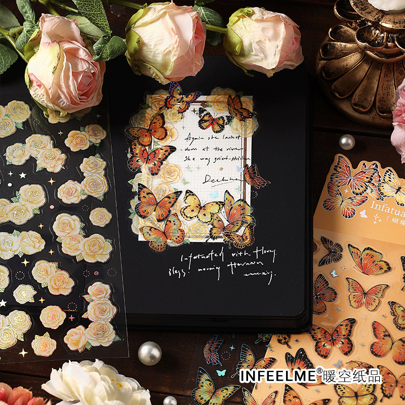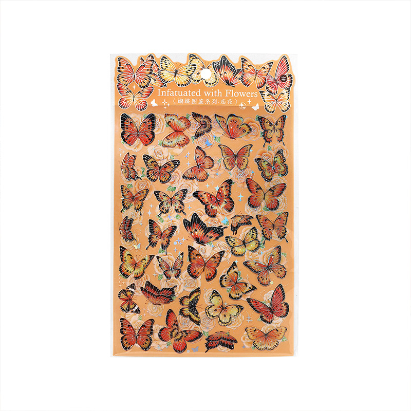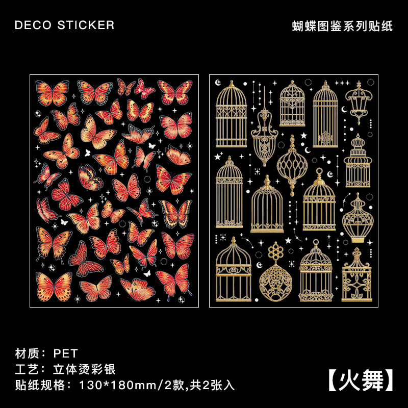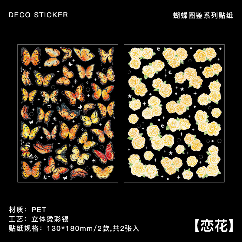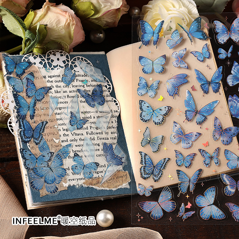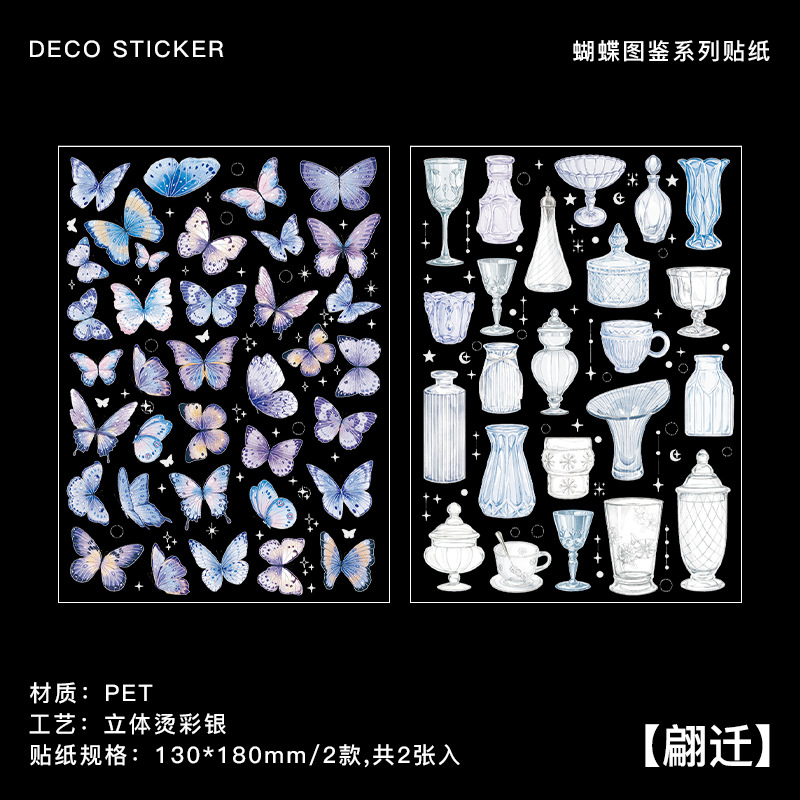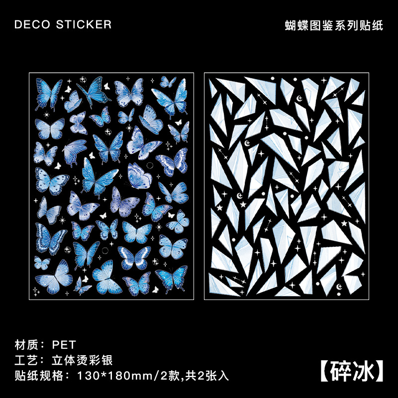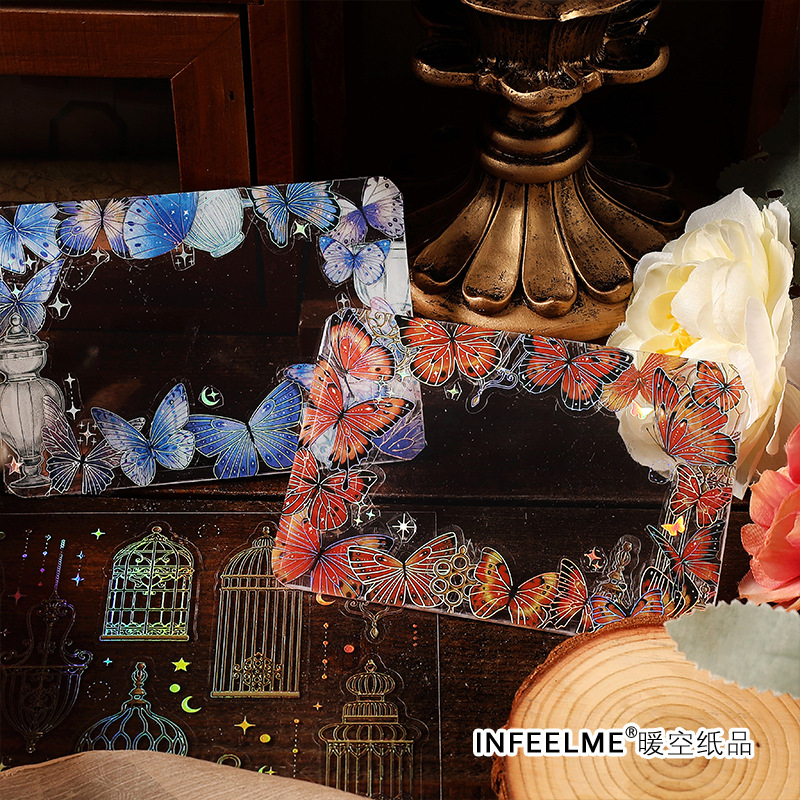 Infeel.me蝴蝶图鉴系列PET立体烫银贴纸复古文艺手帐素材咕卡贴纸
