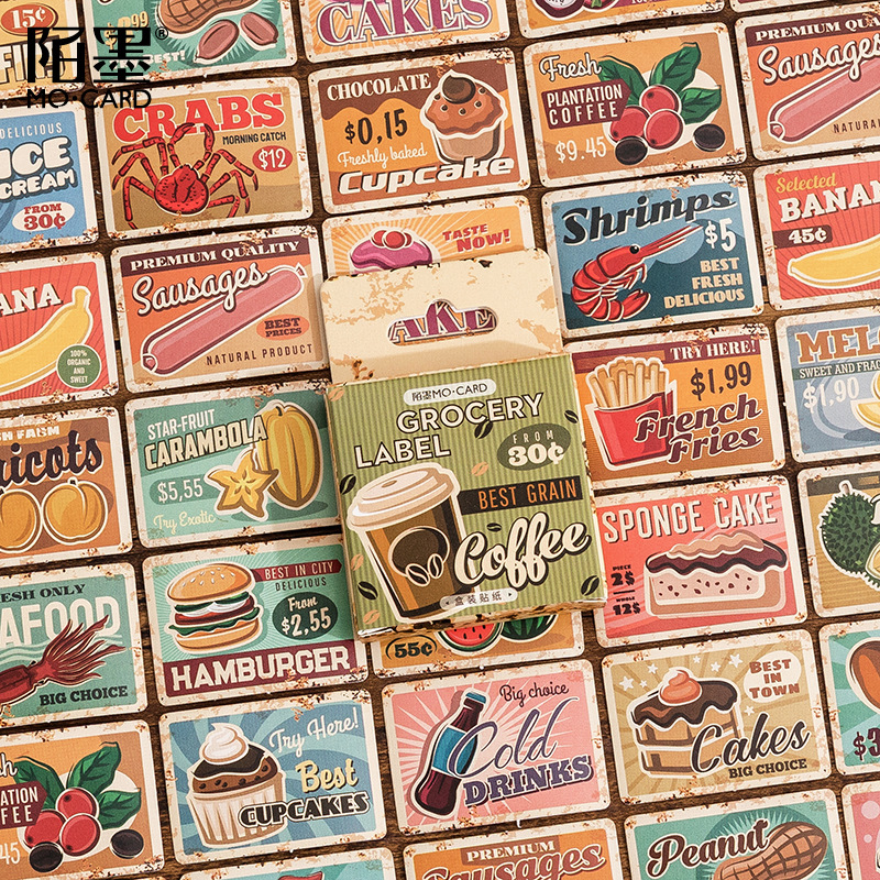 陌墨百货标签盒装贴纸不干胶复古标签封口贴手帐装饰素材贴45枚入