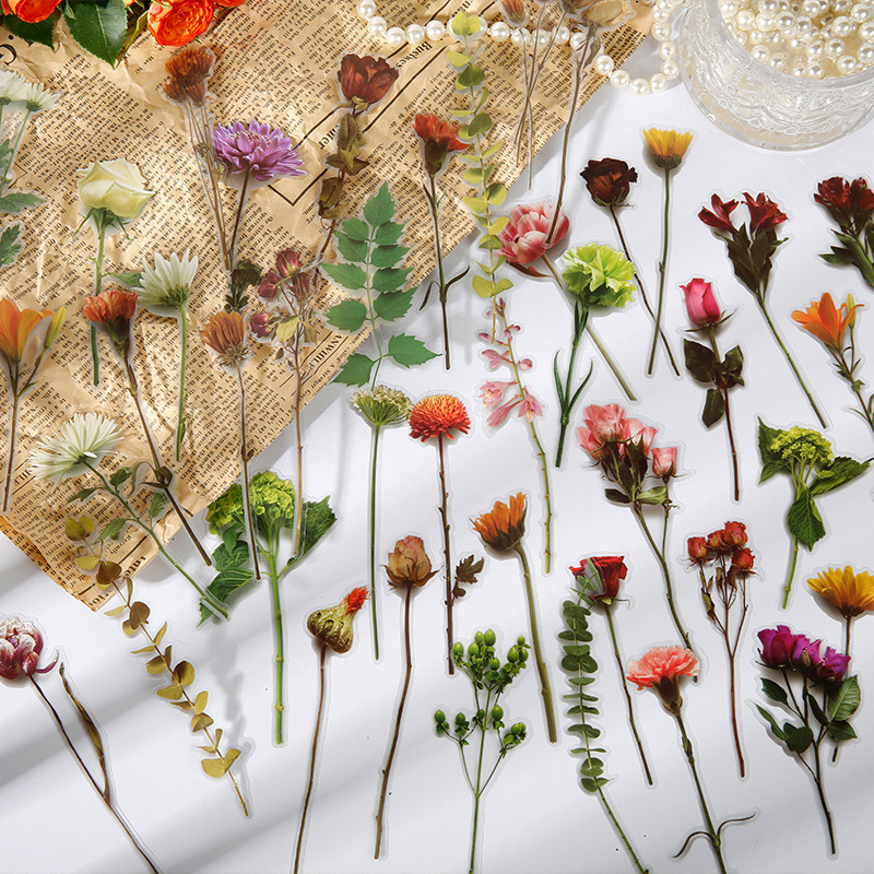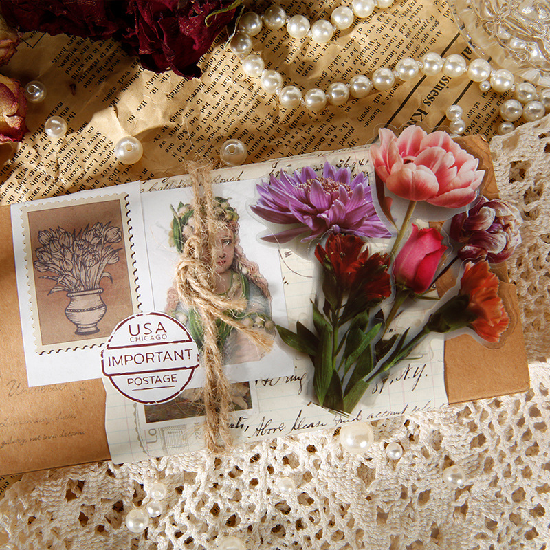 沐染贴纸包 温柔幸事系列 异形复古植物花卉diy手帐装饰素材拼贴