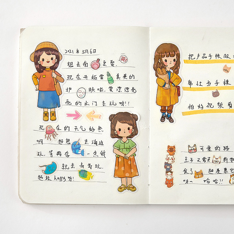 早沫贴纸包 恋爱换装笔记系列 创意手帐拼贴装饰diy贴画 6款
