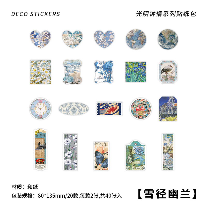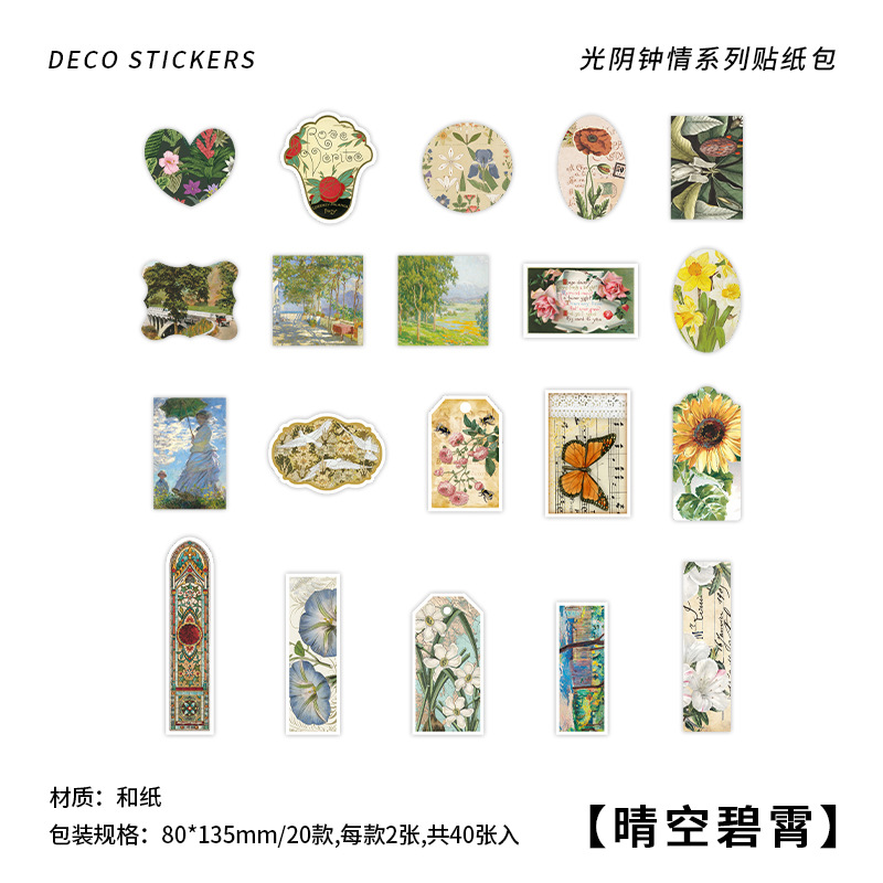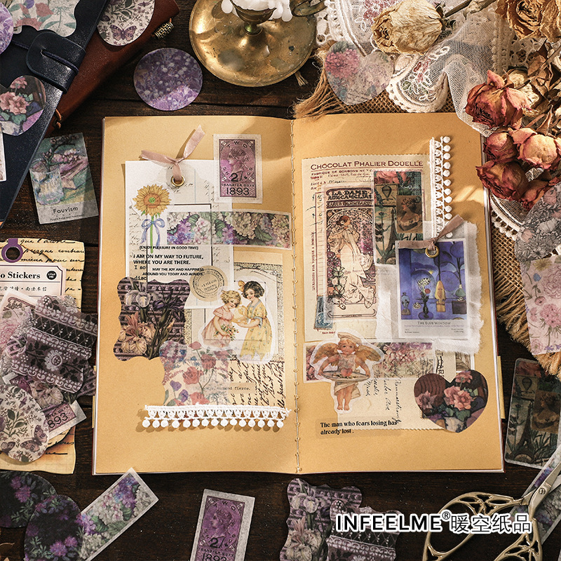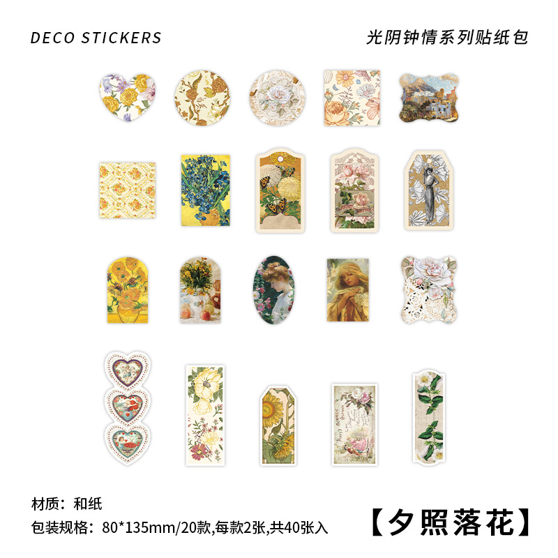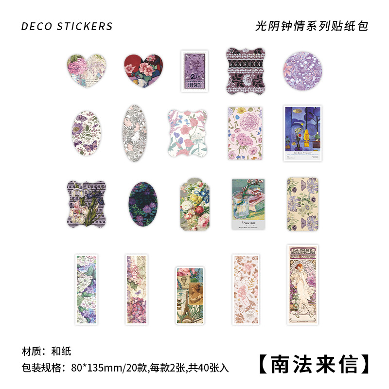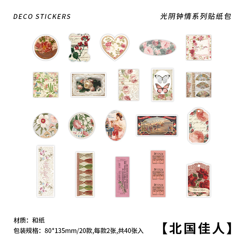 Infeel.me和纸贴纸包 光阴钟情系列 文艺复古植物手帐DIY装饰贴画