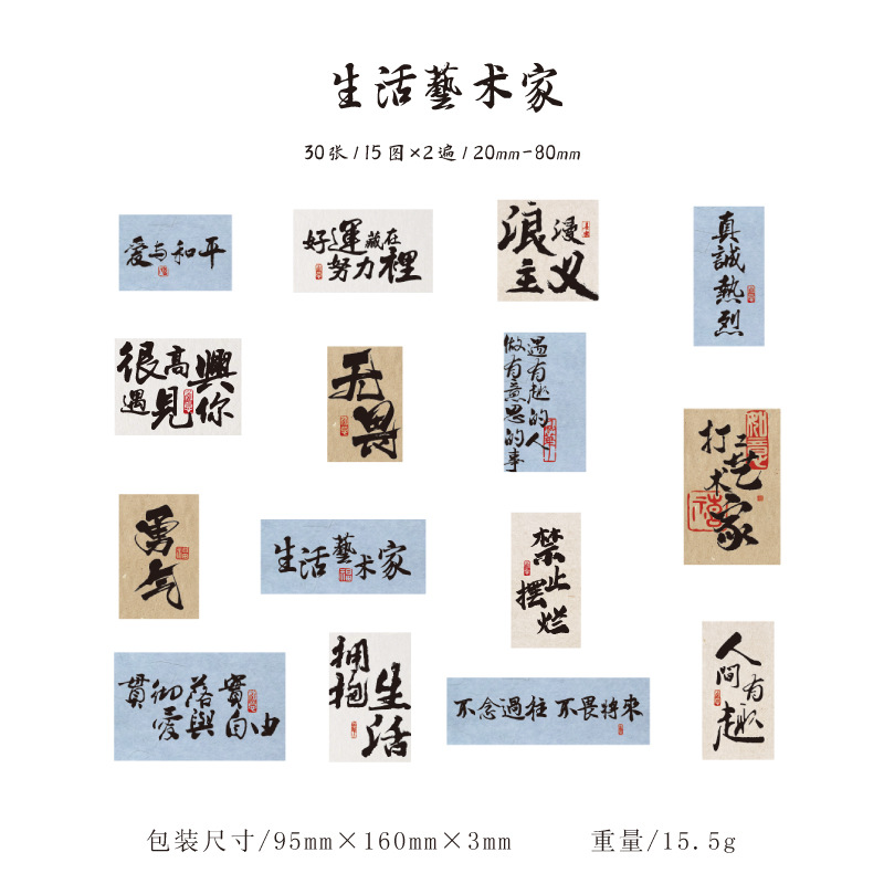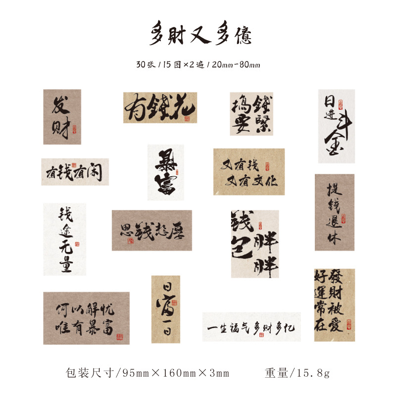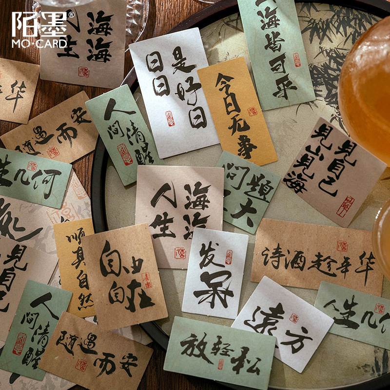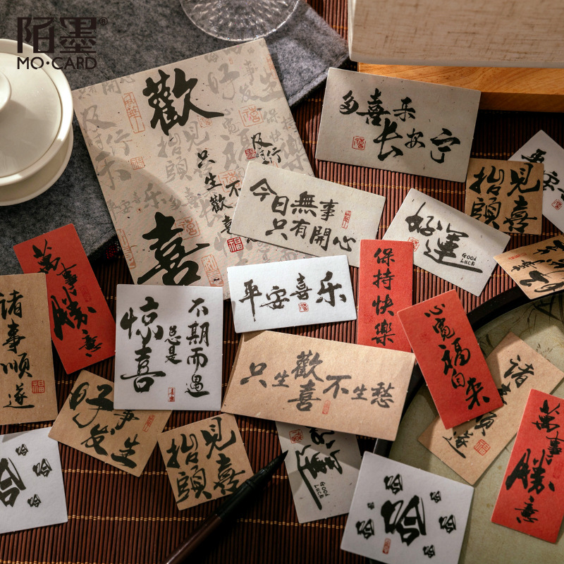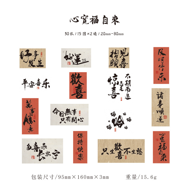 陌墨 和纸贴纸包 喜乐如常系列 国风书法手帐素材装饰贴画30张入