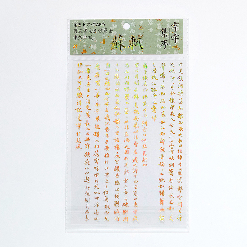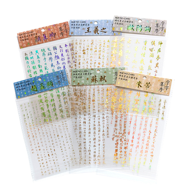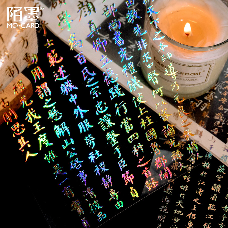 陌墨字字集序系列PET立体镭射金手帐贴纸中国风书法文字装饰贴画